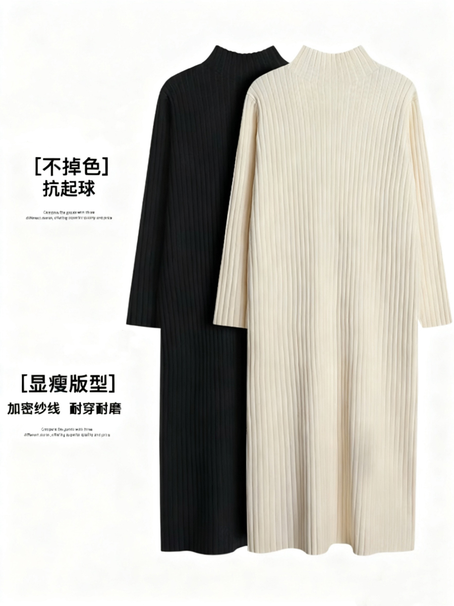 【百图lulu定制】【预售10天发】【智性针织裙】简约 直筒 半高领 高弹力 百搭针织连衣裙