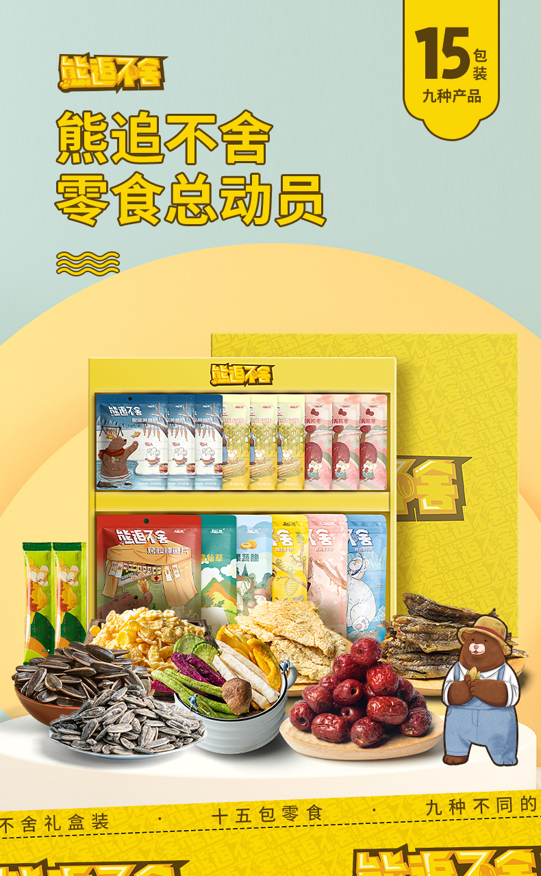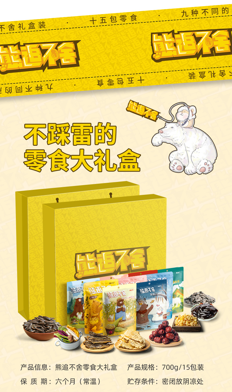越远熊追不舍零食派对大礼包混合膨化食品送礼聚餐整箱春节年货