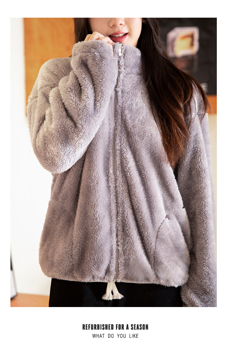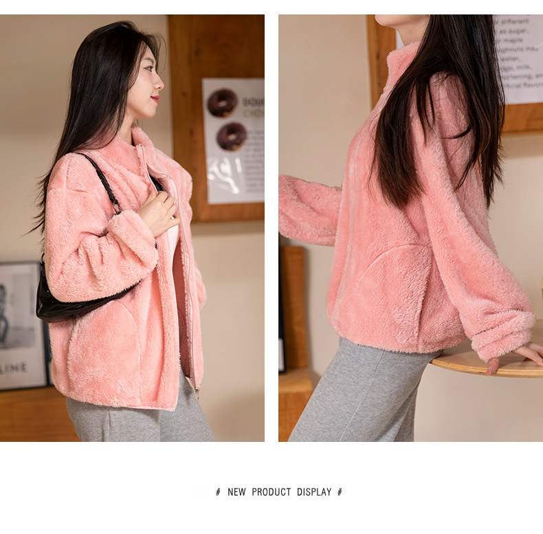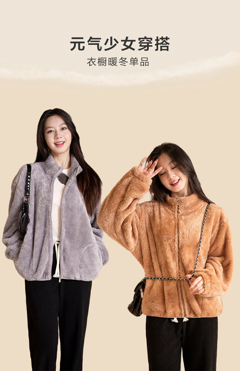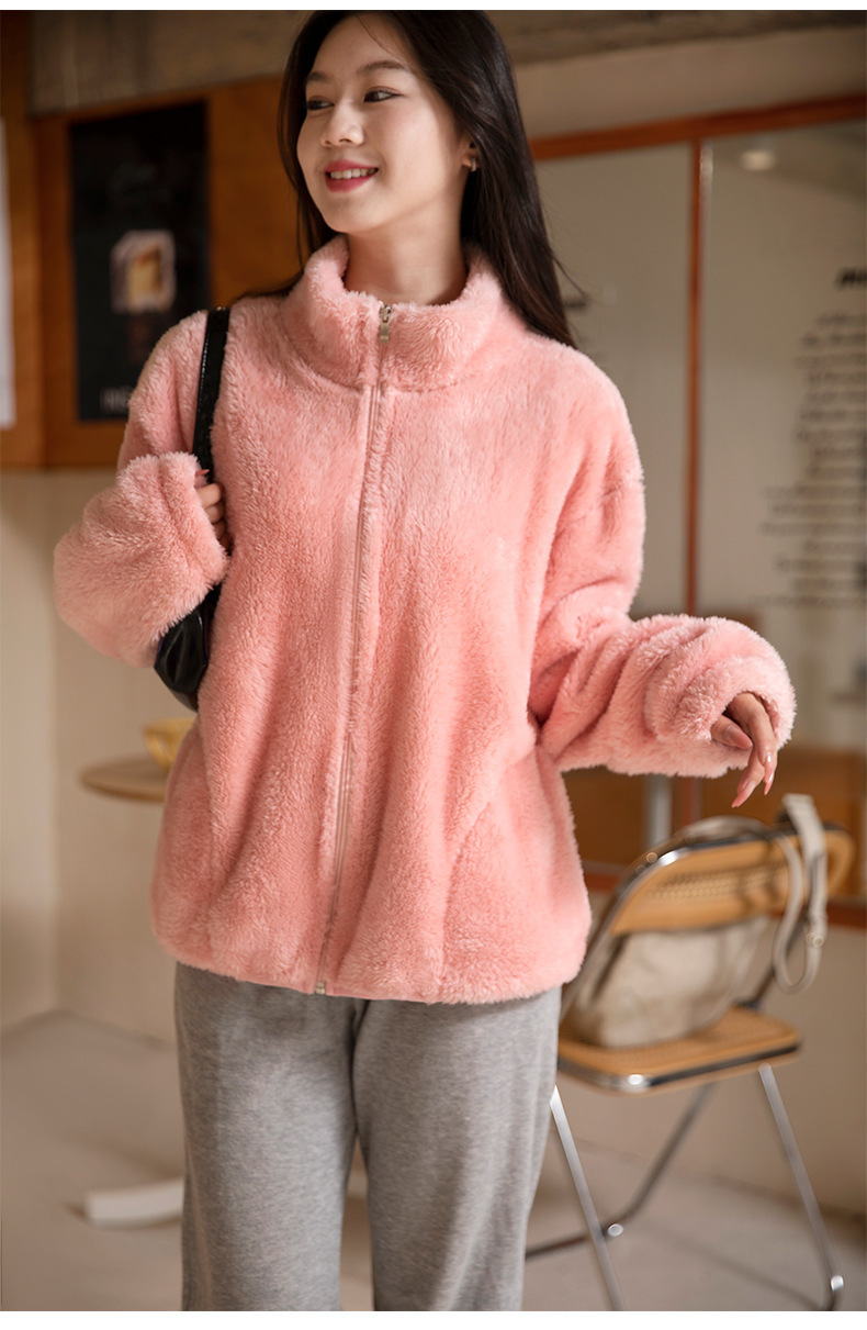 秋冬季【双面北极绒外套】珊瑚绒外套 女式宽松羊羔毛卫衣 温暖加厚北极绒夹克