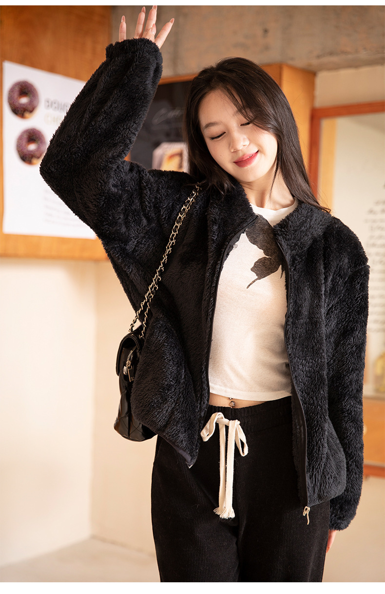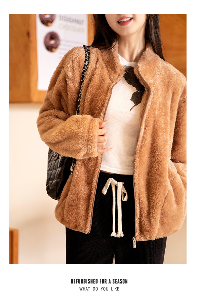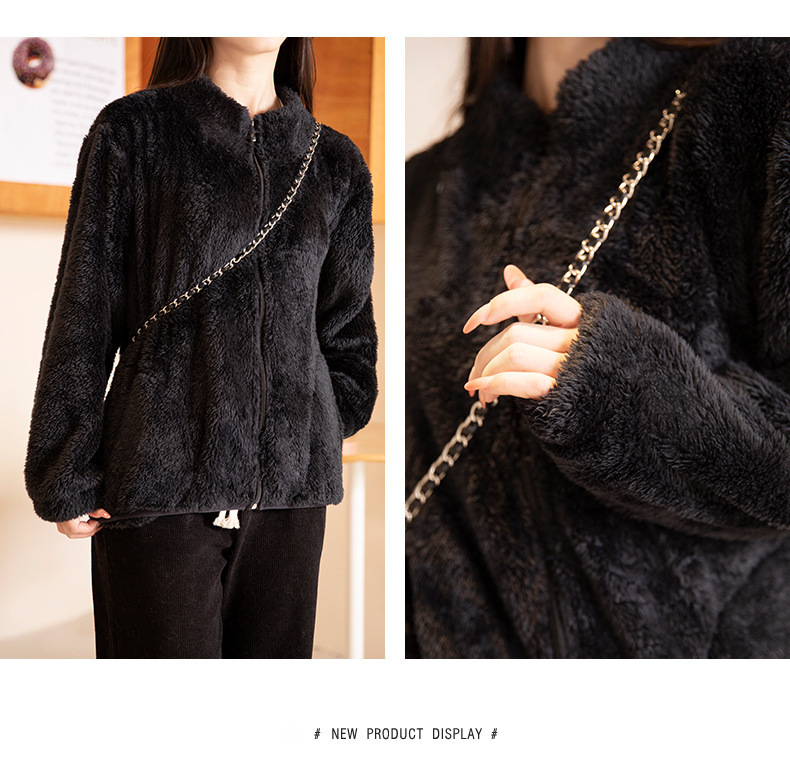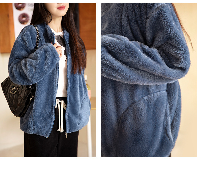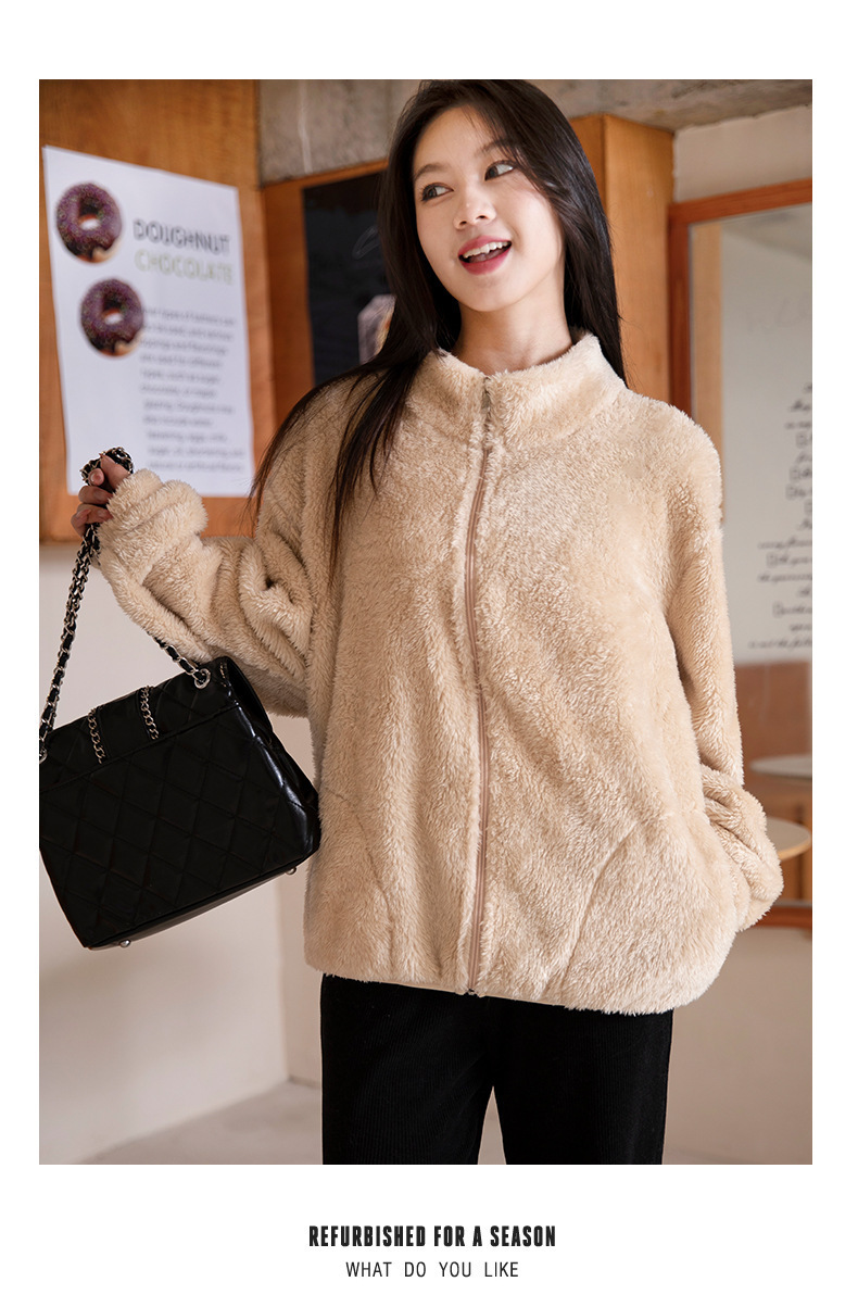 秋冬季【双面北极绒外套】珊瑚绒外套 女式宽松羊羔毛卫衣 温暖加厚北极绒夹克