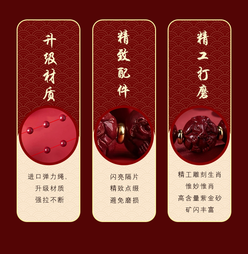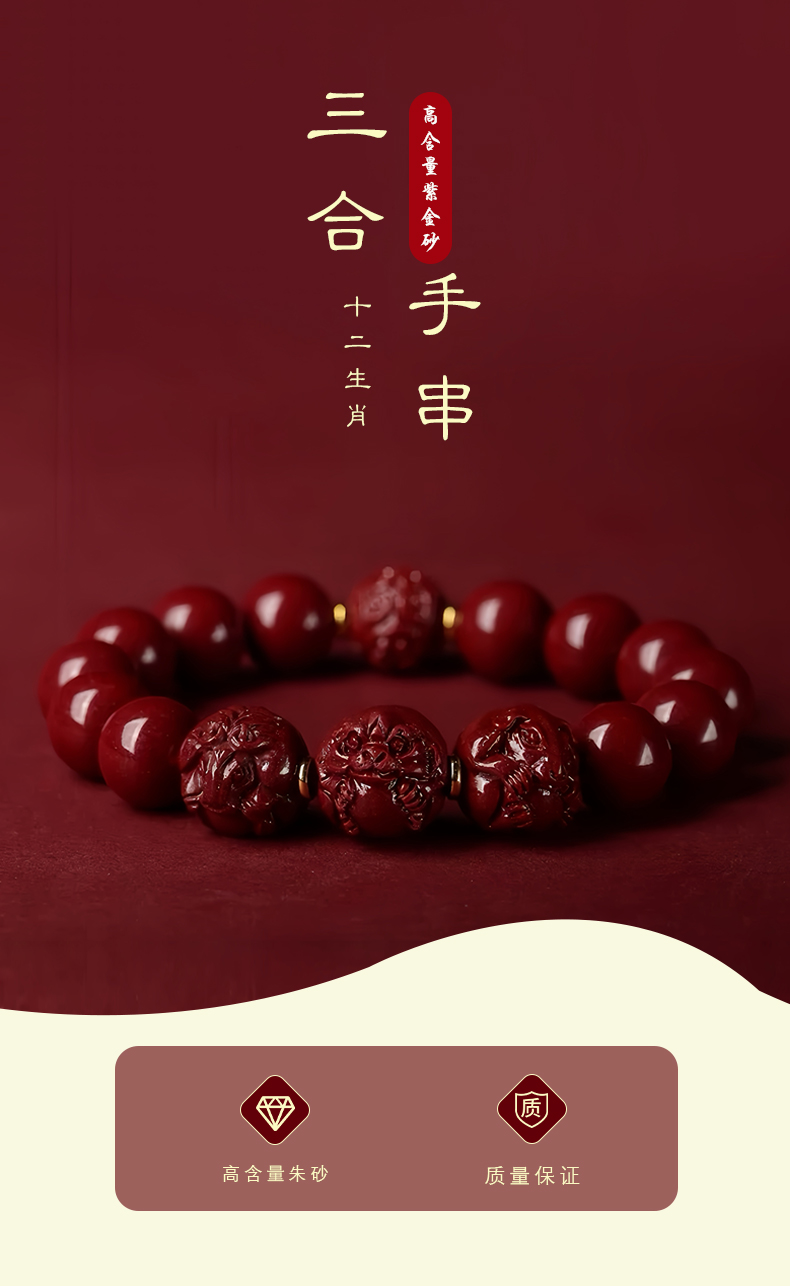 紫金砂 三合朱砂转运珠手串【珠径10mm】
