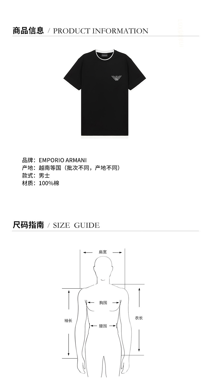 EmporioArmani/安普里奥阿玛尼 男士短袖T恤 男士棉质圆领短袖T恤 6H1TH4 1JTUZ