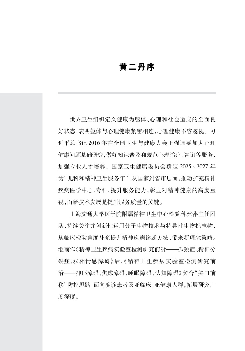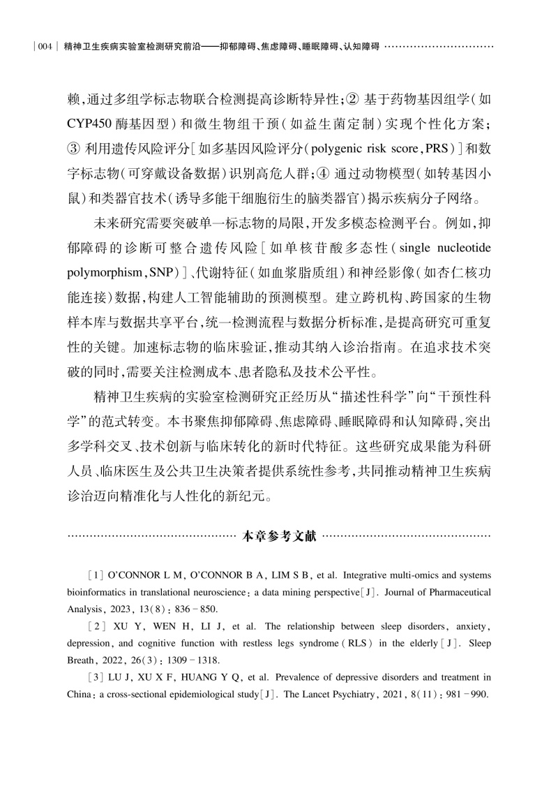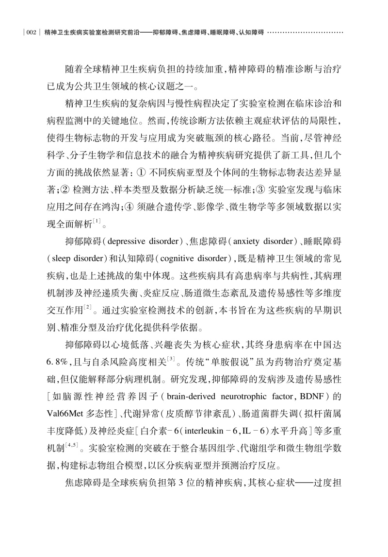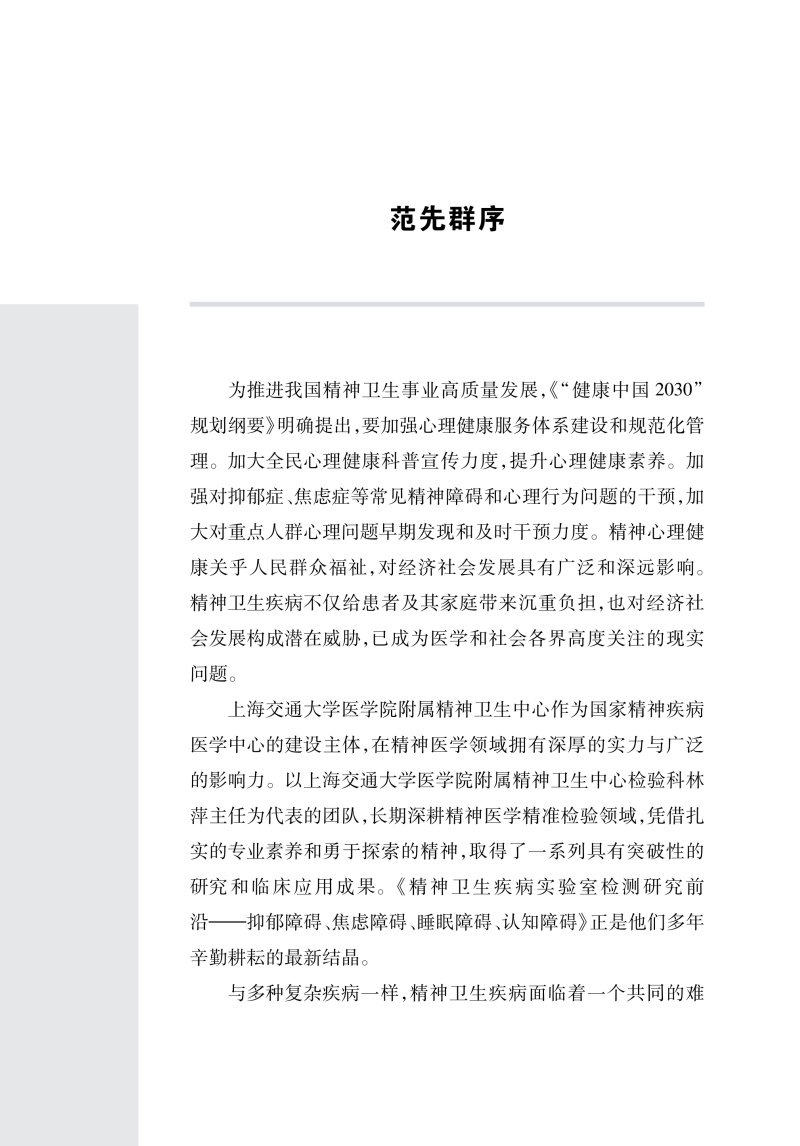 书名:精神卫生疾病实验室检测研究前沿——抑郁障碍、焦虑障碍、睡眠障碍、认知障碍