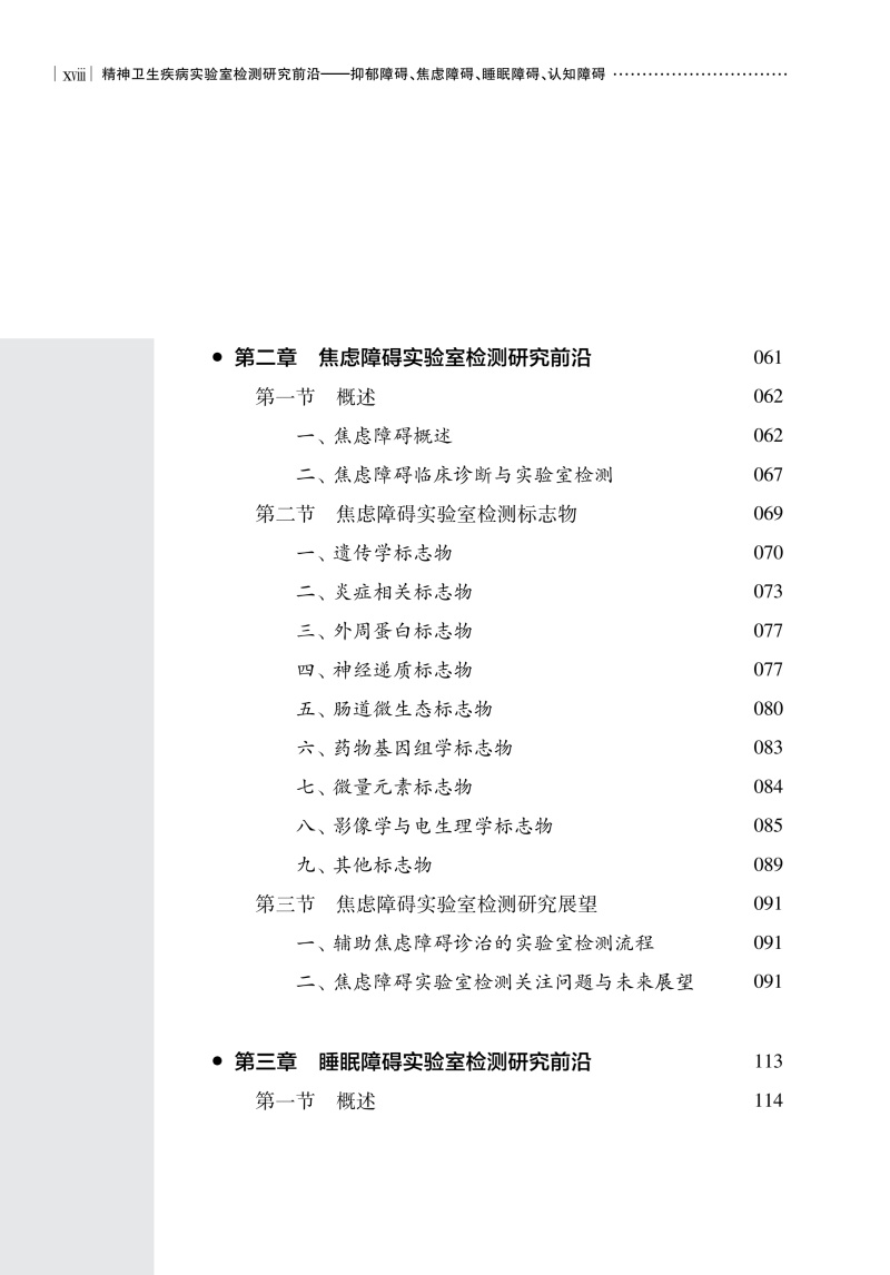 精神卫生疾病实验室检测研究前沿——抑郁障碍、焦虑障碍、睡眠障碍、认知障碍 林萍 郭晓奎 程训佳 李擎天 主编 科学出版社