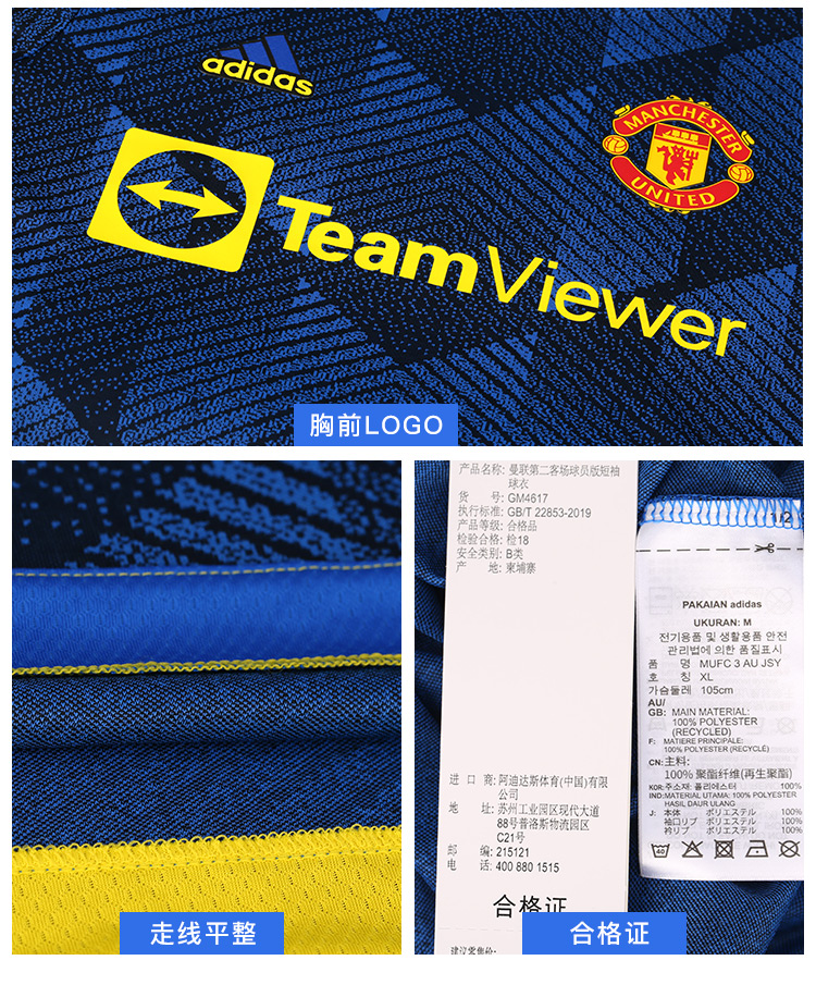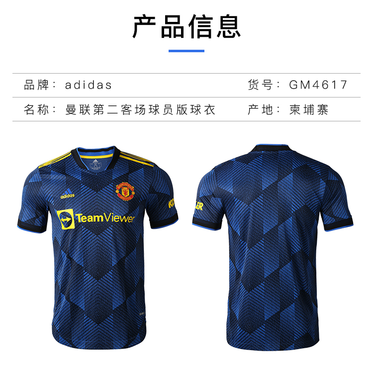 ADIDAS/阿迪达斯 21-22赛季曼联二客球员版球衣短袖男GM4617