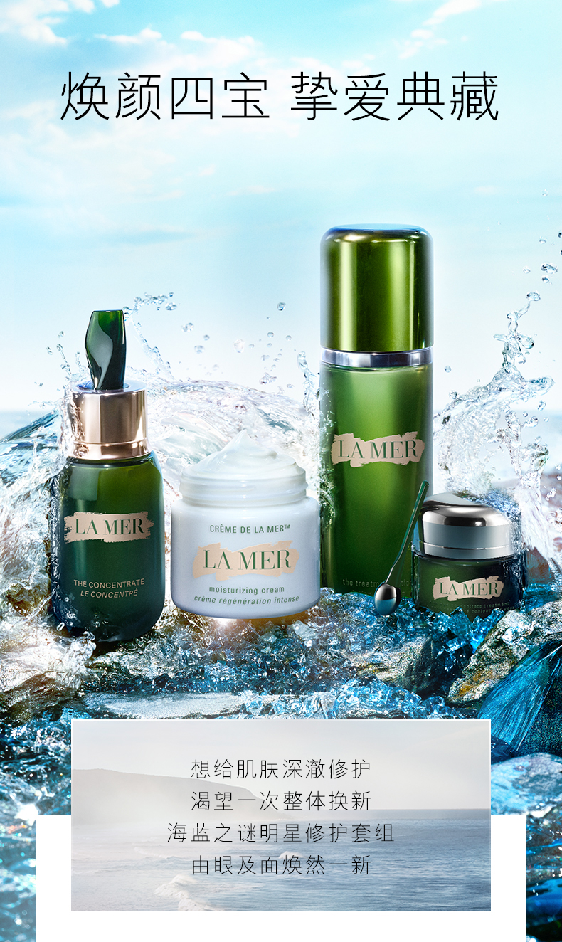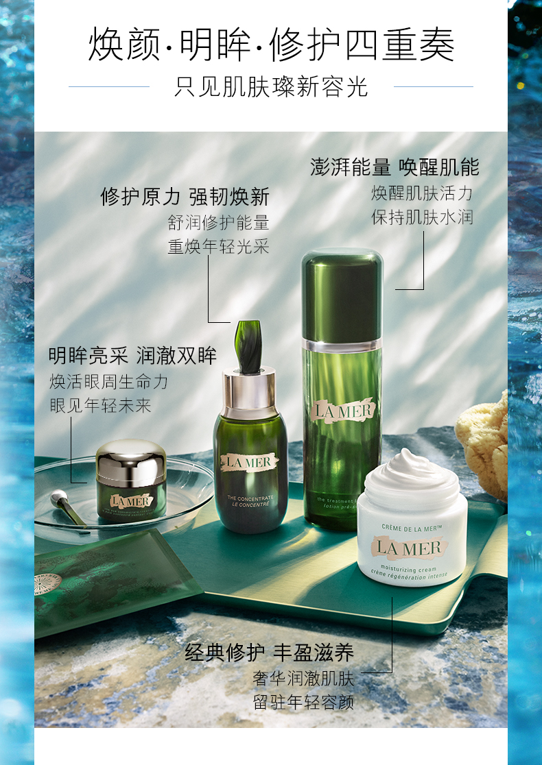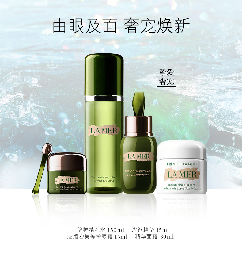海蓝之谜四件套(经典面霜30ml+绿眼霜15ml+浓缩精华15ml+精粹水150ml+赠送礼品袋1个)
