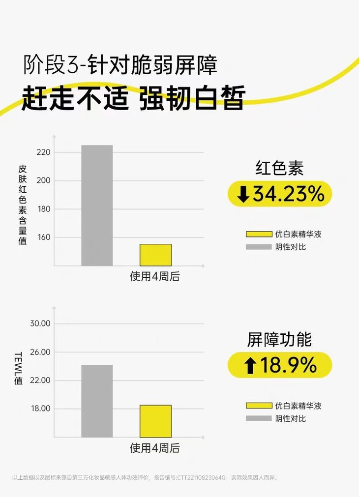✅修护皮肤、深层清净 没用之前,和直到现在长期使用优白素精华液之后的变化,确实是挺明显了吧❗️❗️ 除了以上两种明星成分,优白素精华液还添加了同时还添加透明质酸和尿囊素 从“抑、阻、排”三个维度拿捏住变黑根源🤏 既淡化了已有的色沉,还加强了肌肤的防御力! 白嫩肌肤真的可以触手可及🤣🤣 有段时间经常熬夜,脸色真的变得很差劲,又黄又沉,黑眼圈也很重 坚持使用这款精华液之后,脸部真的变化不少!