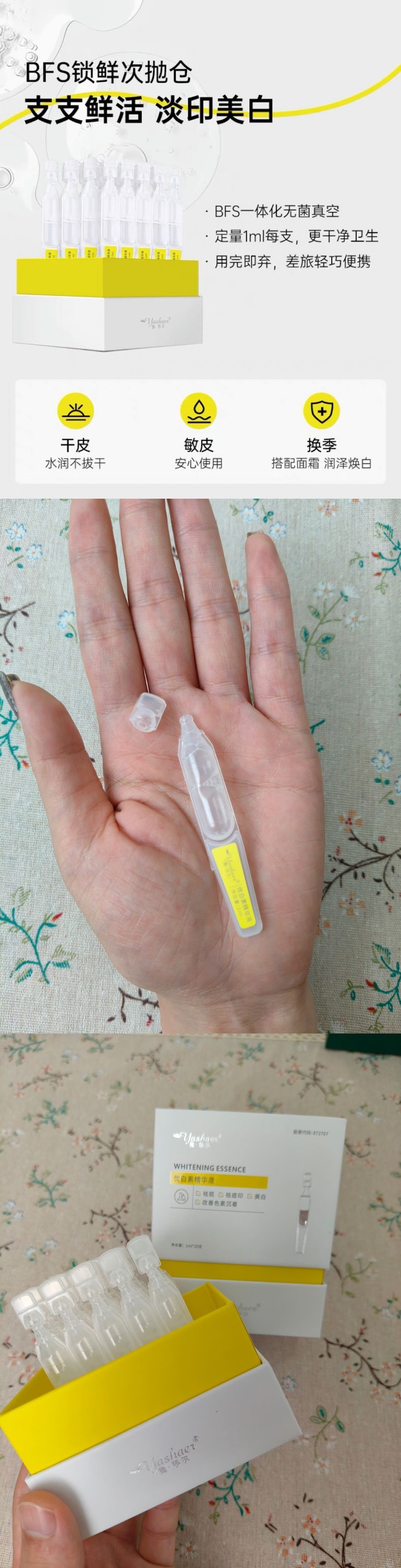 ✅BFS锁鲜次抛仓,支支鲜活 雅莎尔优白素精华液(EC)采用BFS一体化无菌真空包装👍 确保每一支精华液从生产到使用都处于完全无菌的环境中,保持成分的活性和稳定性 定量1ml💧每支的设计,不仅更干净卫生,还能精准控制用量,避免浪费 用完即弃,方便快捷👏👏 特别适合差旅时携带,轻巧便携,随时随地为肌肤补充营养✔️
