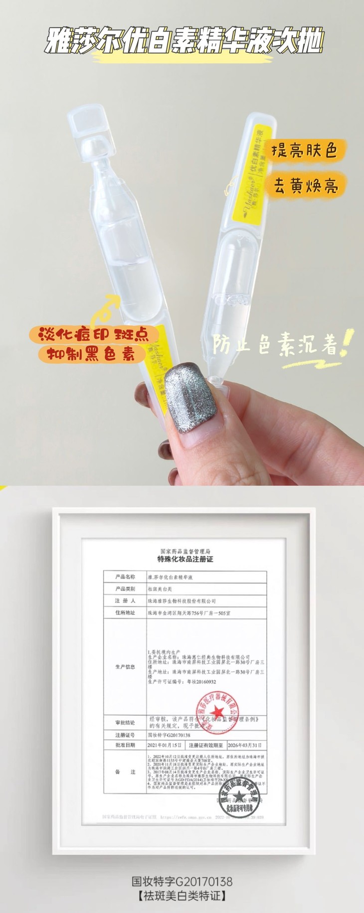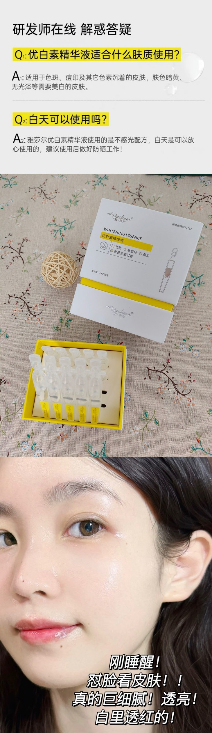 除了在淡斑美白效果上不逊色之外,, 雅莎尔优白素精华液还在很大程度上减小了对皮肤的刺激👏👏