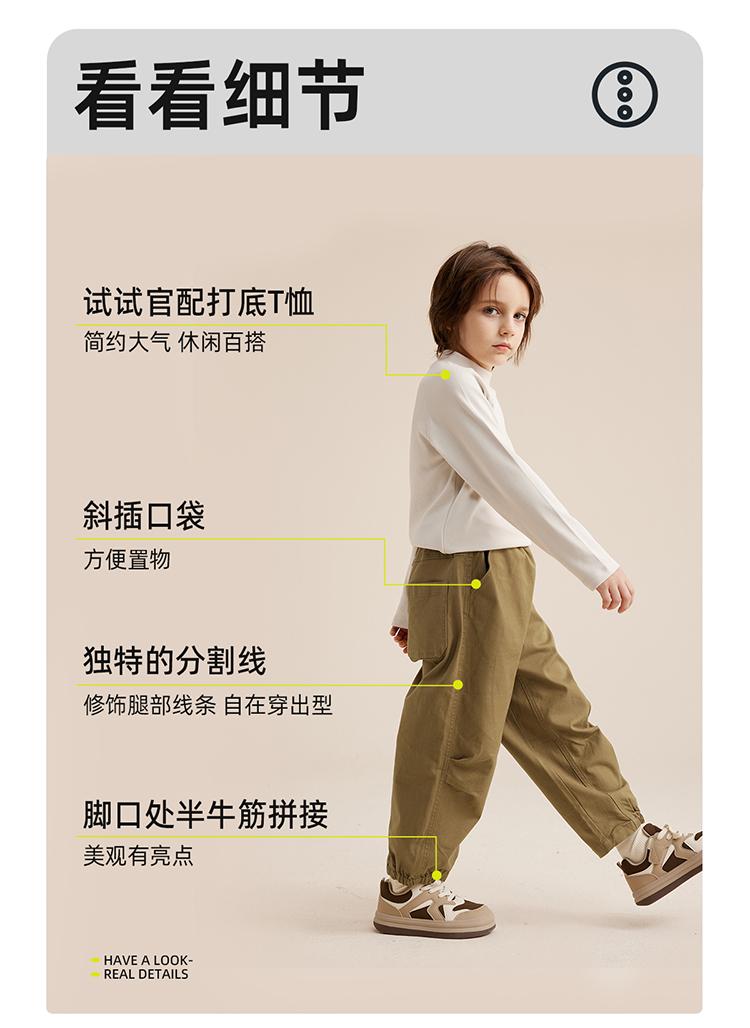 【上身轻盈 软而不塌】儿童加绒休闲工装裤PDK2304