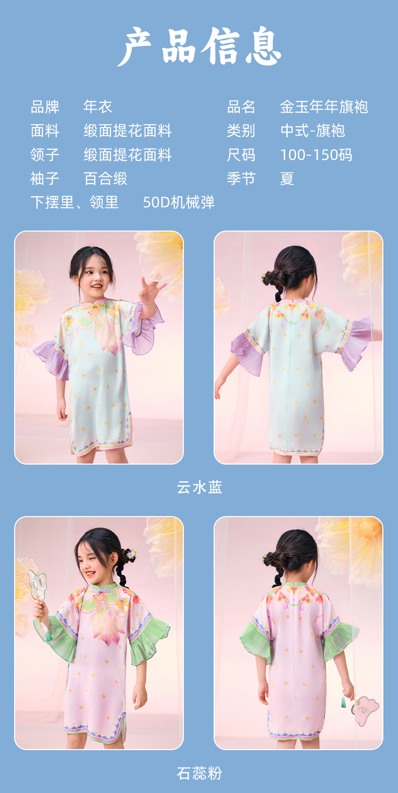 年衣童装女童旗袍连衣裙2025新款国风新中式女孩公主金玉年年旗袍