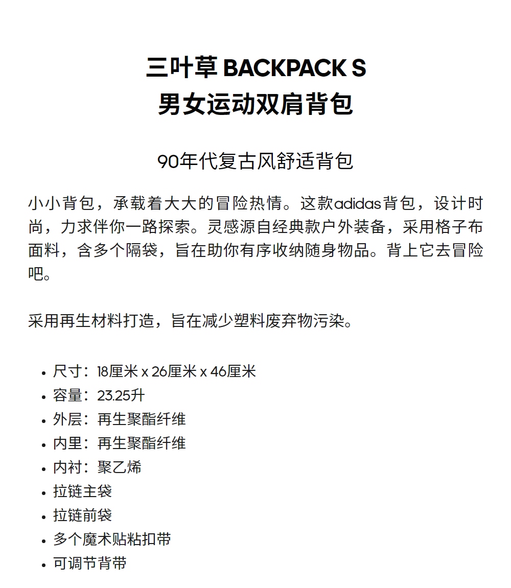 adidas阿迪达斯三叶草男女同款运动双肩背包户外学生适用