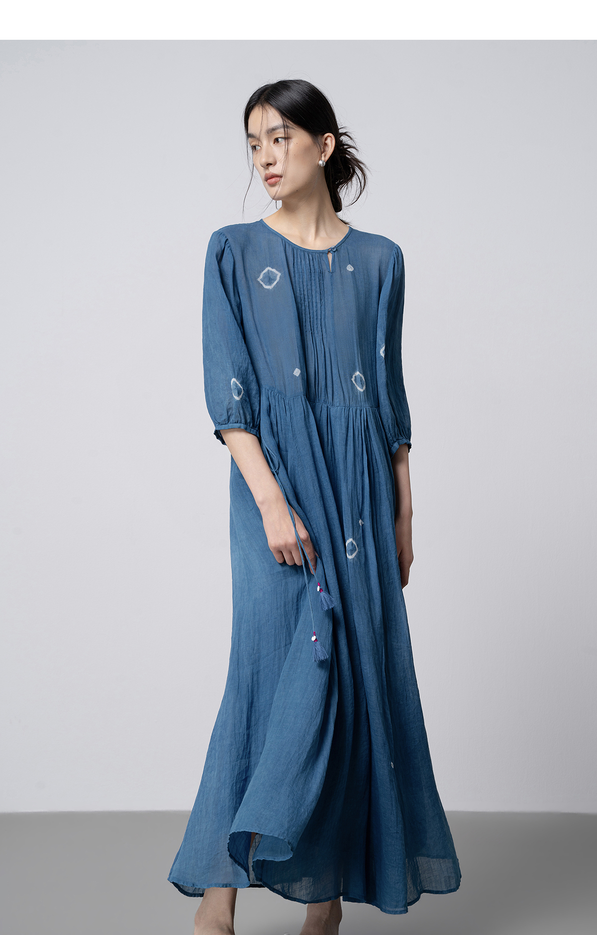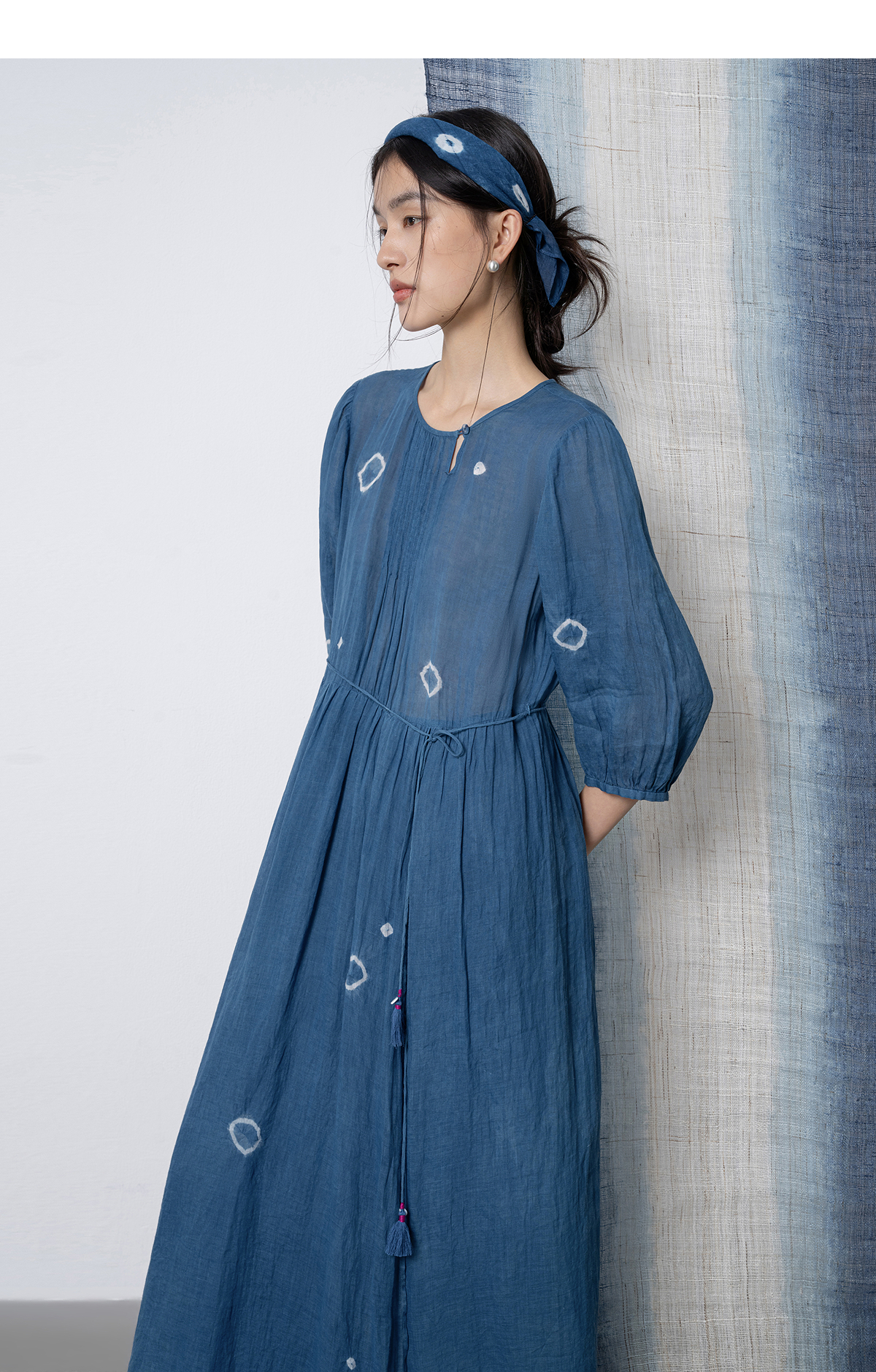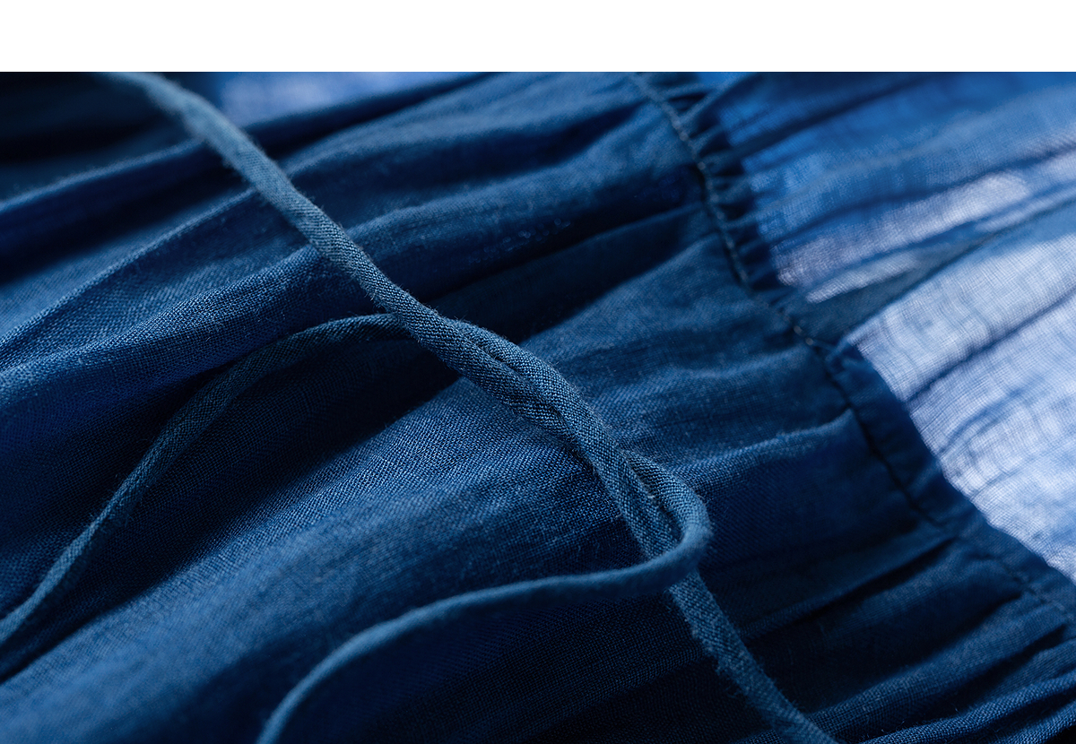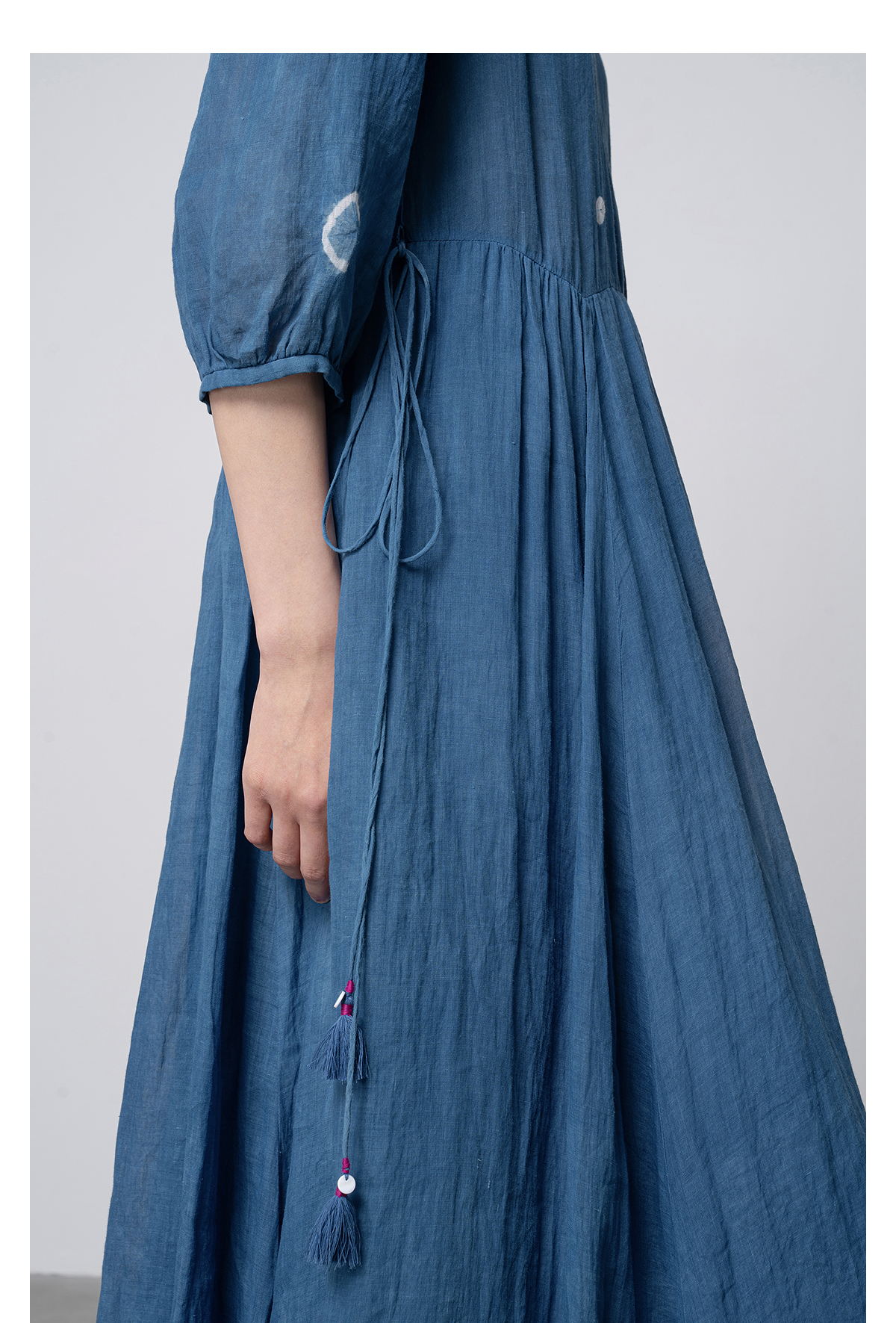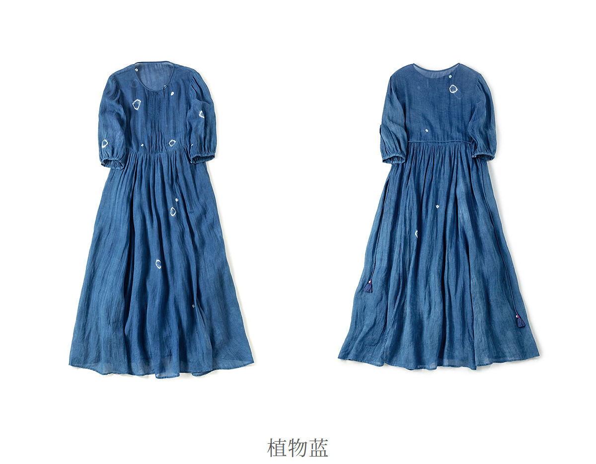 【林栖设计小店】(现货)植物染色|植物蓝手工流苏腰绳百搭2026春新款棉麻连衣裙1961139