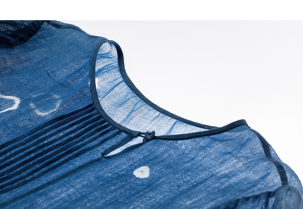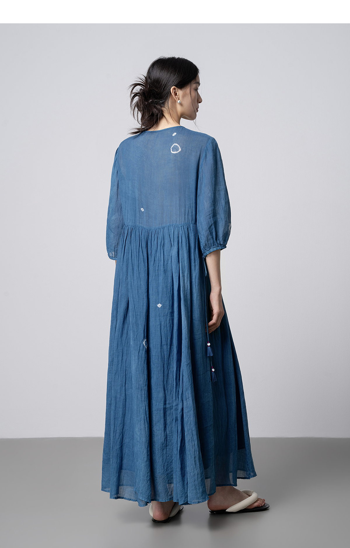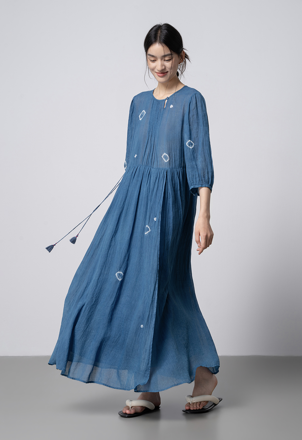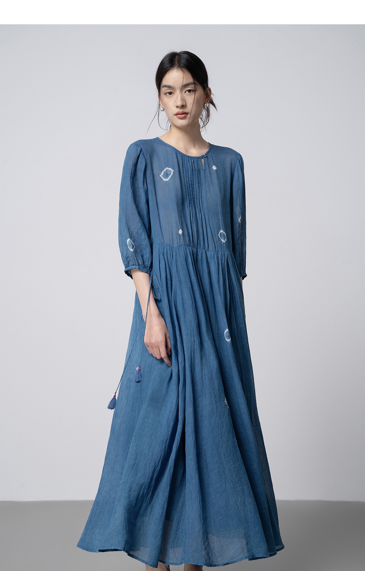 【林栖设计小店】(现货)植物染色|植物蓝手工流苏腰绳百搭2026春新款棉麻连衣裙1961139