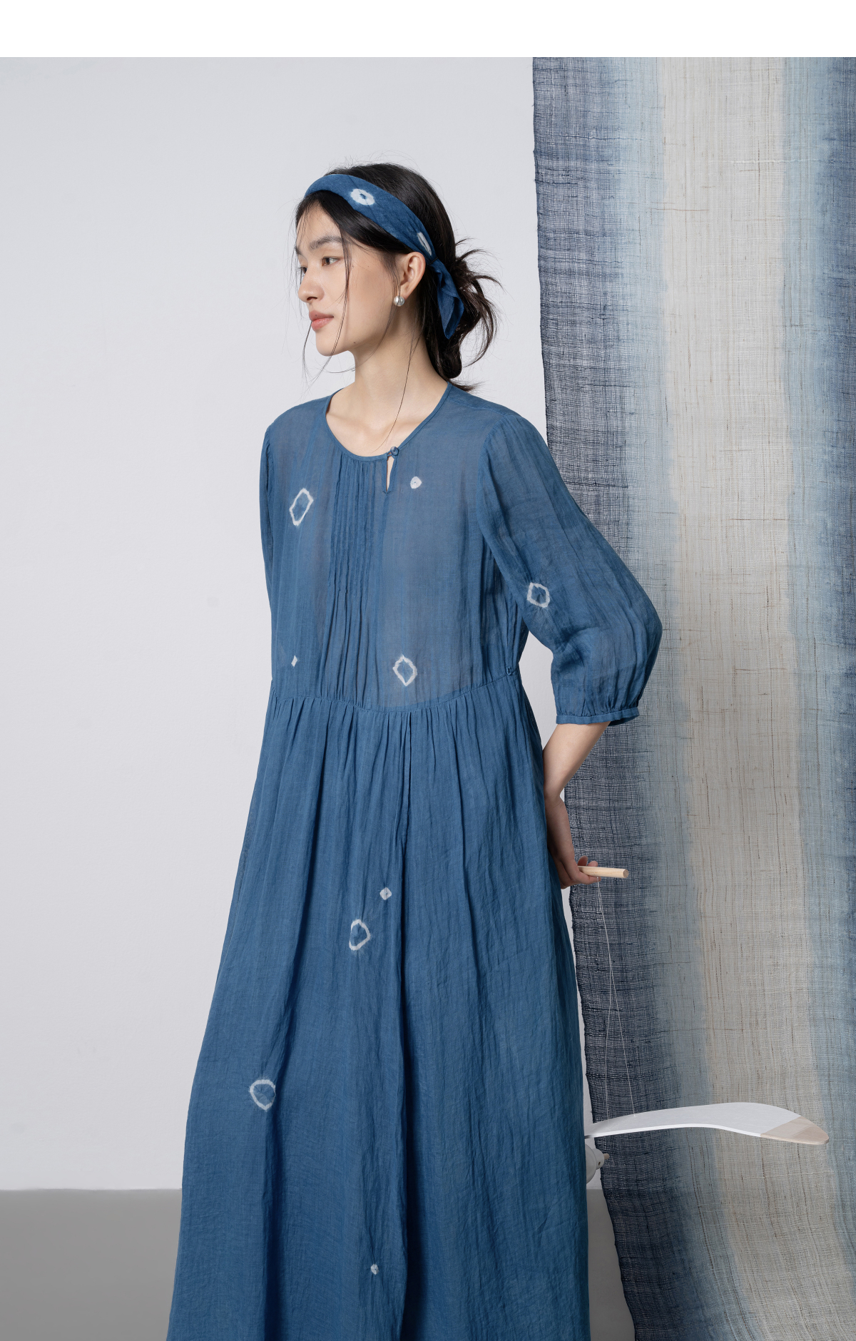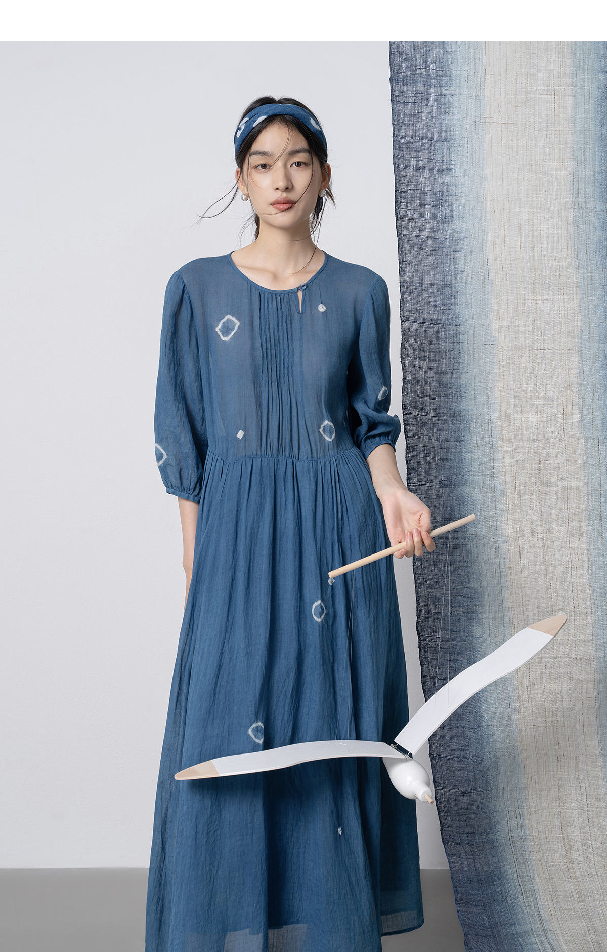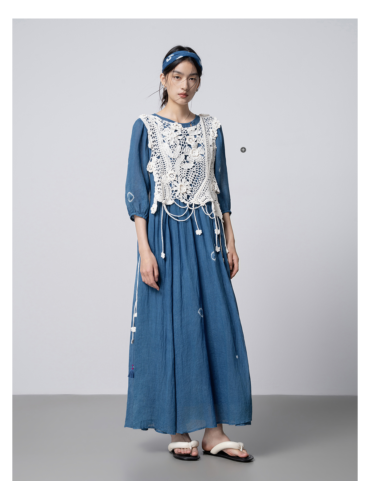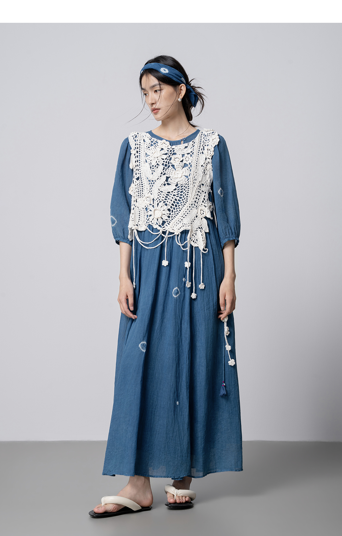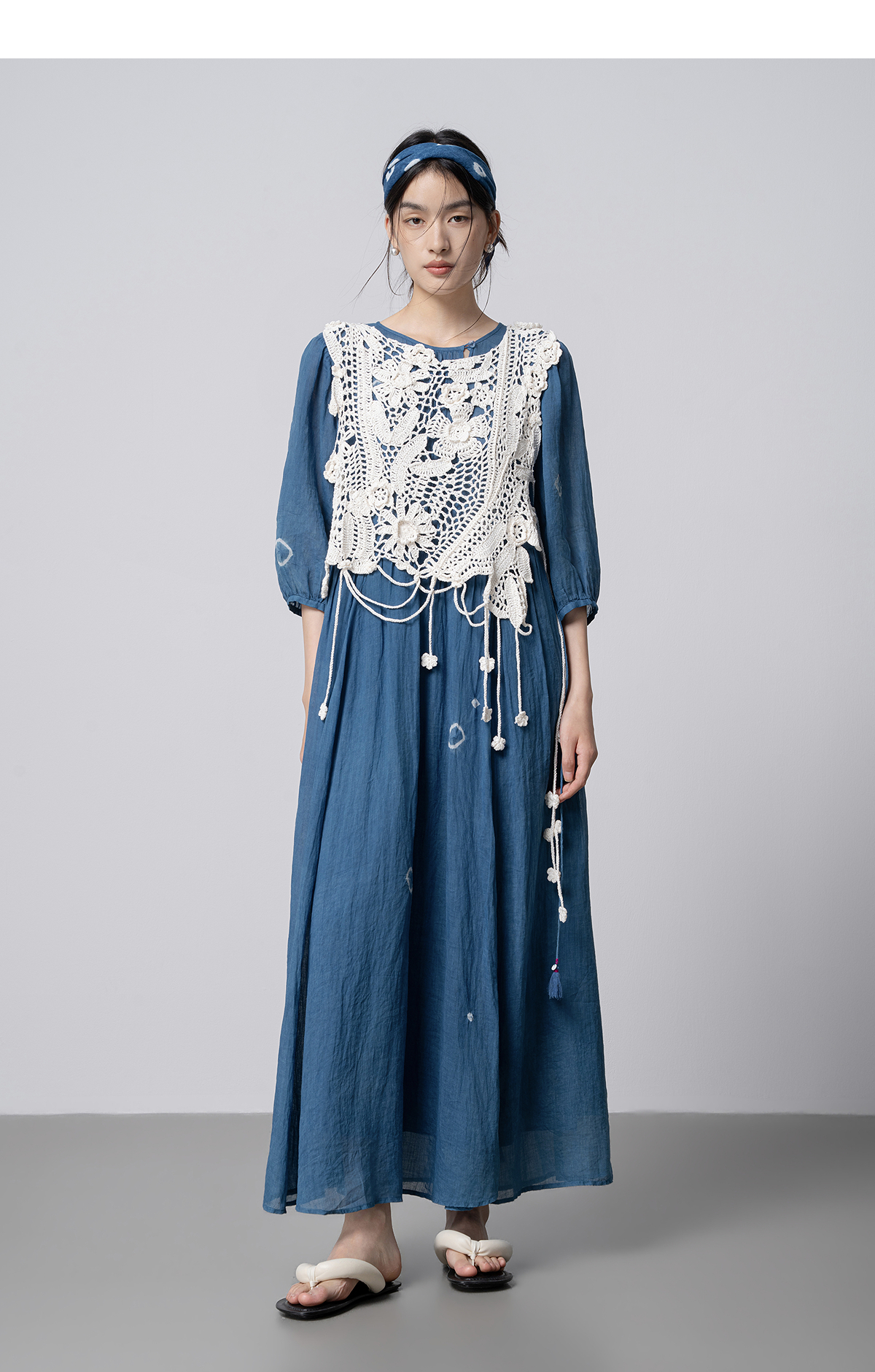 【林栖设计小店】(现货)植物染色|植物蓝手工流苏腰绳百搭2026春新款棉麻连衣裙1961139