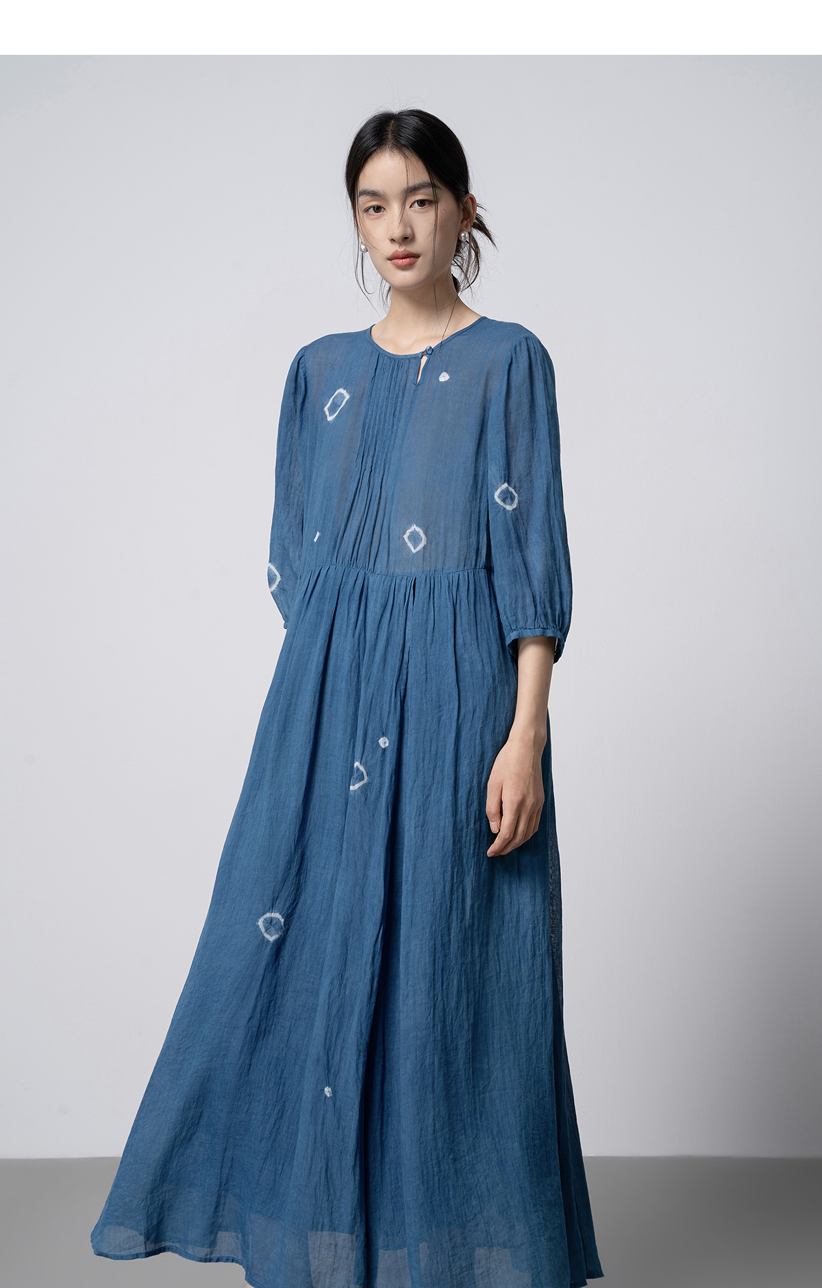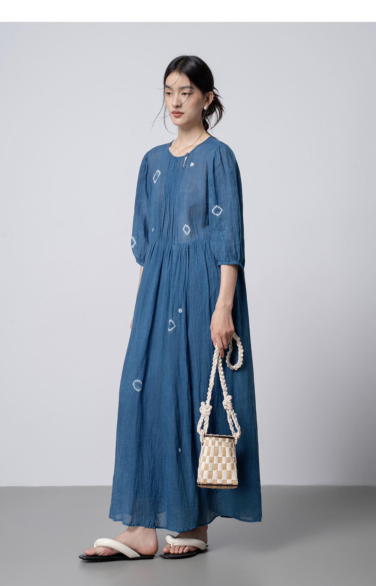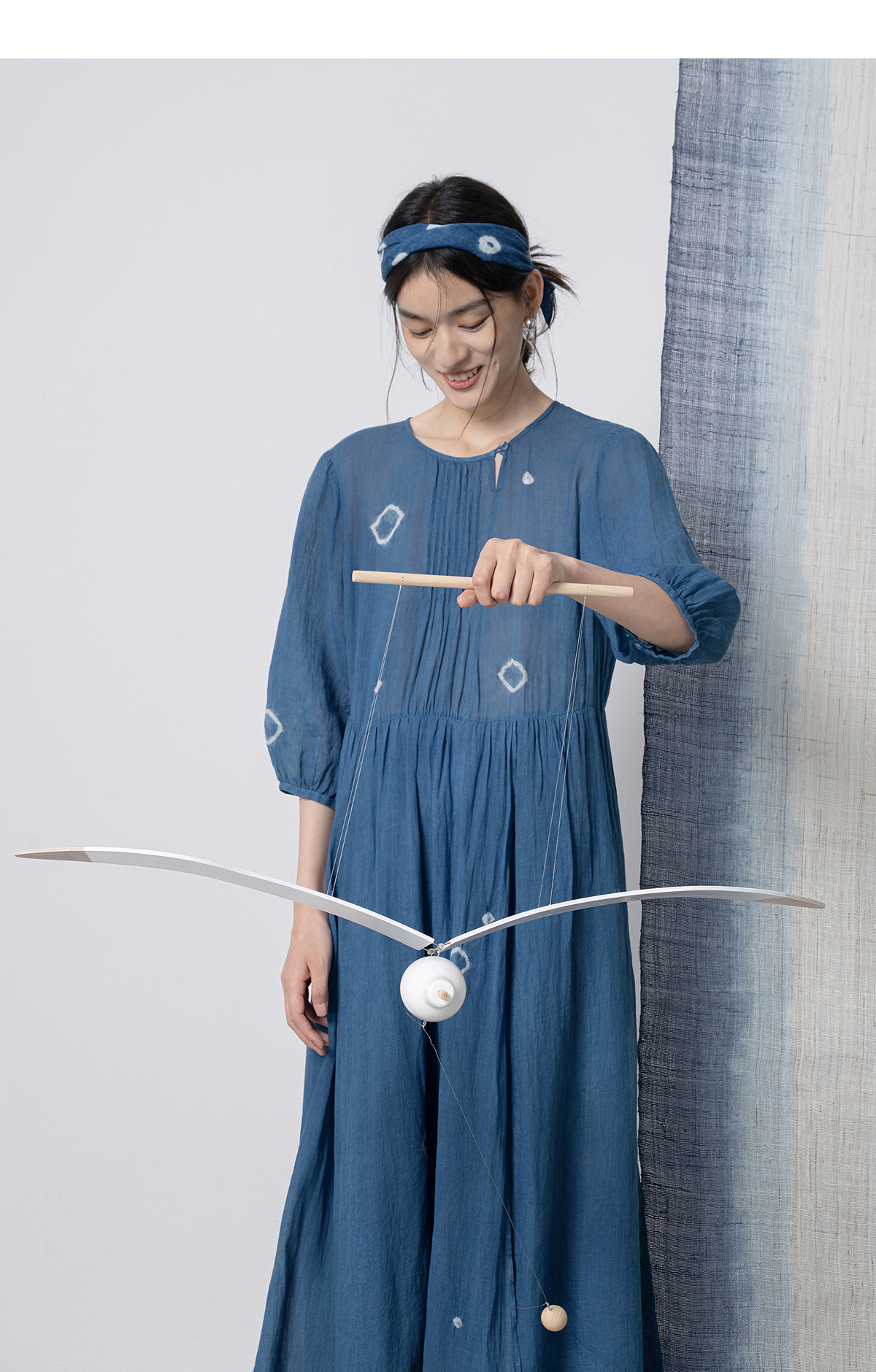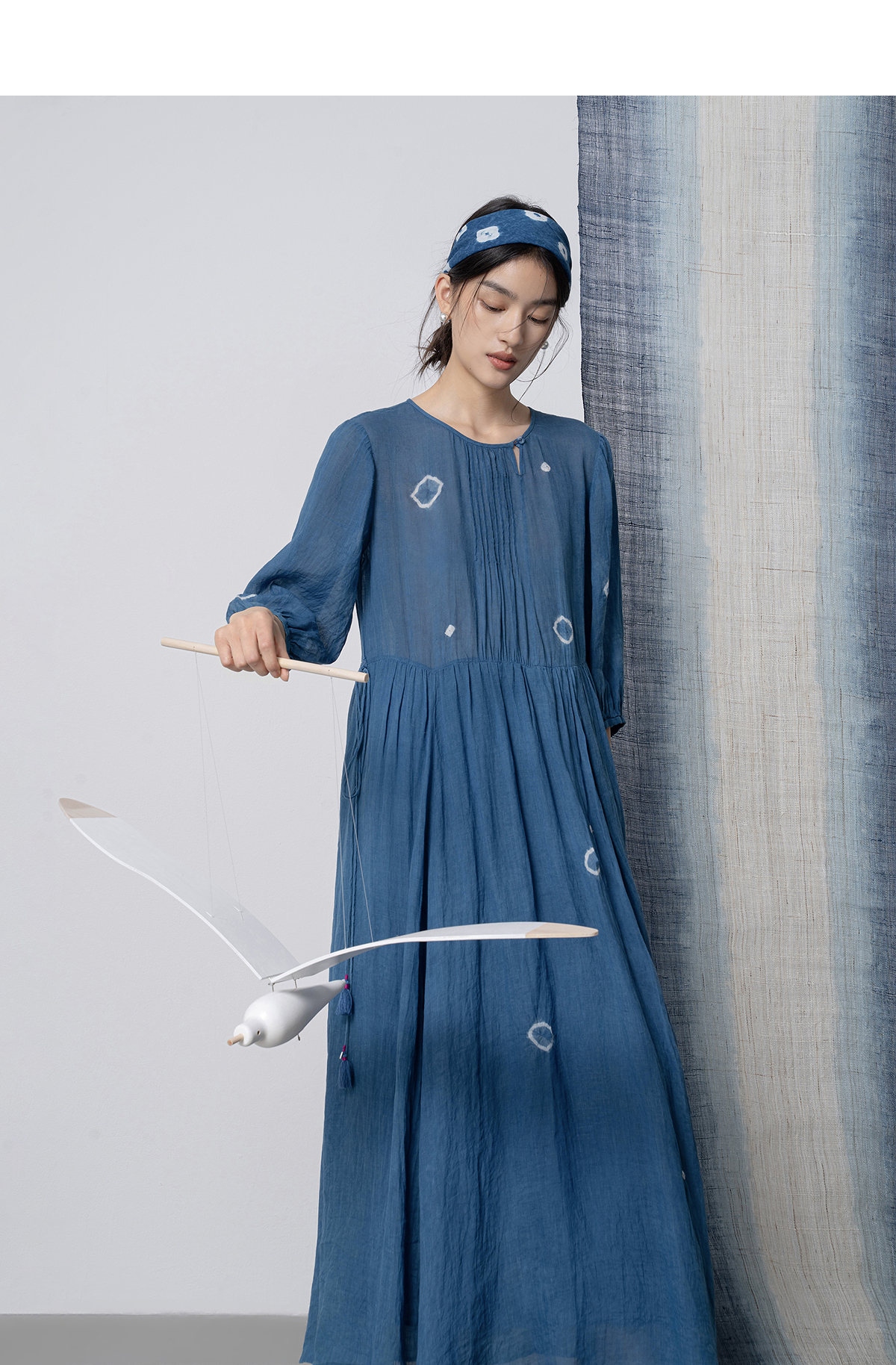 【林栖设计小店】(现货)植物染色|植物蓝手工流苏腰绳百搭2026春新款棉麻连衣裙1961139