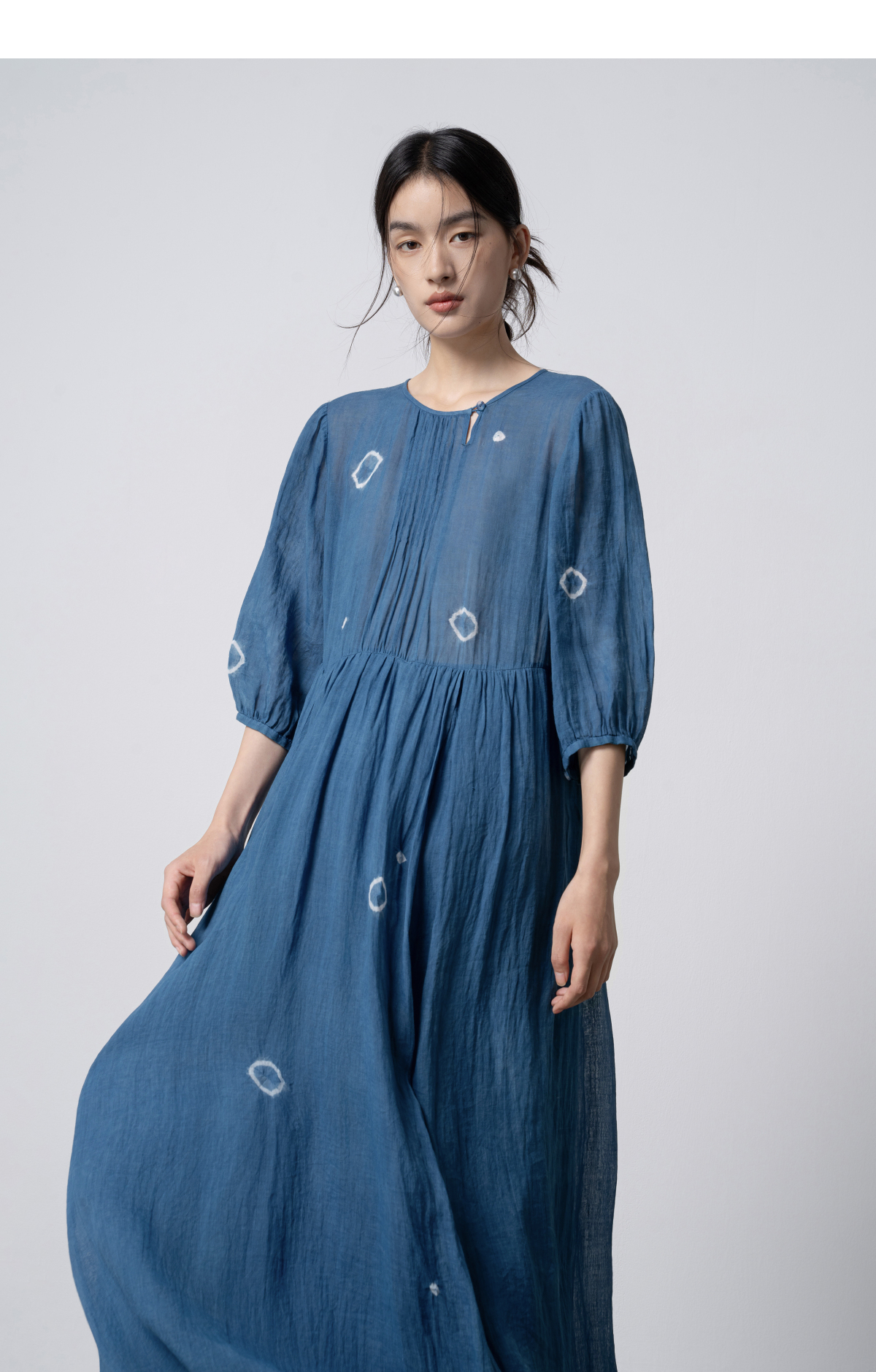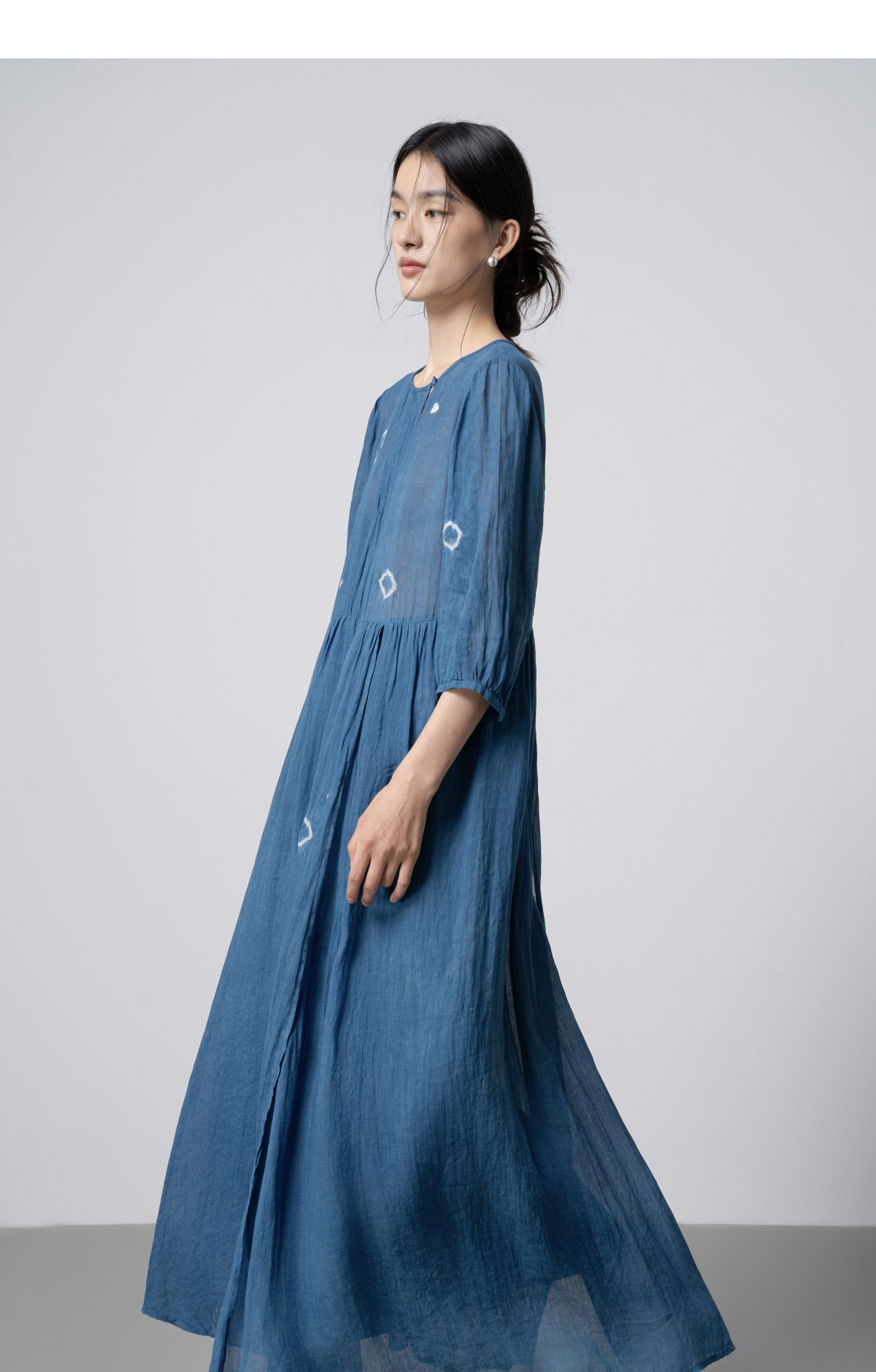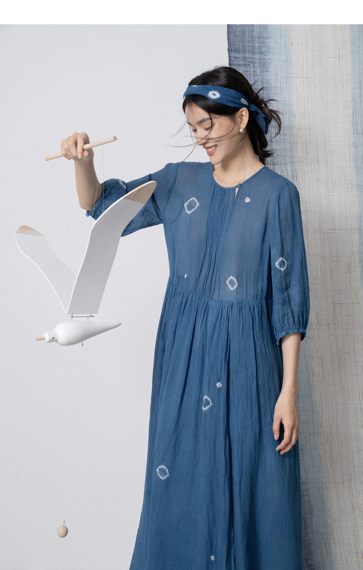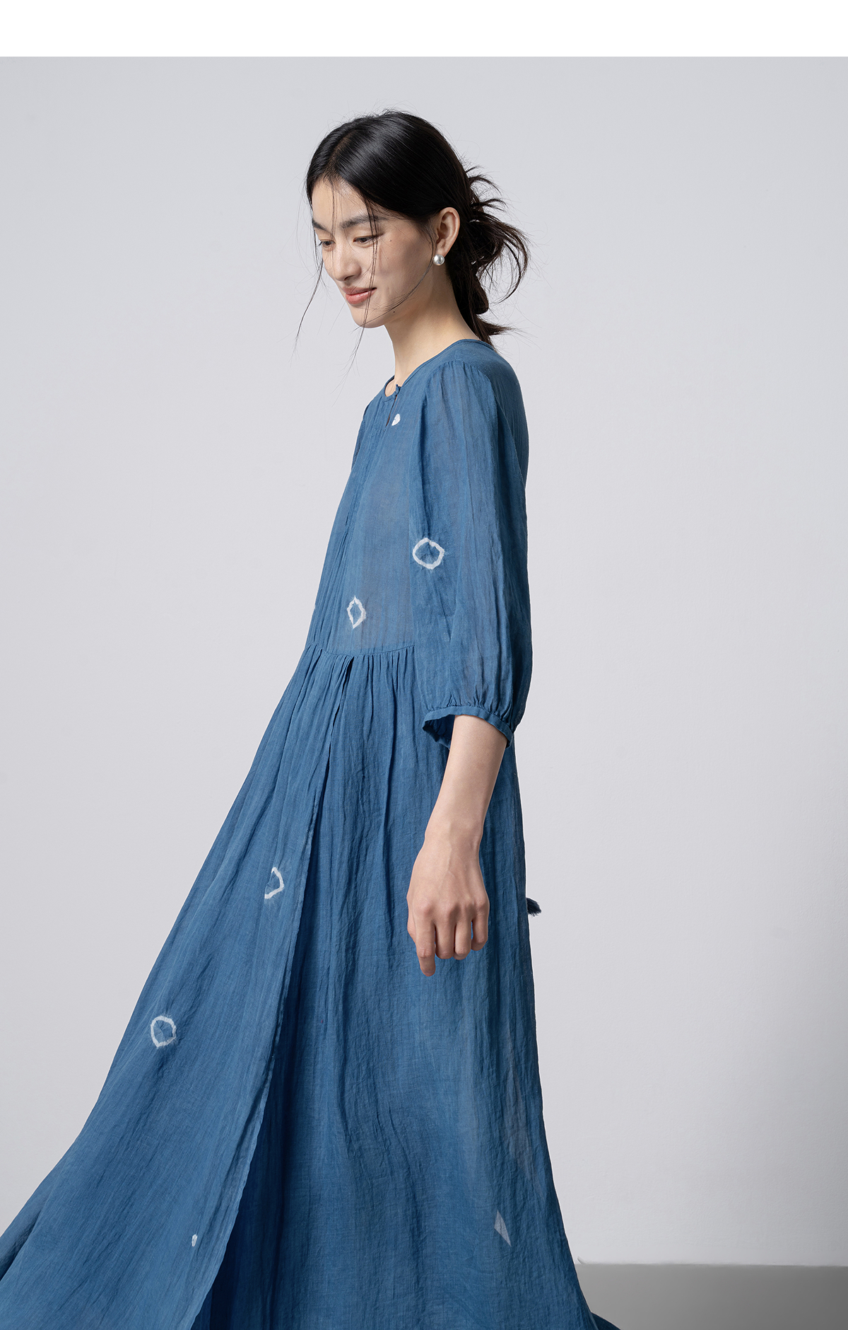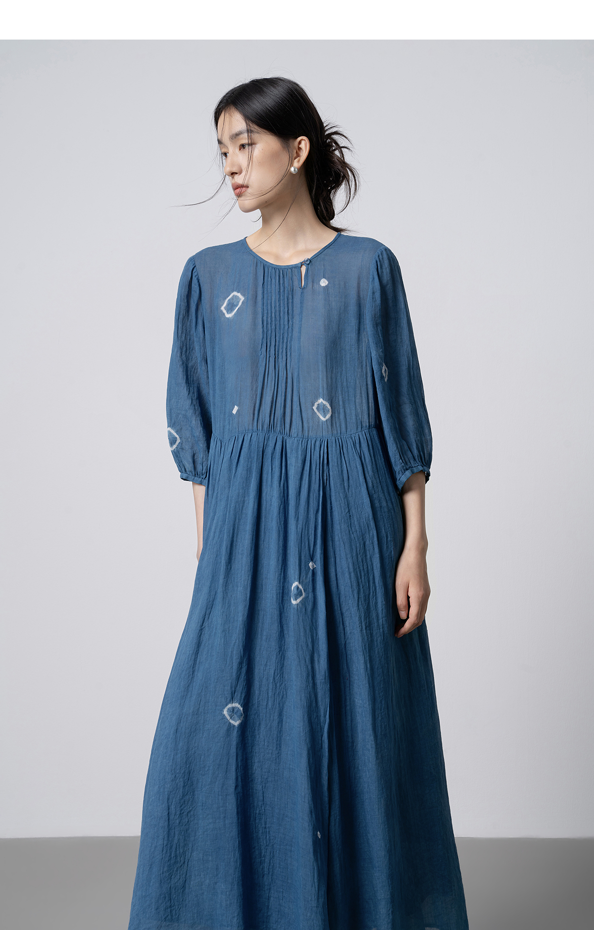 【林栖设计小店】(现货)植物染色|植物蓝手工流苏腰绳百搭2026春新款棉麻连衣裙1961139