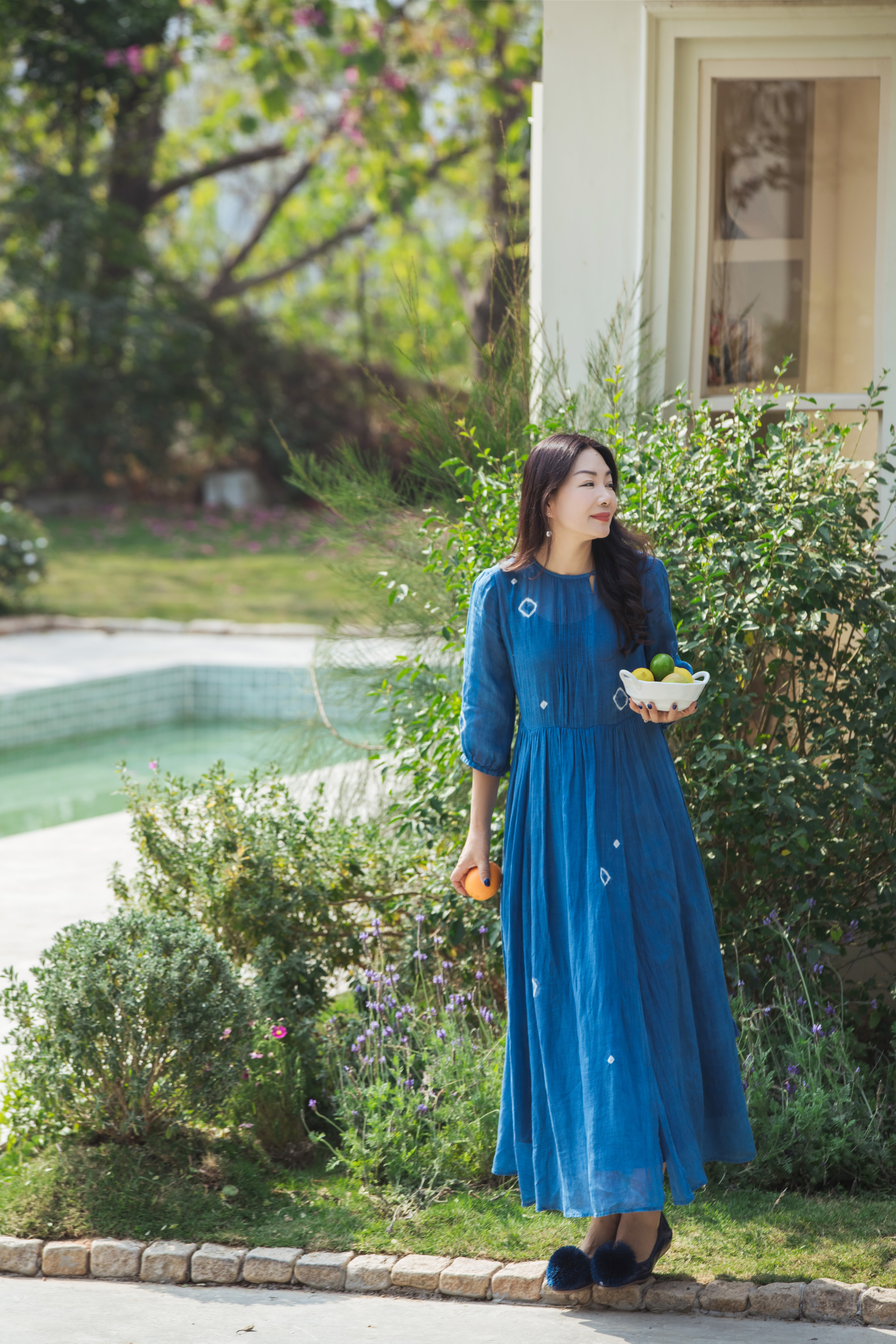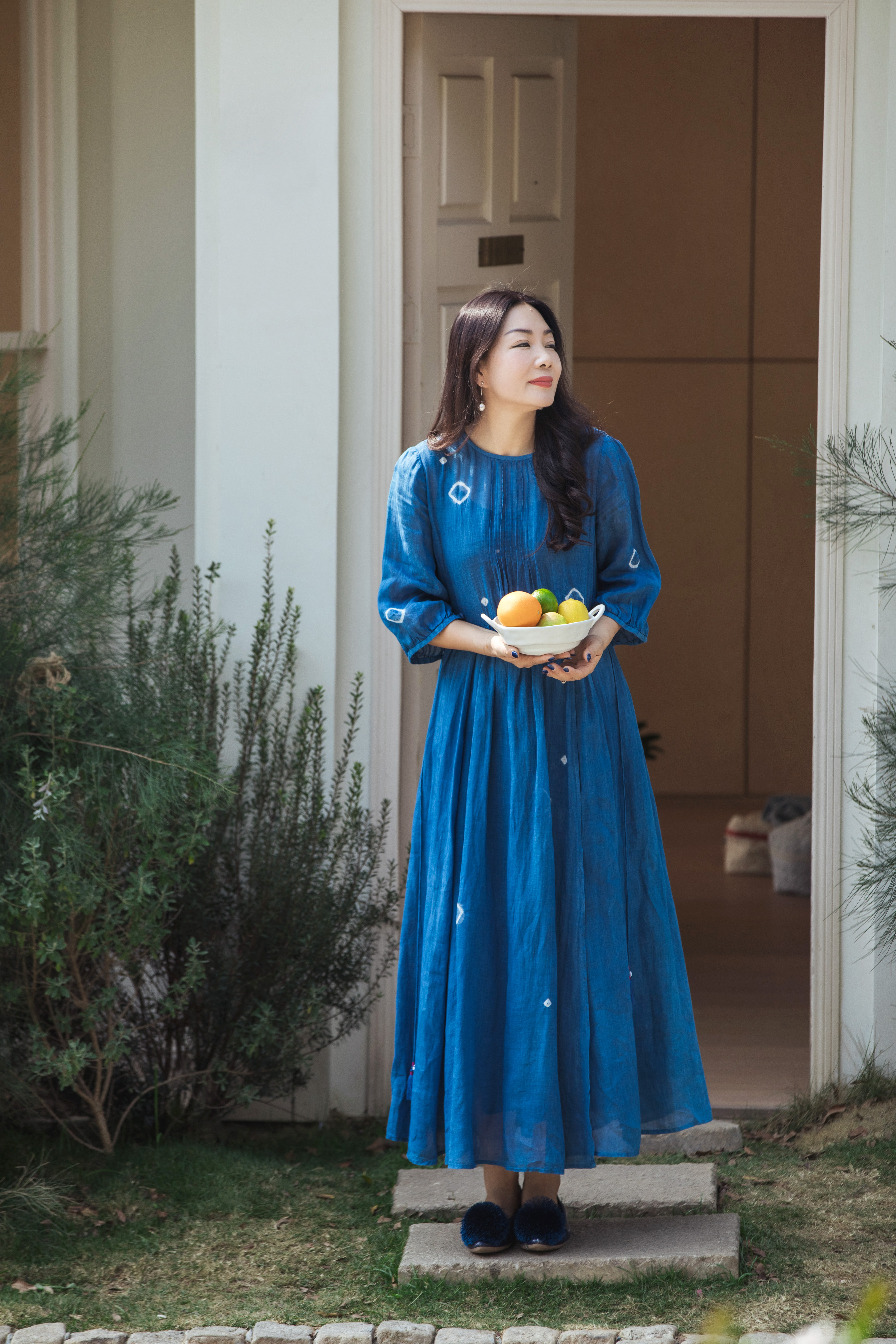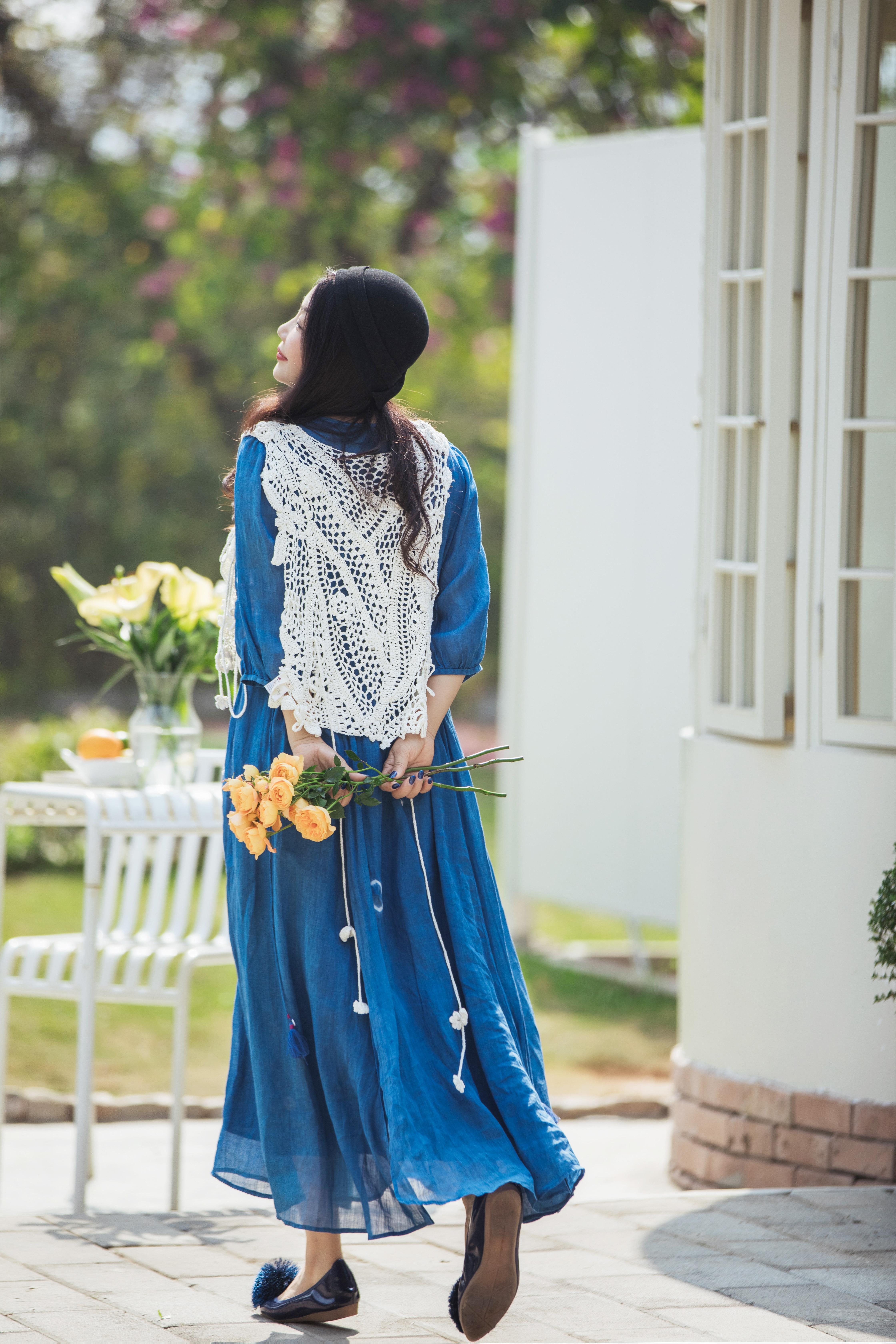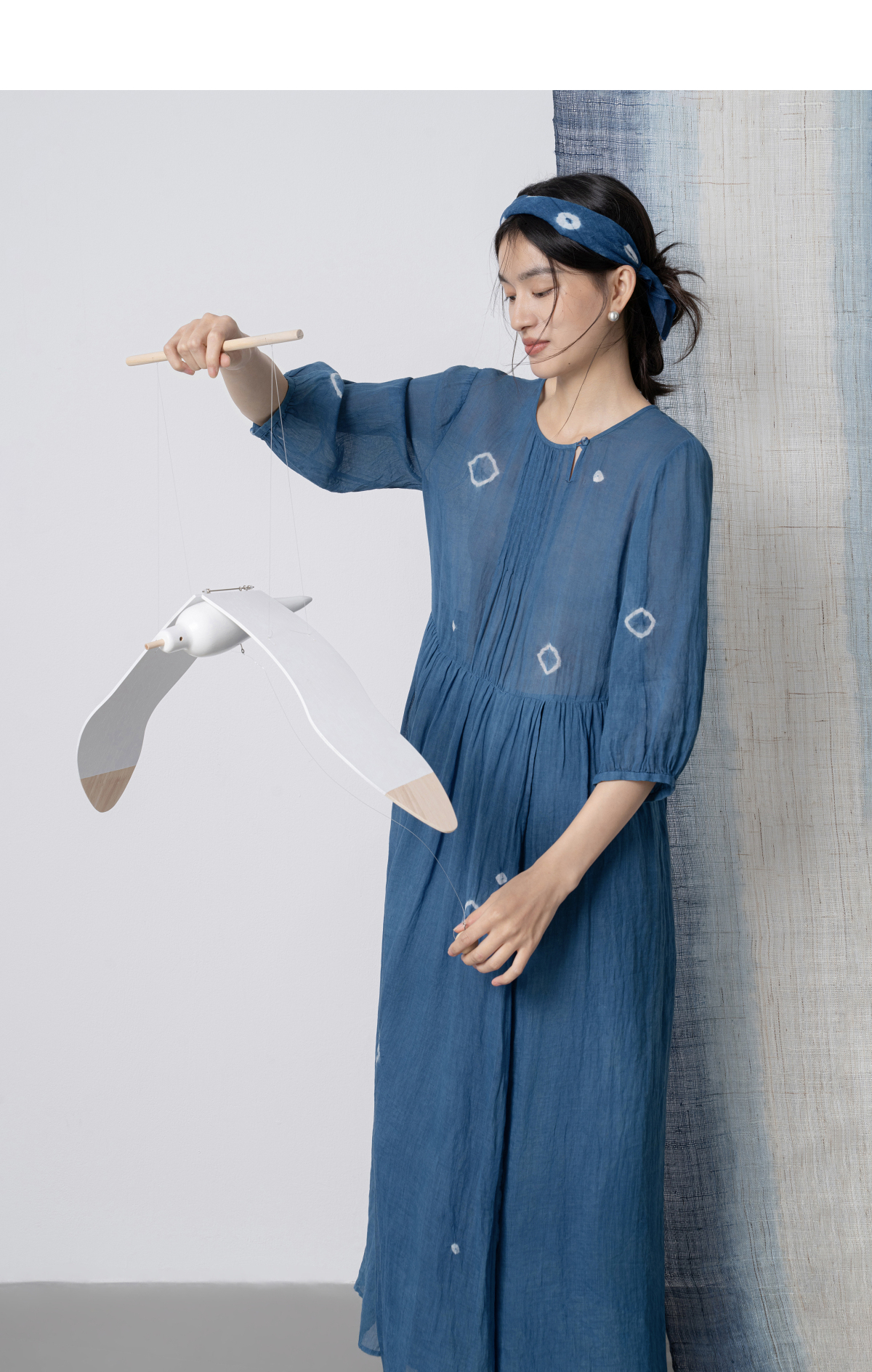 【林栖设计小店】(现货)植物染色|植物蓝手工流苏腰绳百搭2026春新款棉麻连衣裙1961139