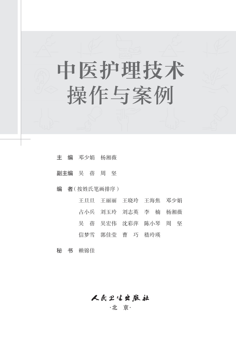 中医护理技术操作与案例 邓少娟 杨湘薇 本书涉及操作项目包括刮痧拔罐放血疗法雷火灸捏脊针四缝督灸等34项技术 人民卫生出版社