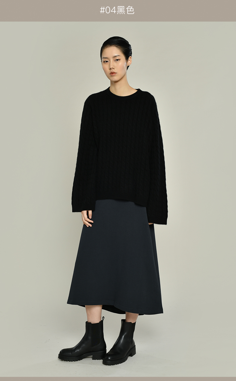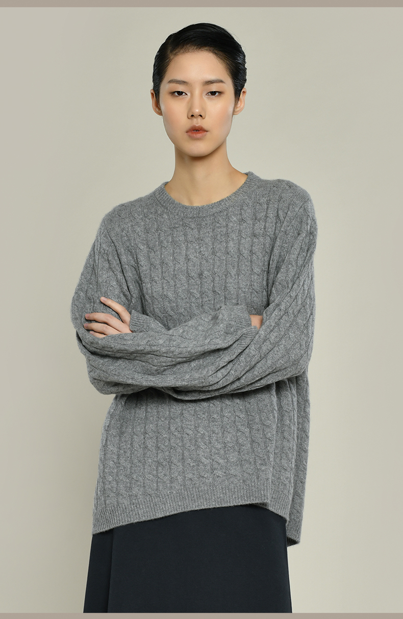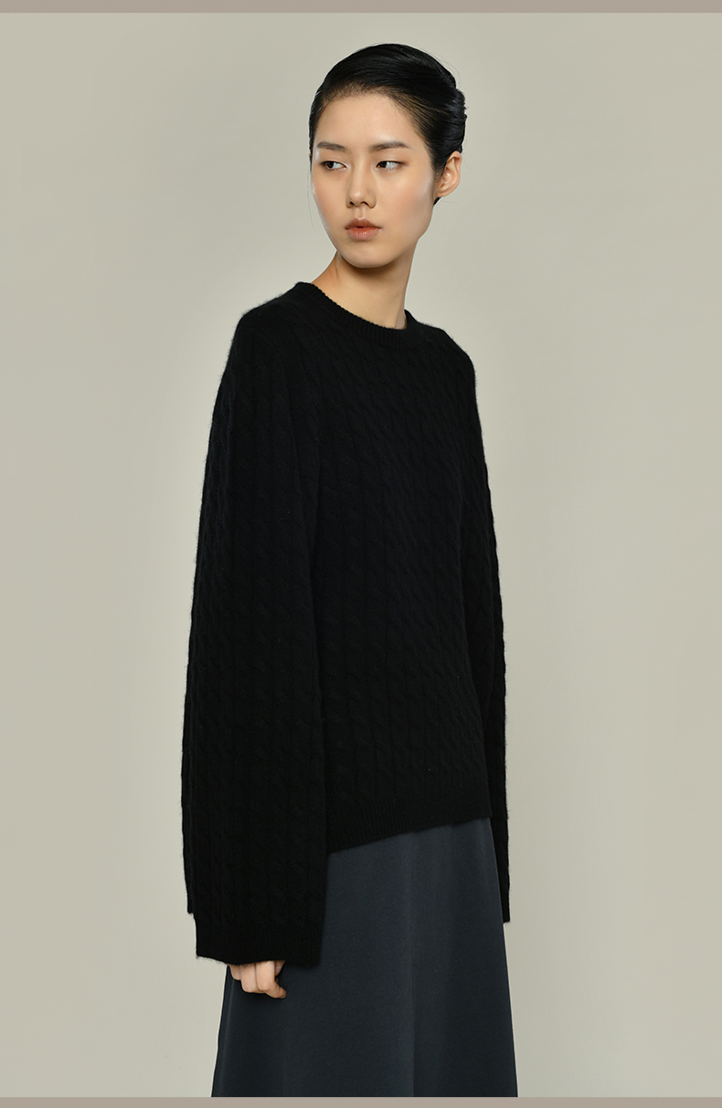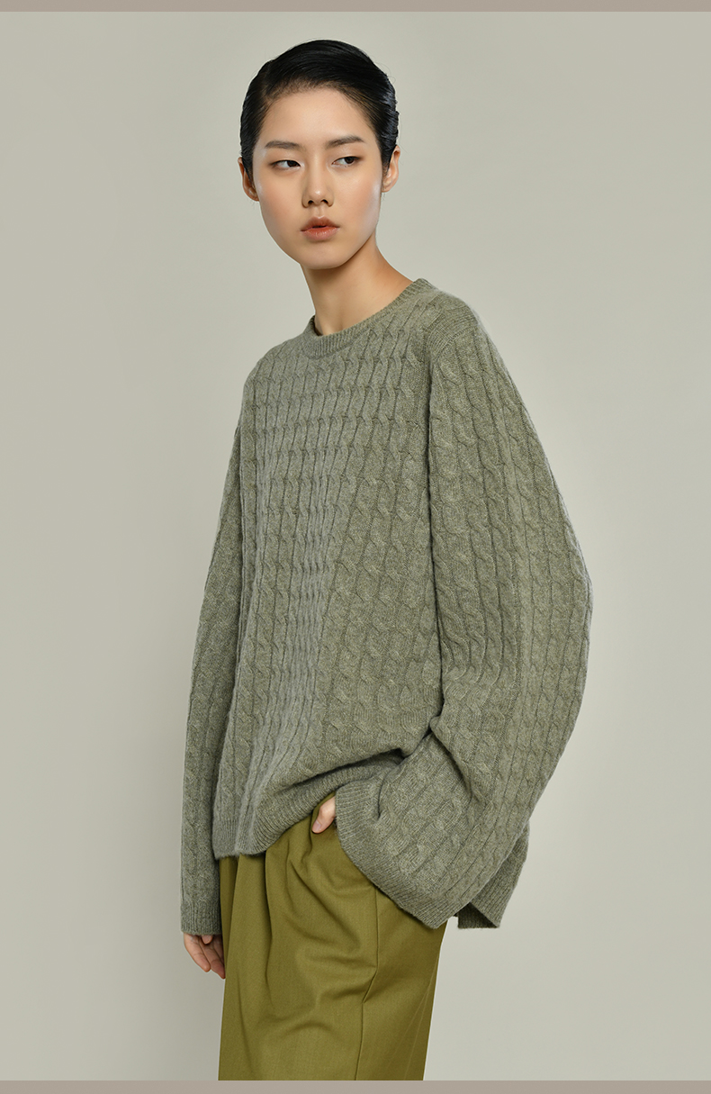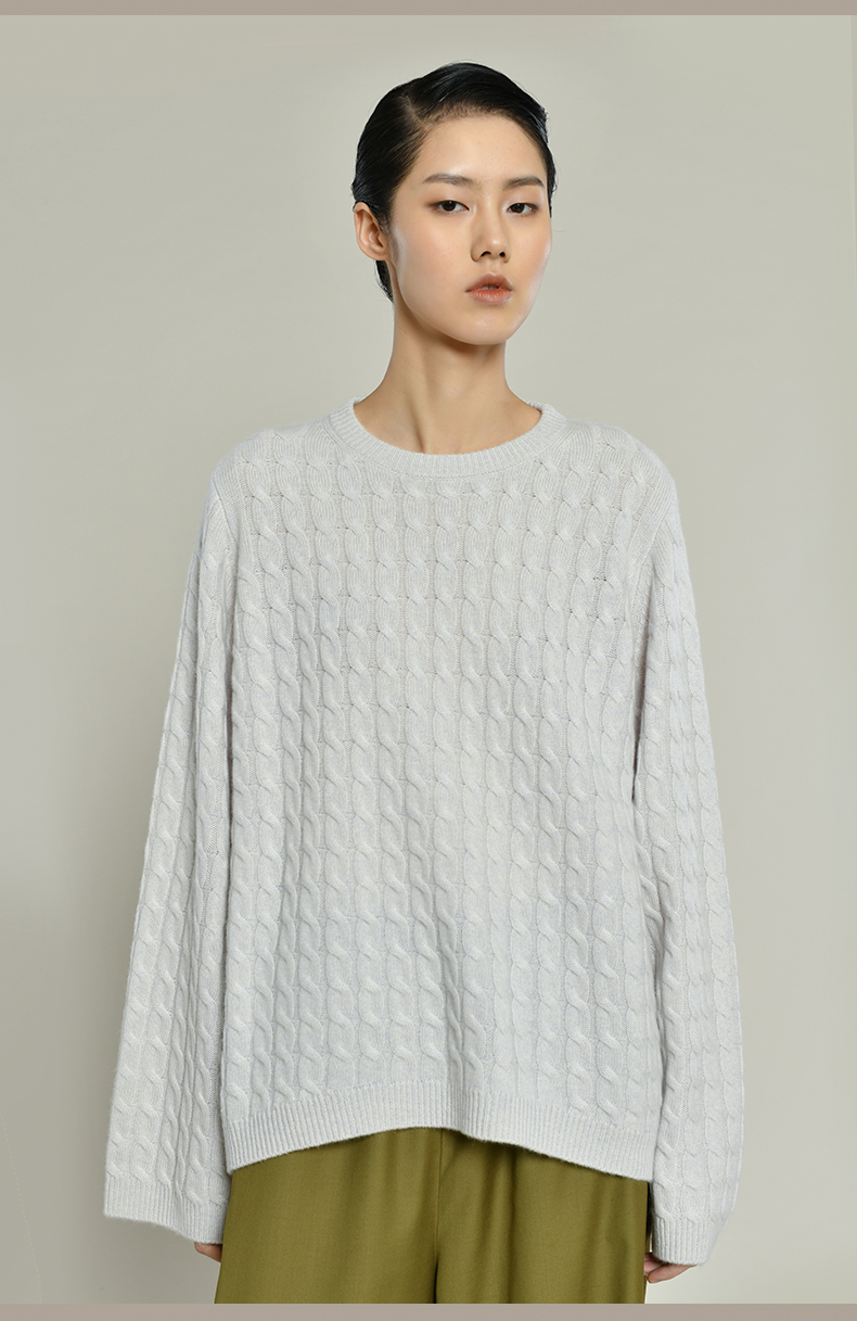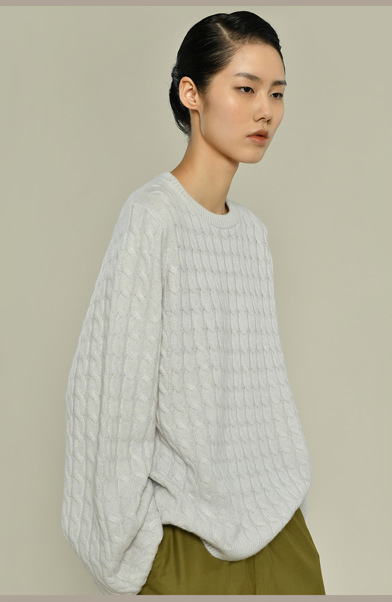 女士2021新款纯山羊绒衫廓形绞花套头衫