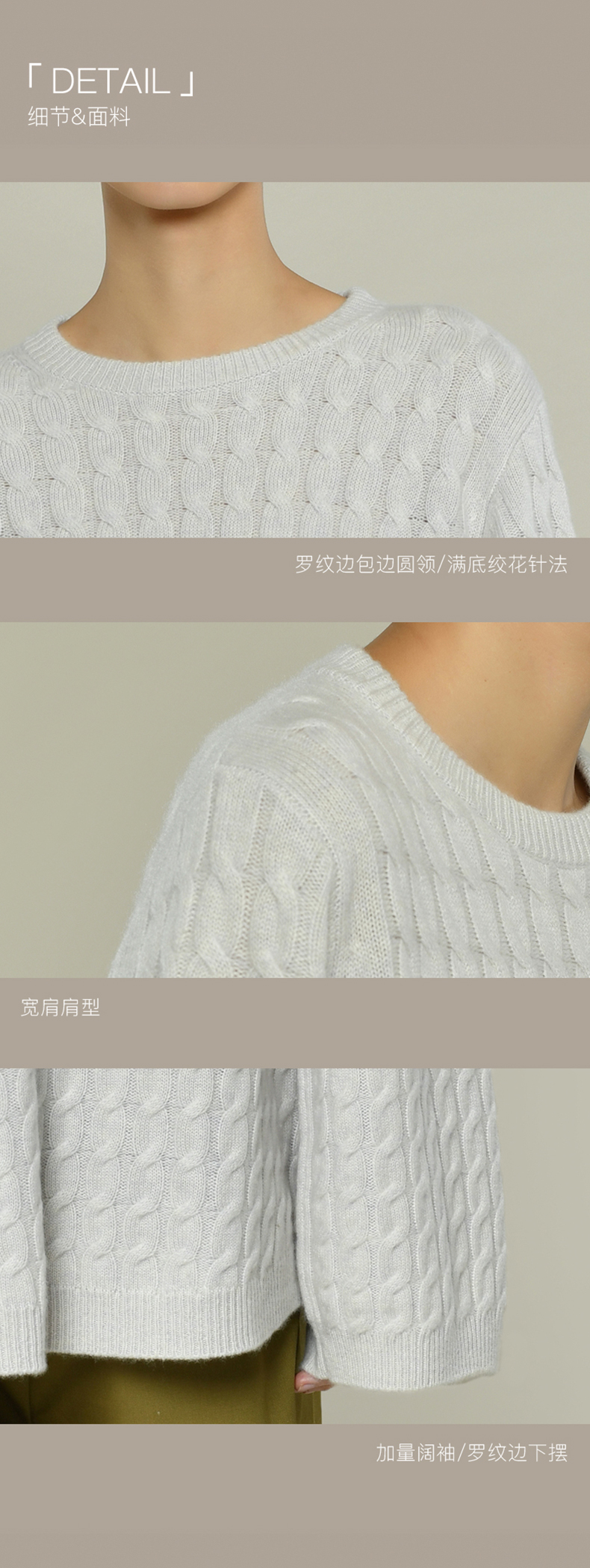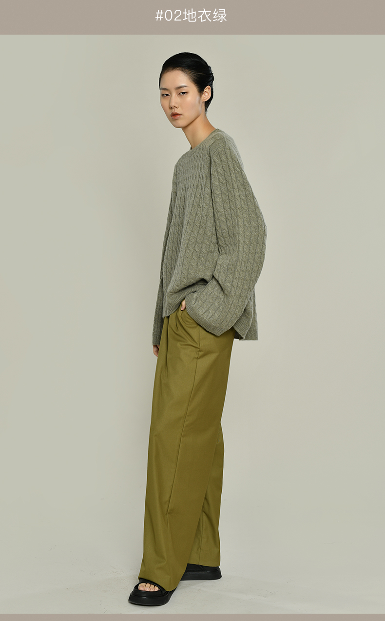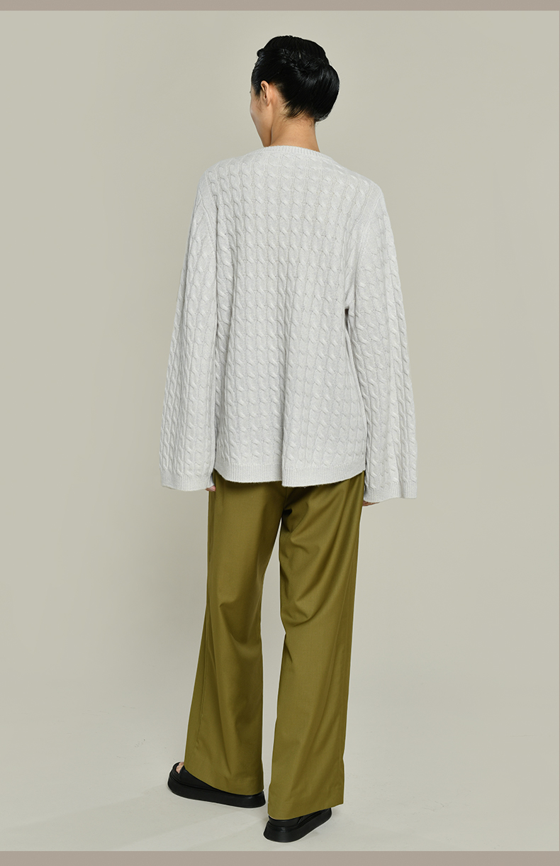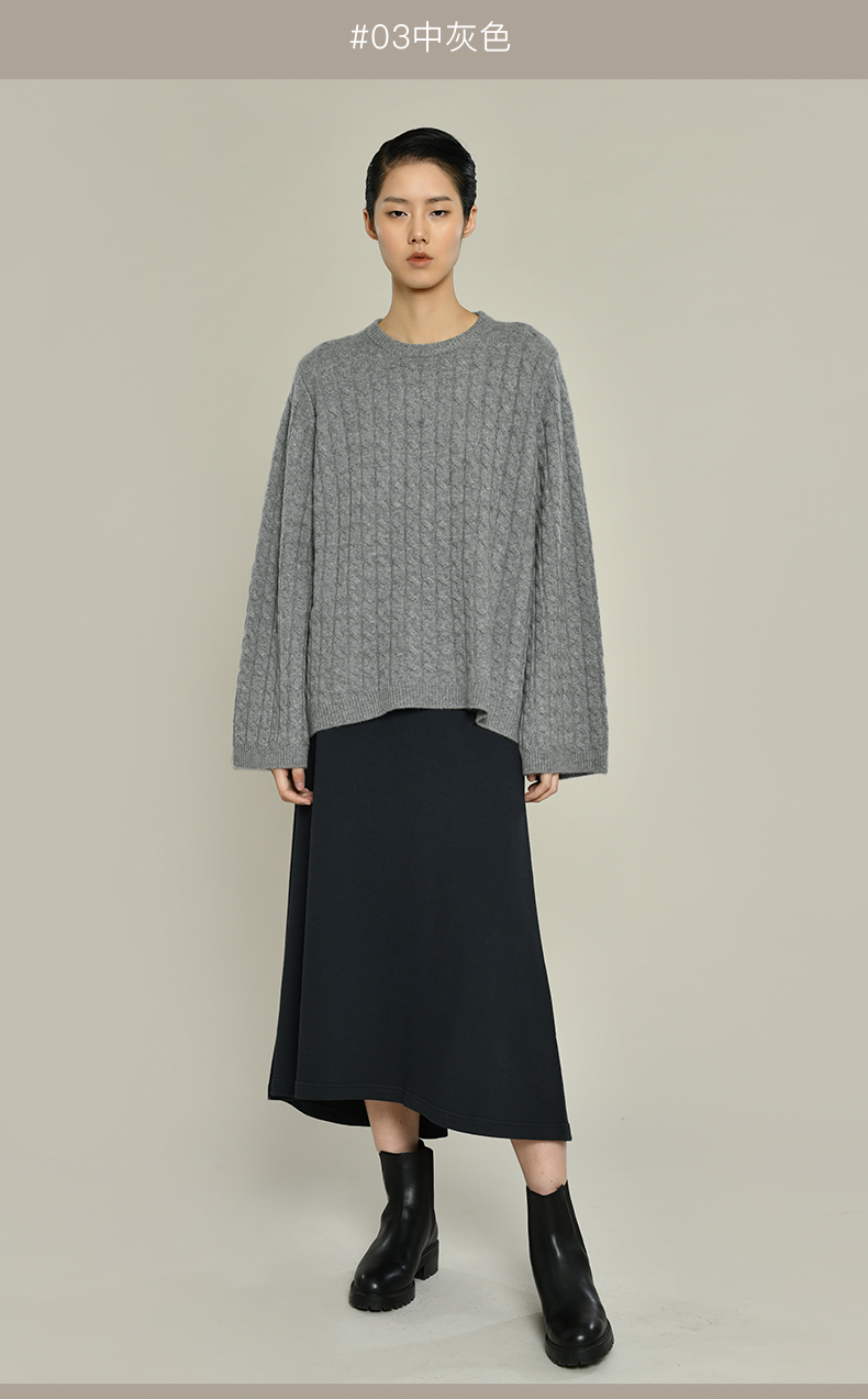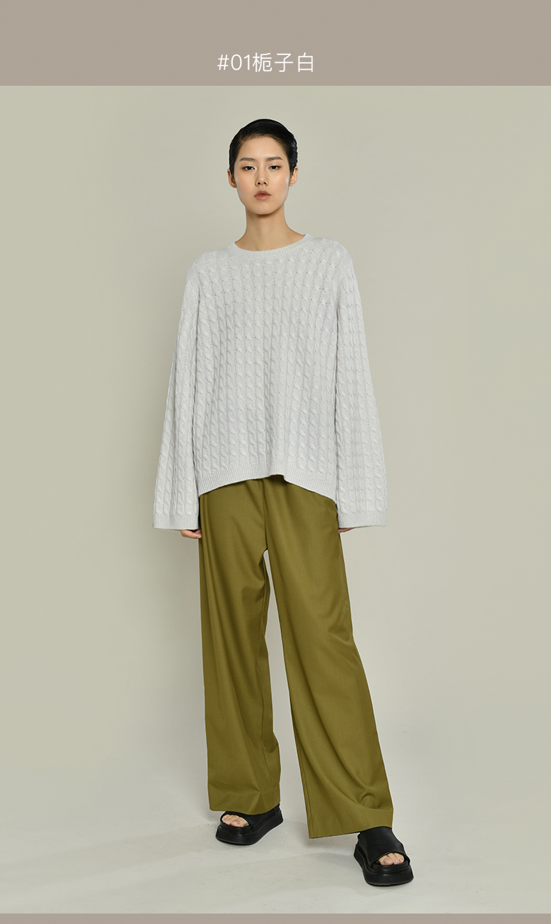 女士2021新款纯山羊绒衫廓形绞花套头衫