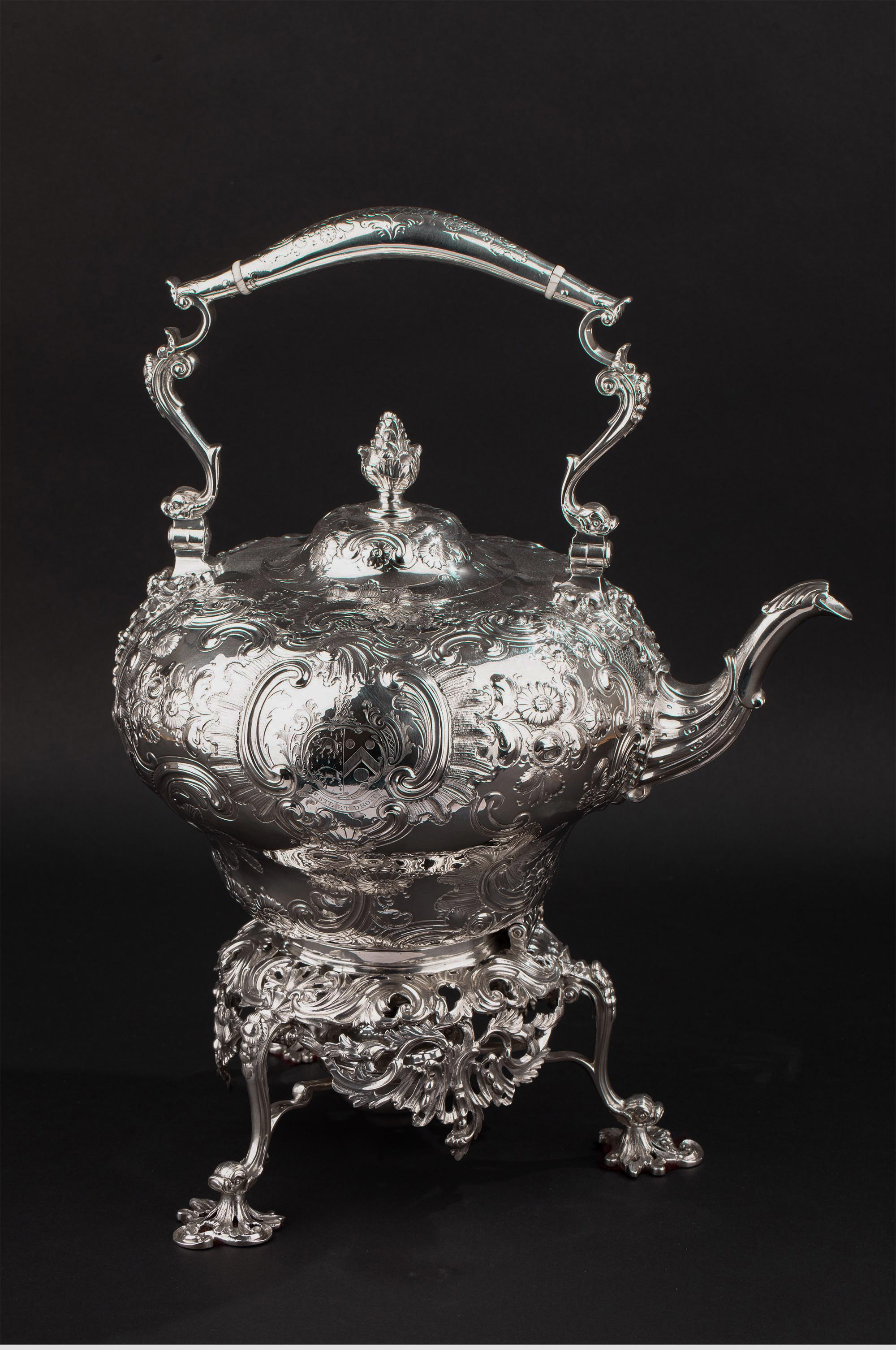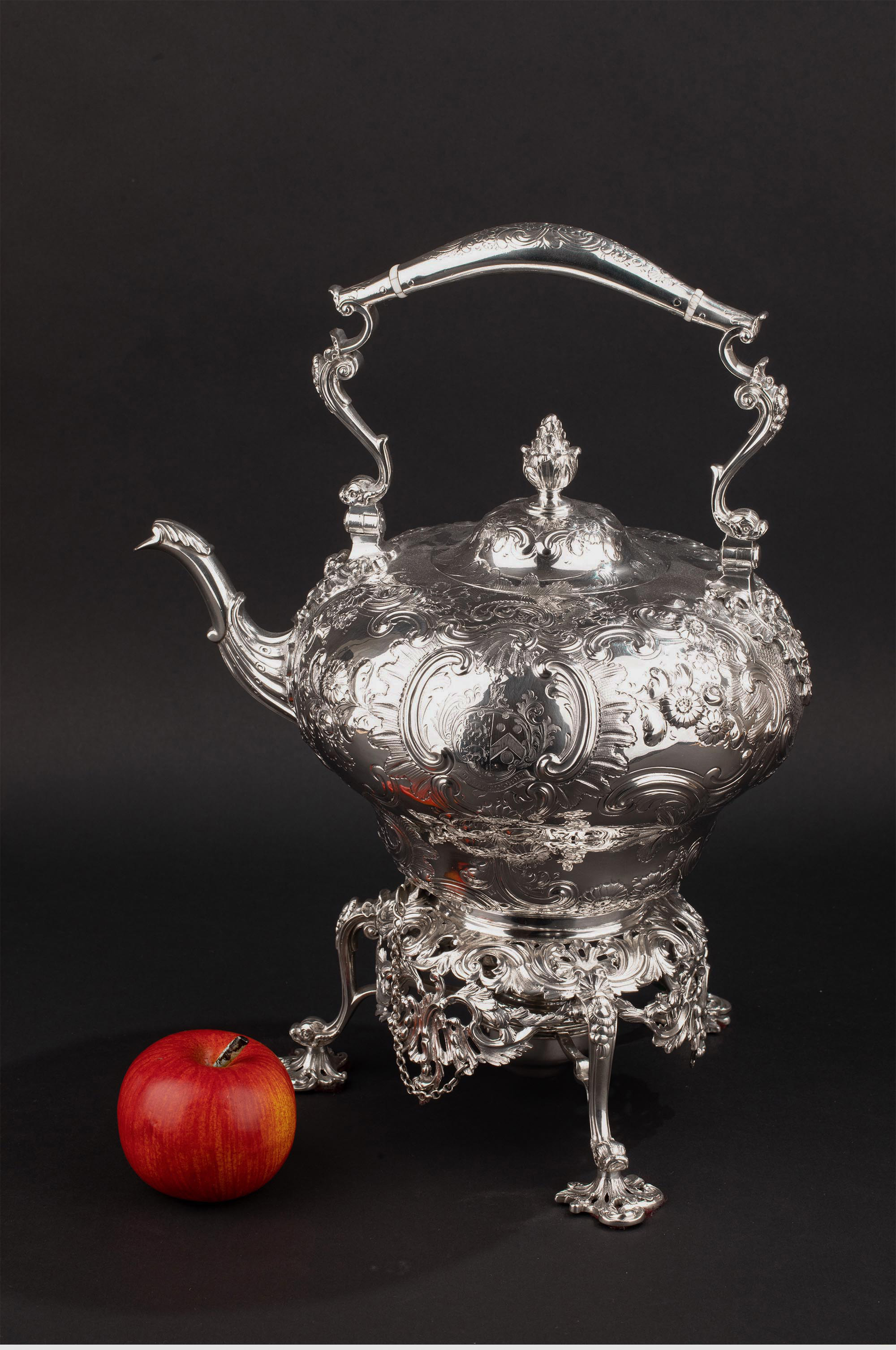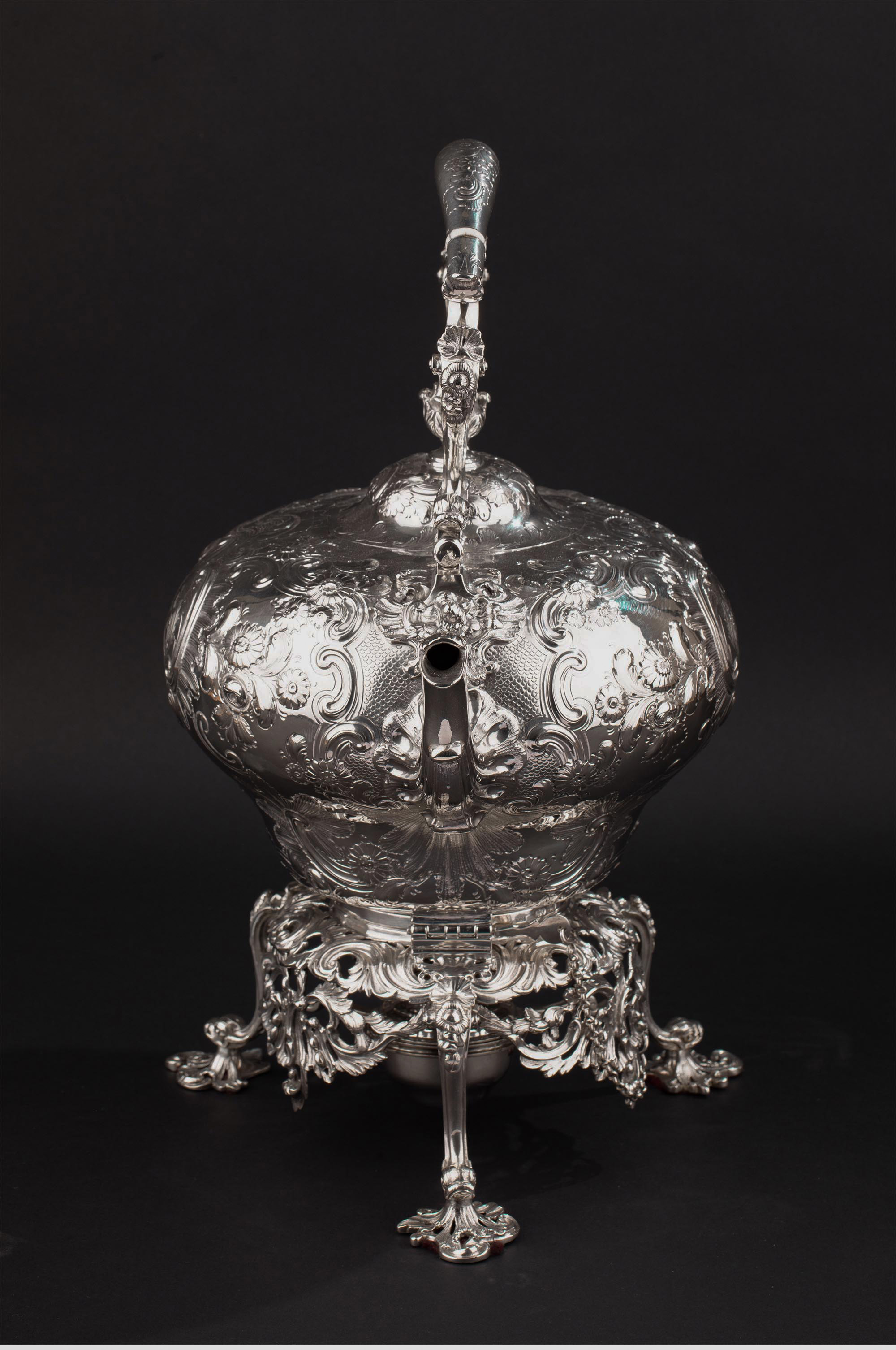 1845年伦敦出品乔治男爵私人定制洛可可风格纯银精雕茶炊套件