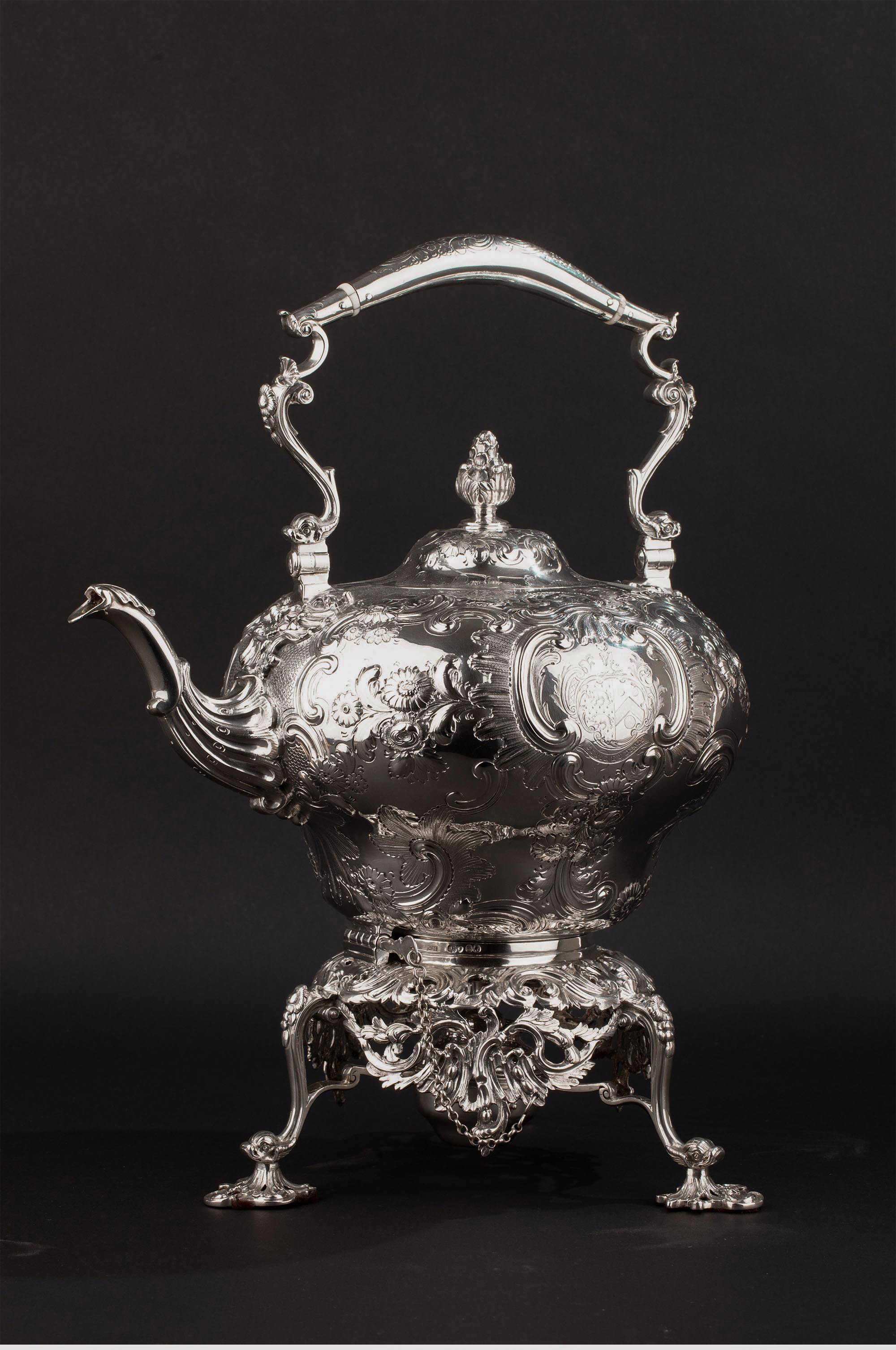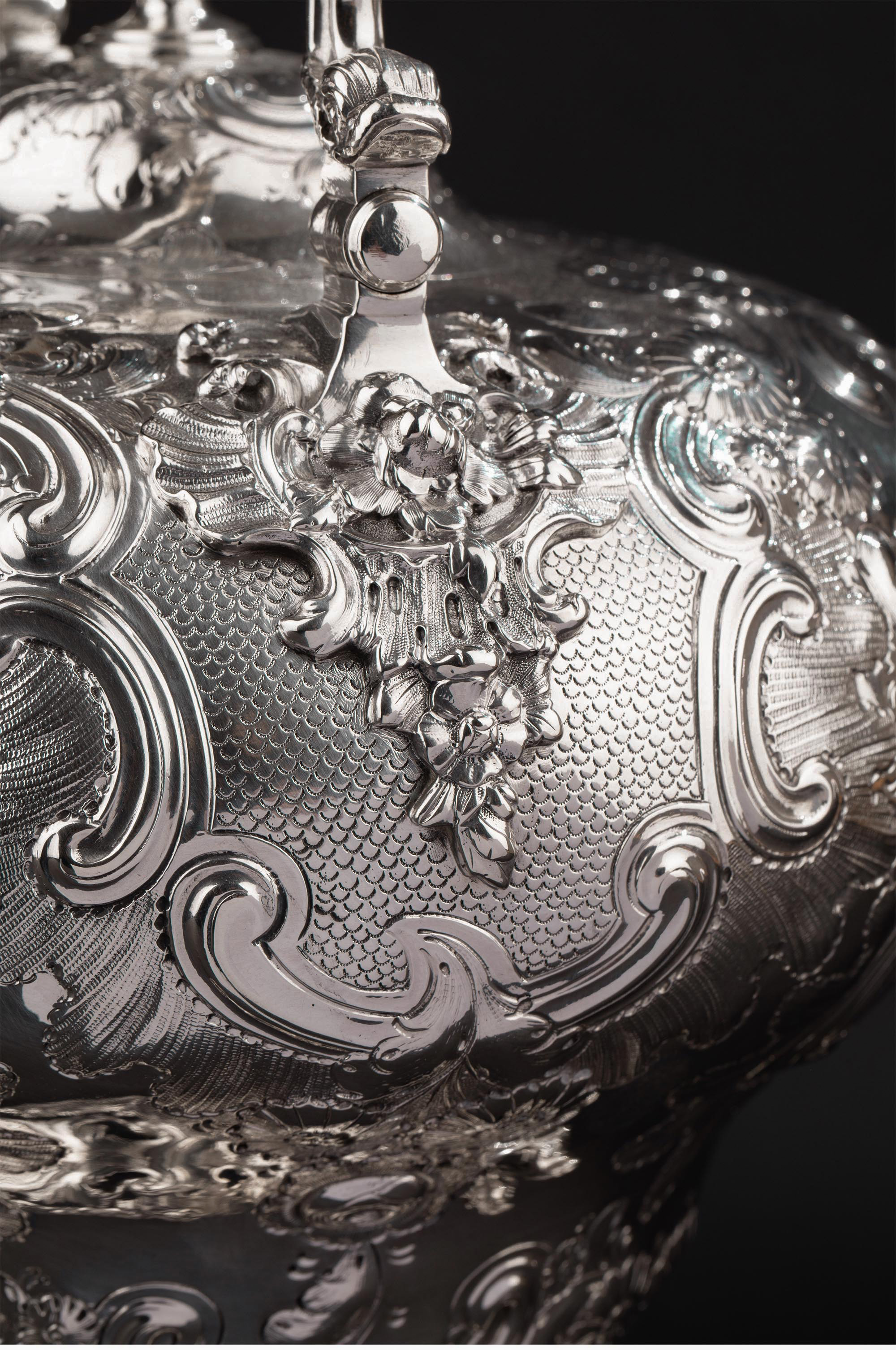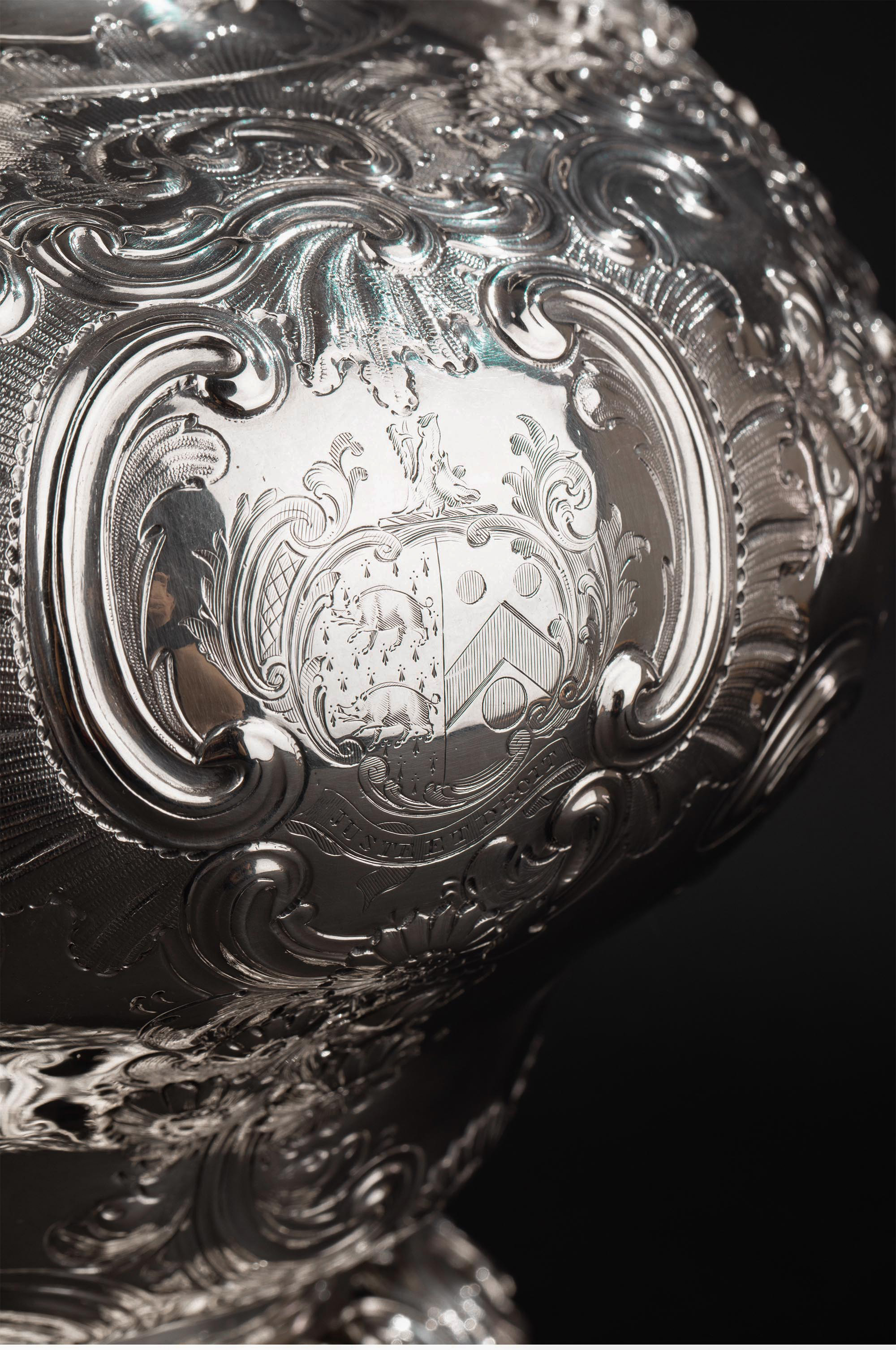 1845年伦敦出品乔治男爵私人定制洛可可风格纯银精雕茶炊套件