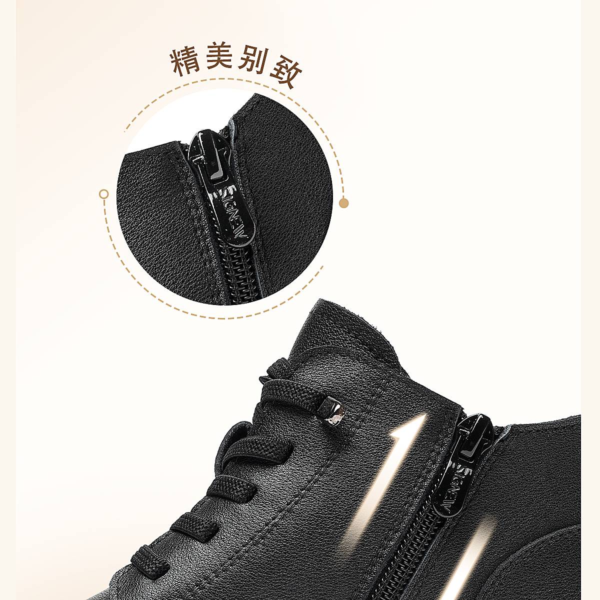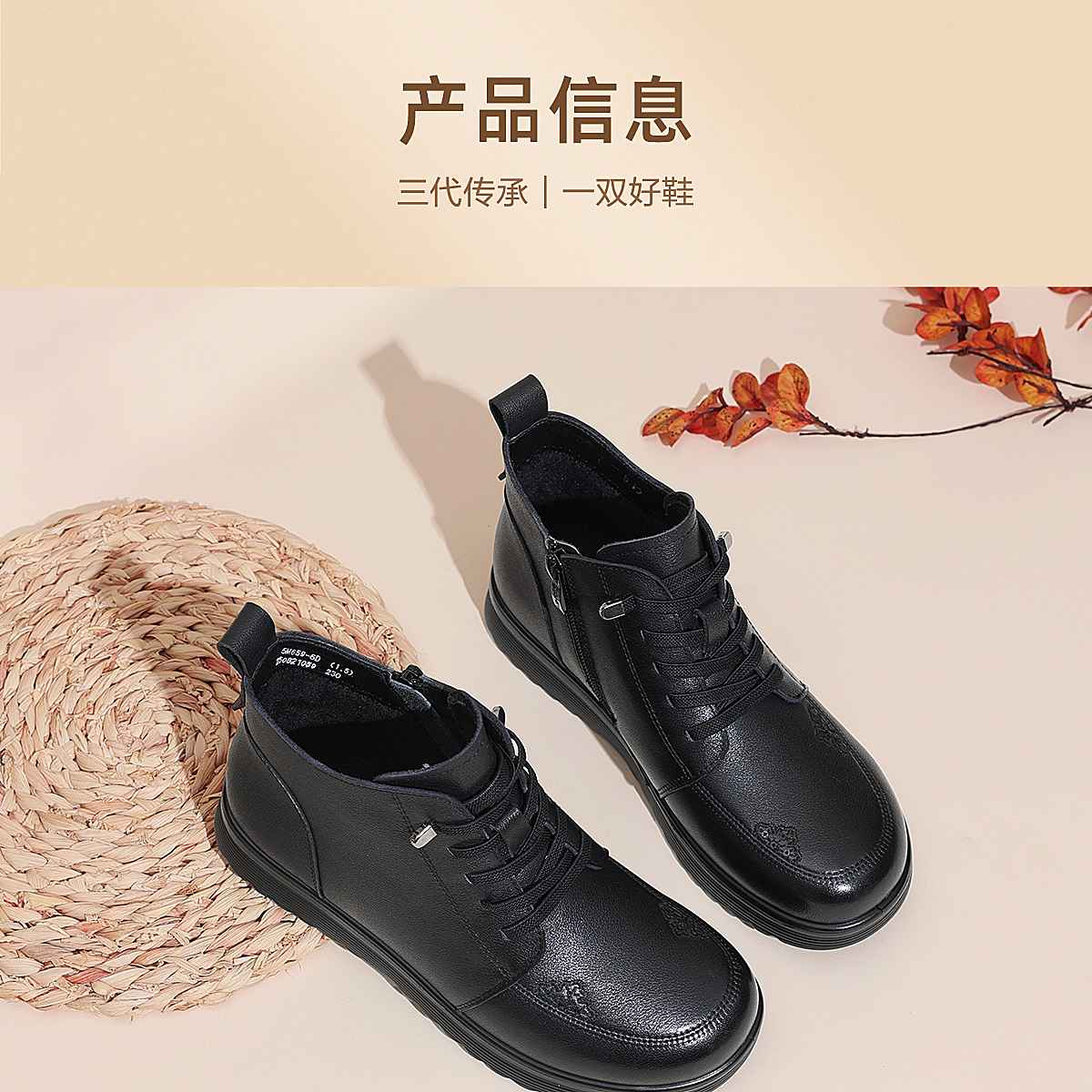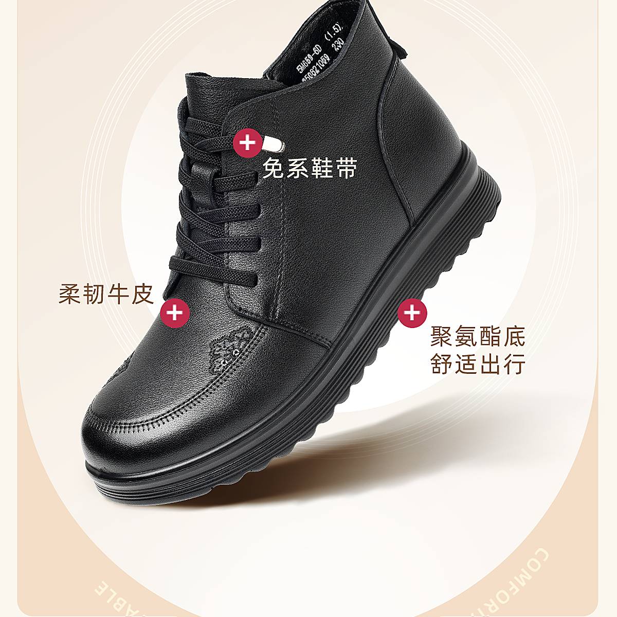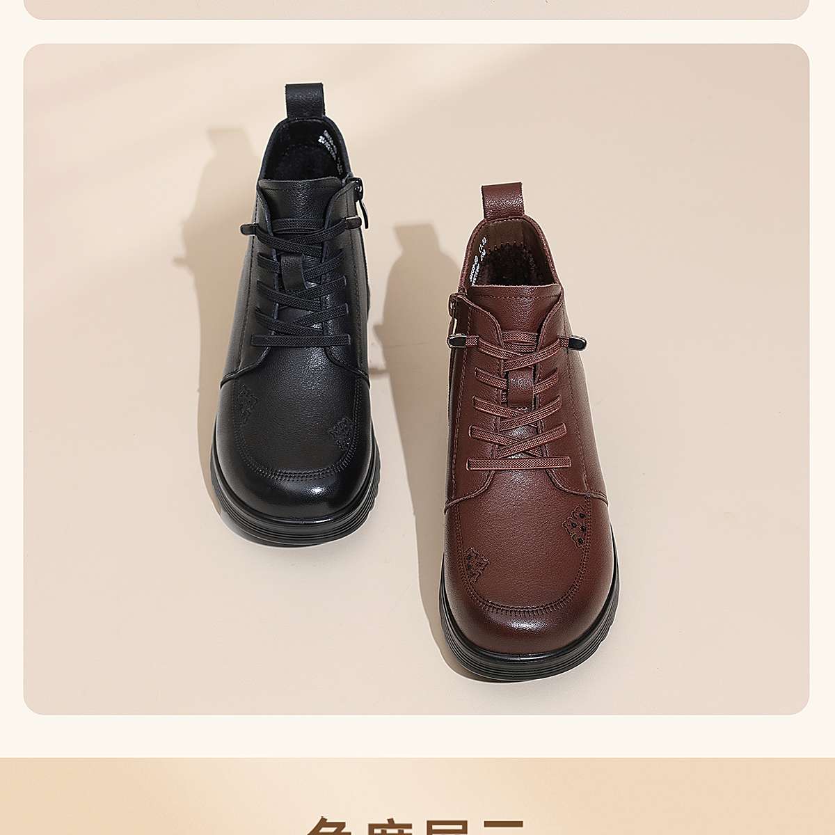 信诺真皮妈妈鞋中老年软底舒适加绒保暖棉鞋厚底短靴2025冬季新款5M659-6D