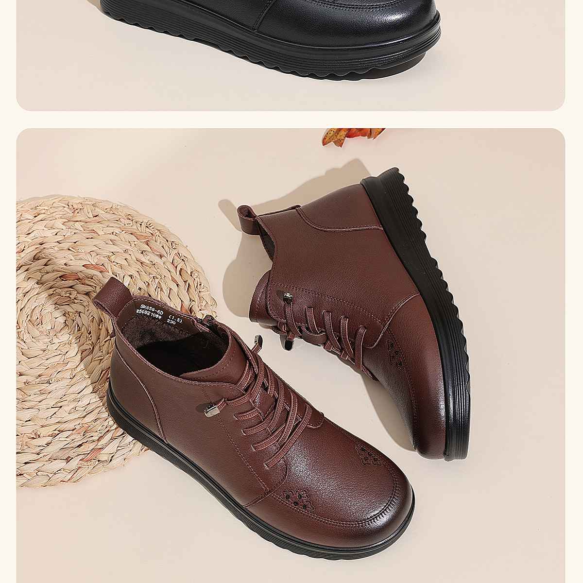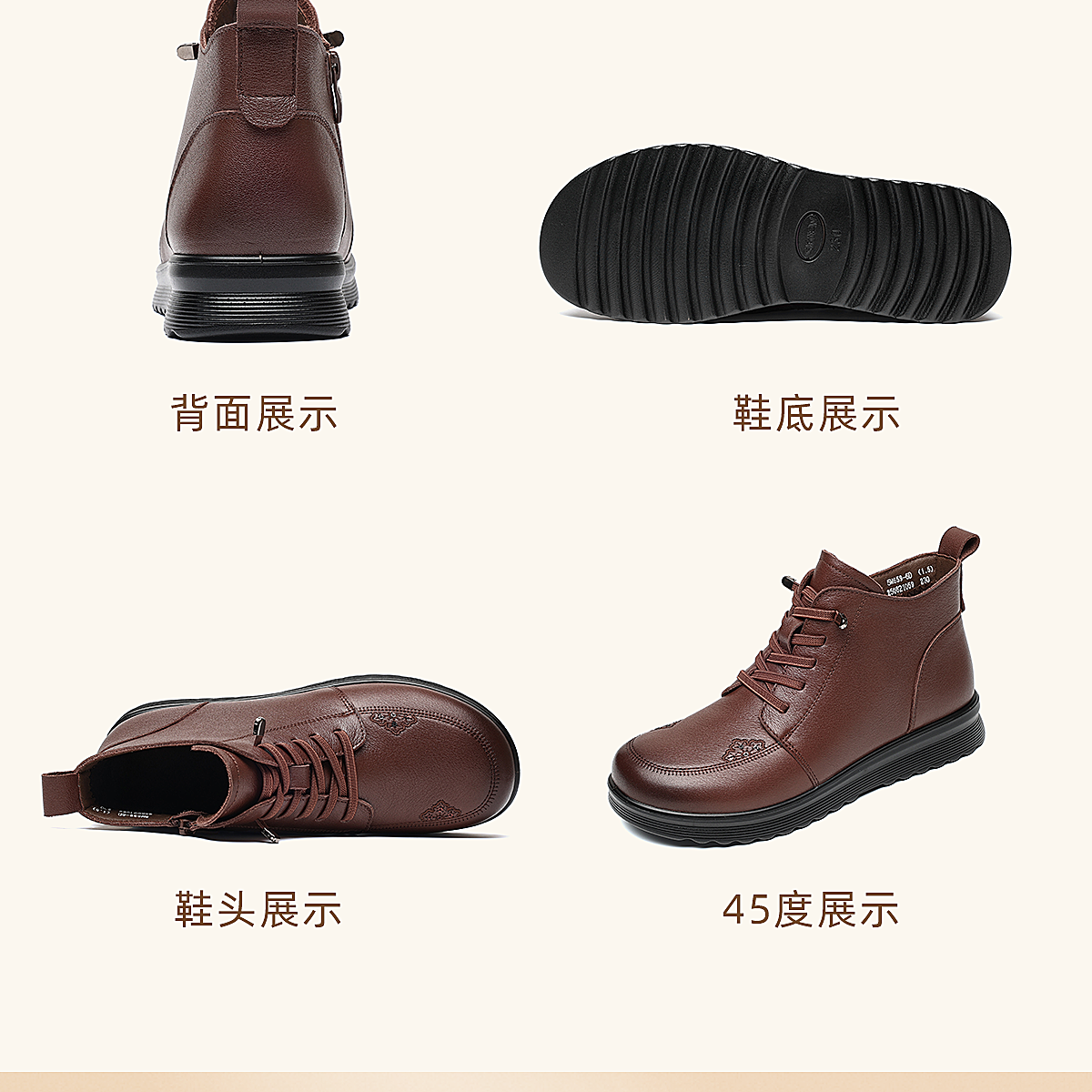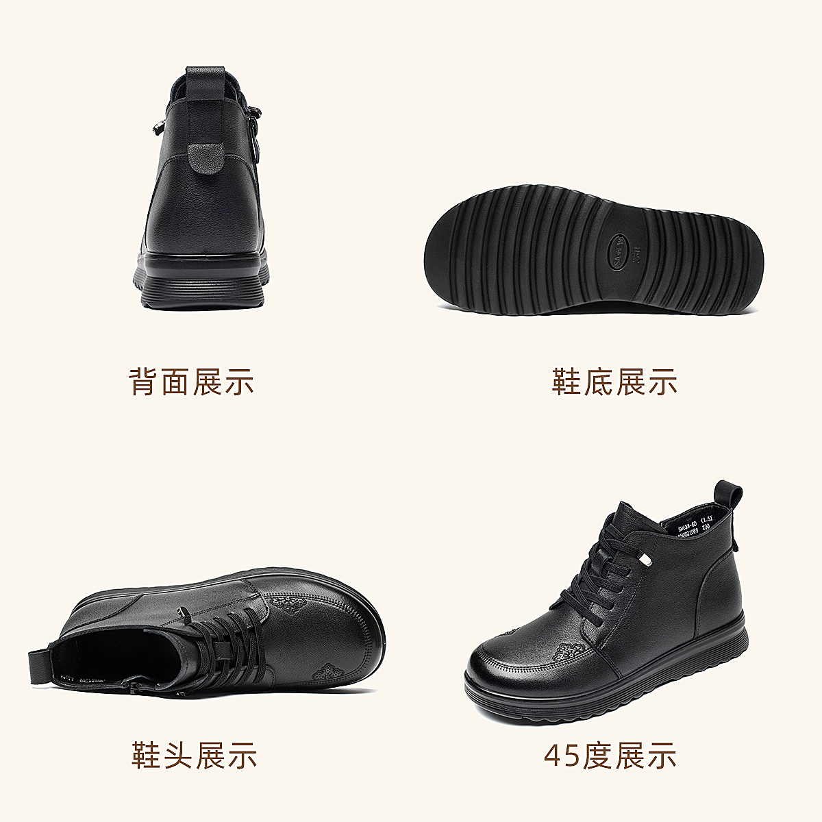 信诺真皮妈妈鞋中老年软底舒适加绒保暖棉鞋厚底短靴2025冬季新款5M659-6D
