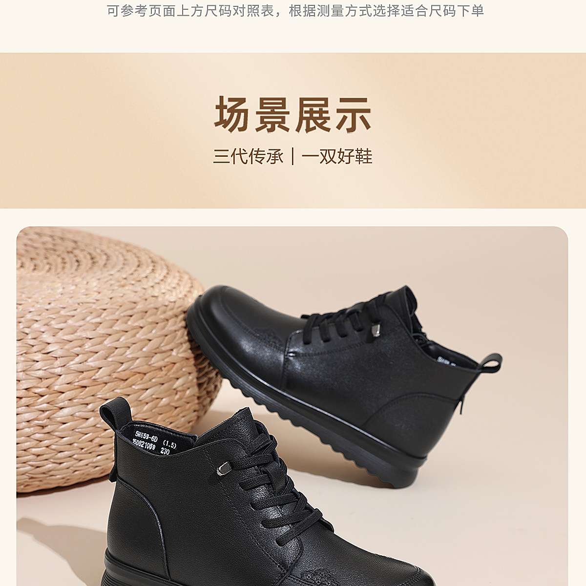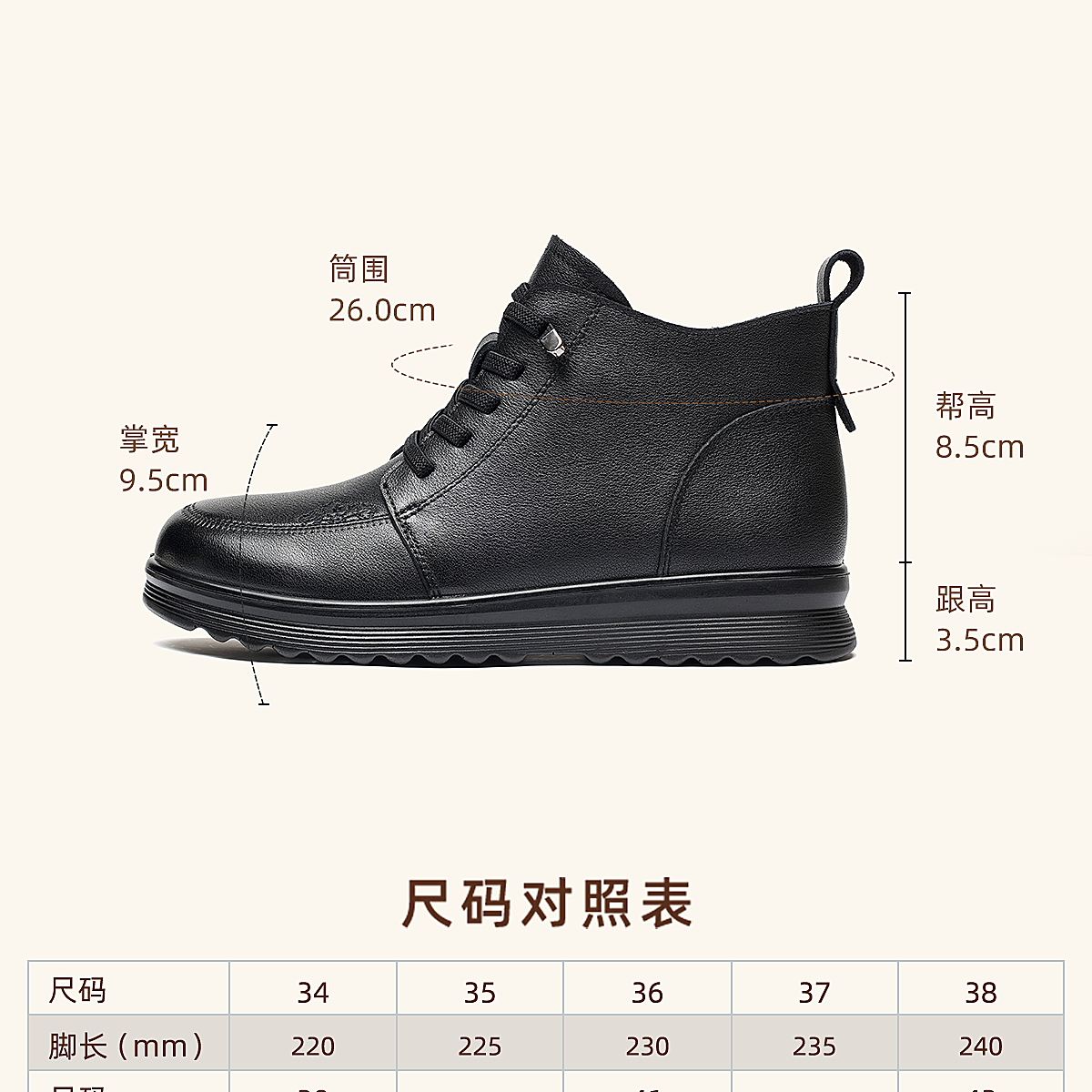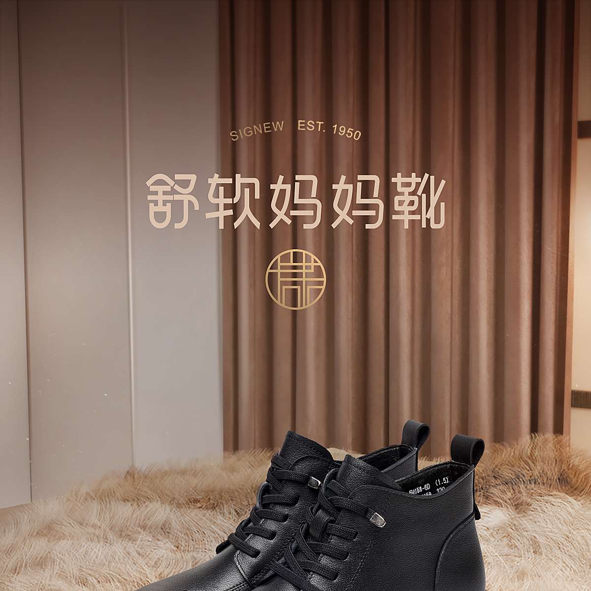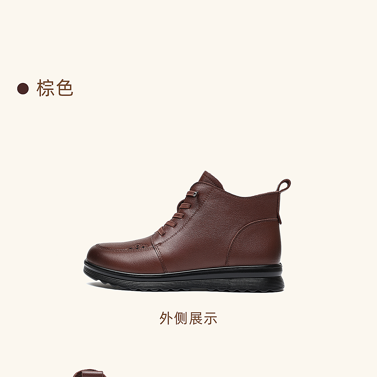 信诺真皮妈妈鞋中老年软底舒适加绒保暖棉鞋厚底短靴2025冬季新款5M659-6D