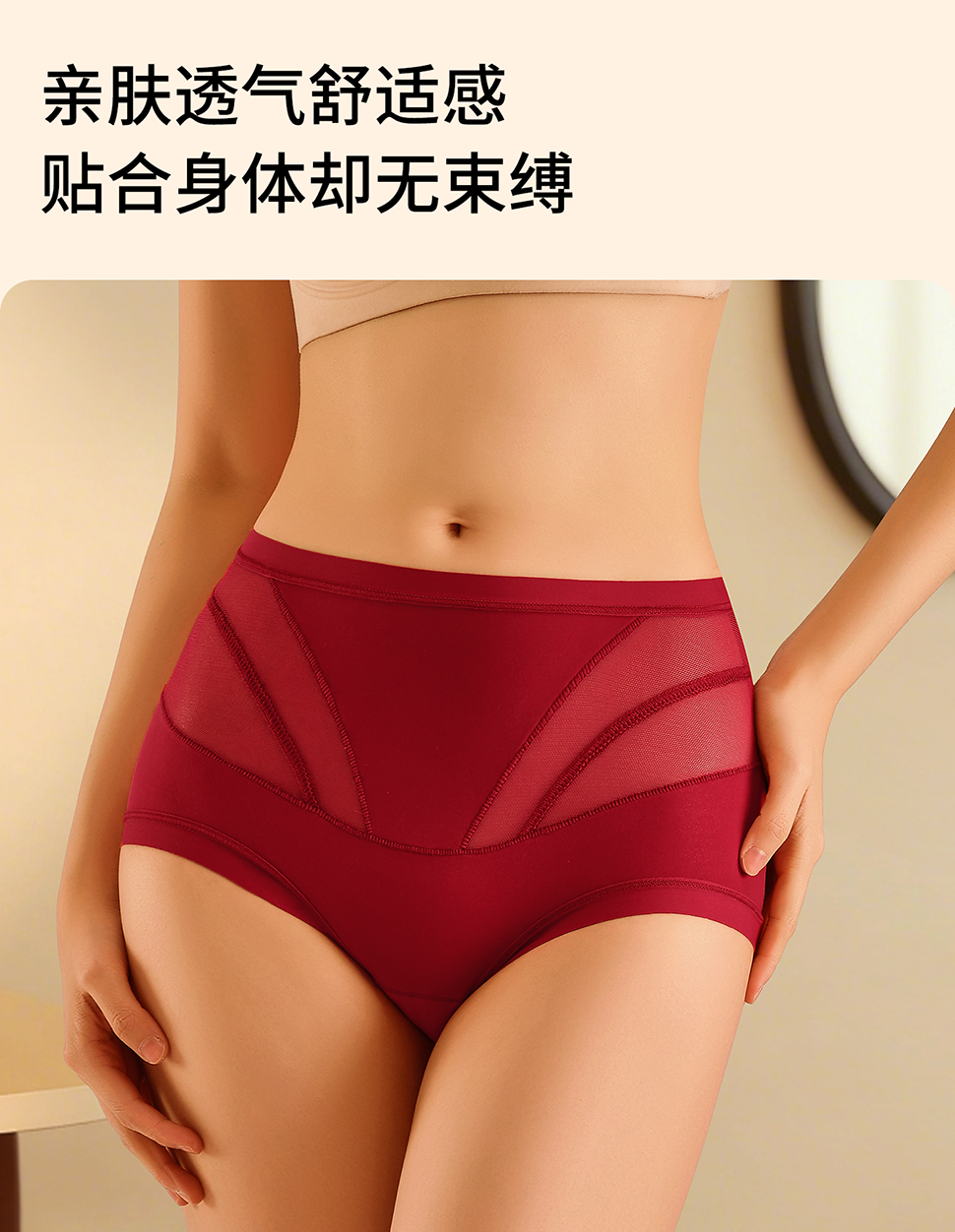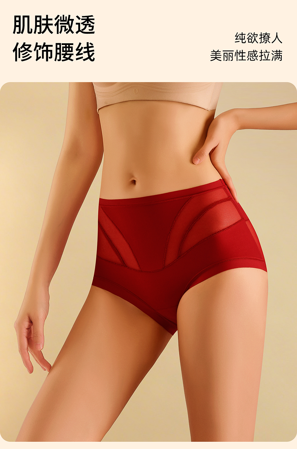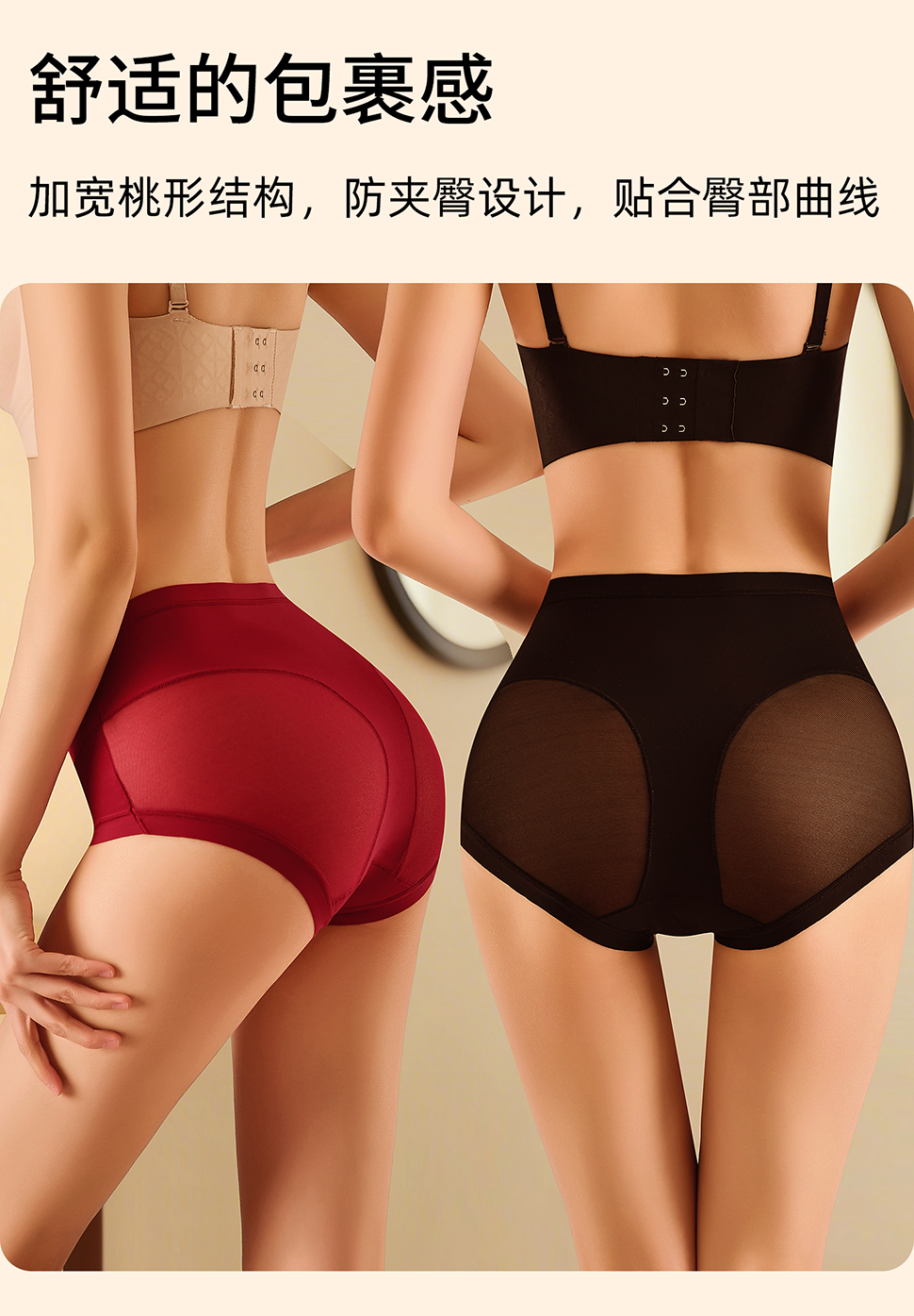 微压轻塑「AILISCOCO裸感无痕网纱轻塑裤」加宽桃形结构 防夹臀设计 贴合臀部曲线 加长加宽蚕丝裆 充分包裹自在无感