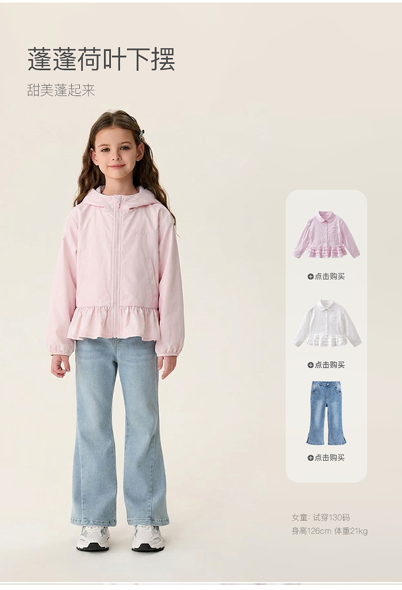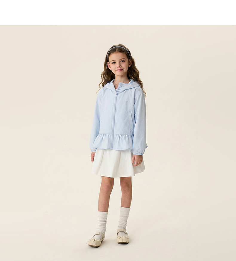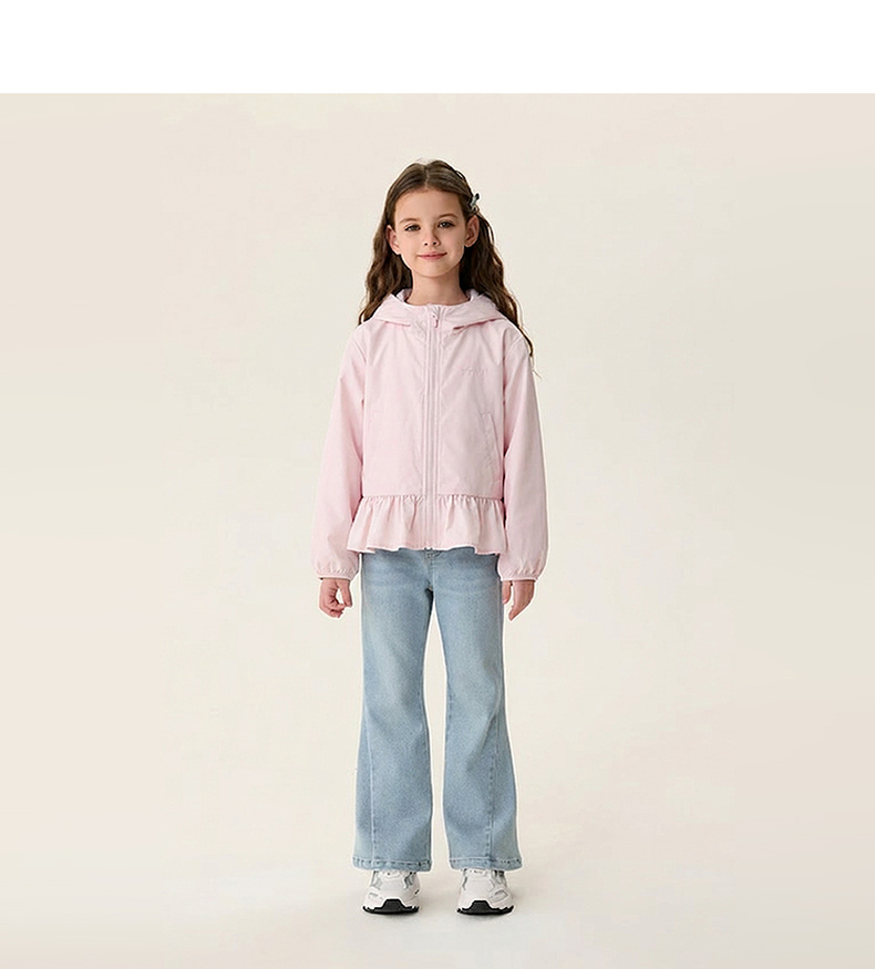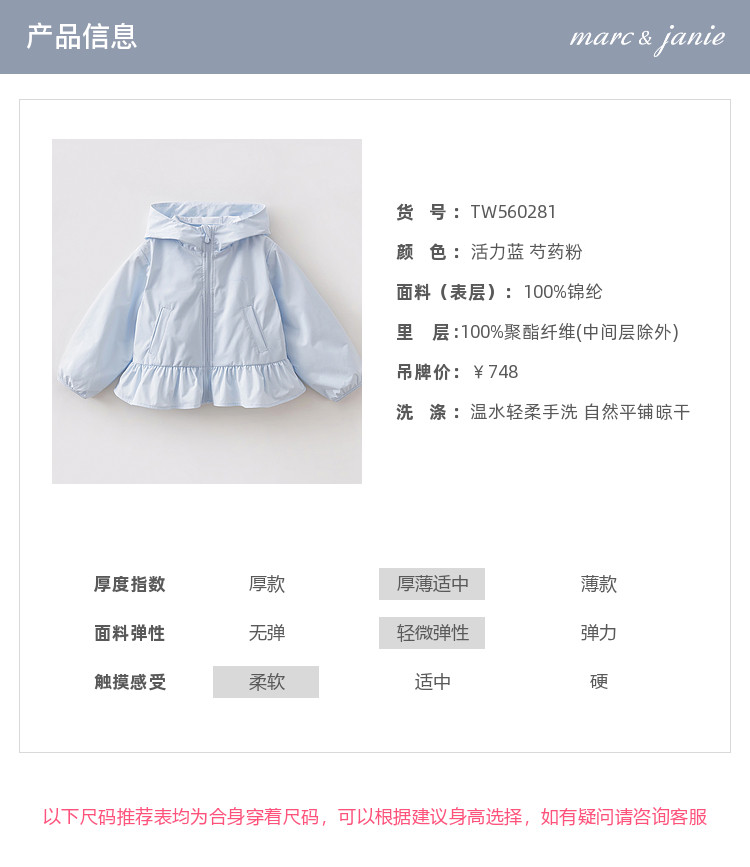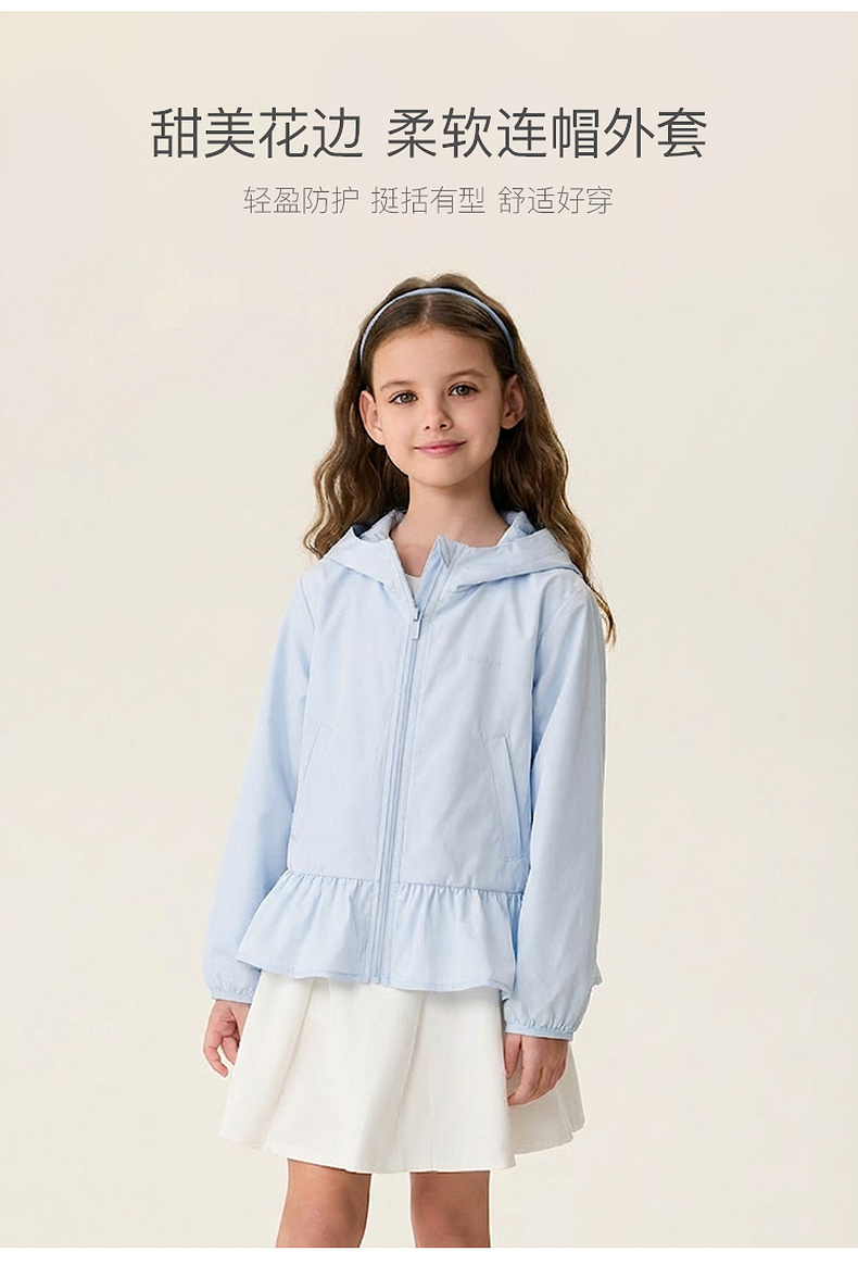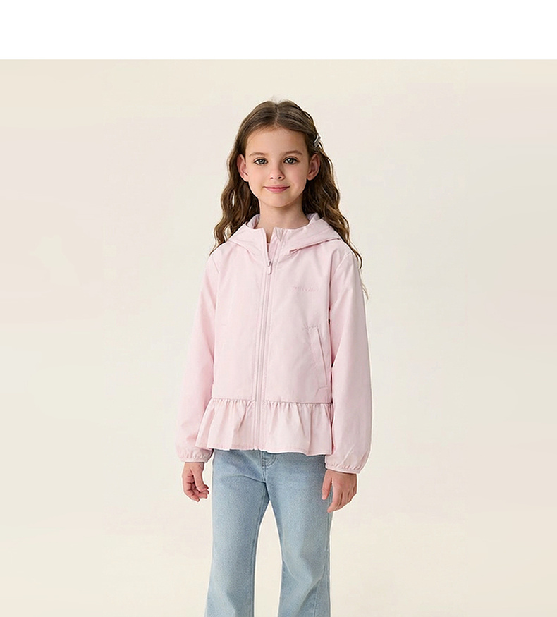 马克珍妮甜美花边女童柔软连帽外套2026年春装新款560281