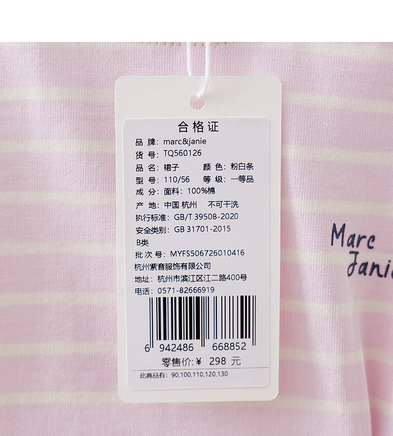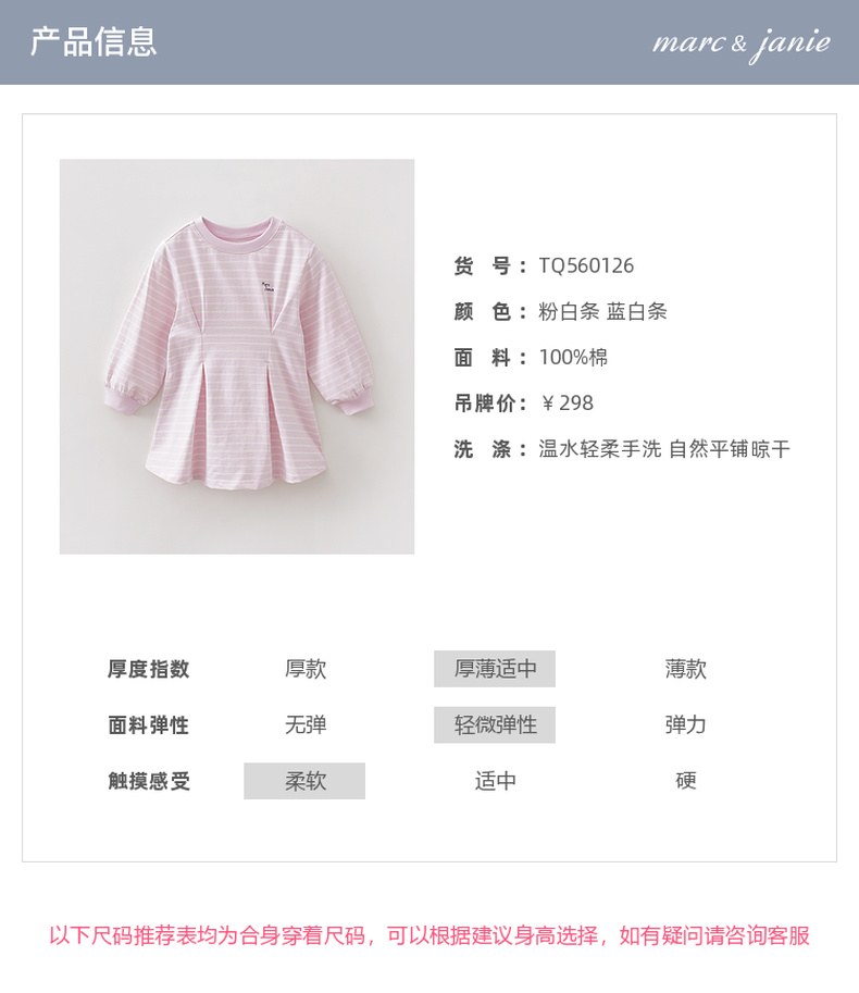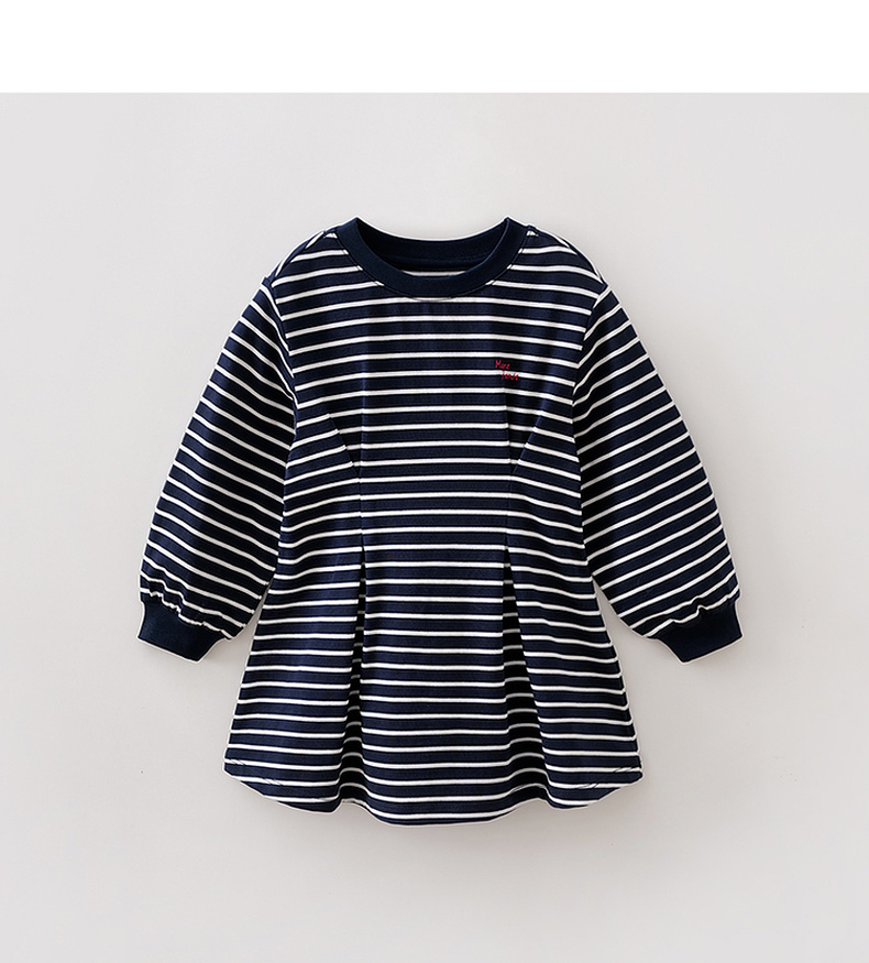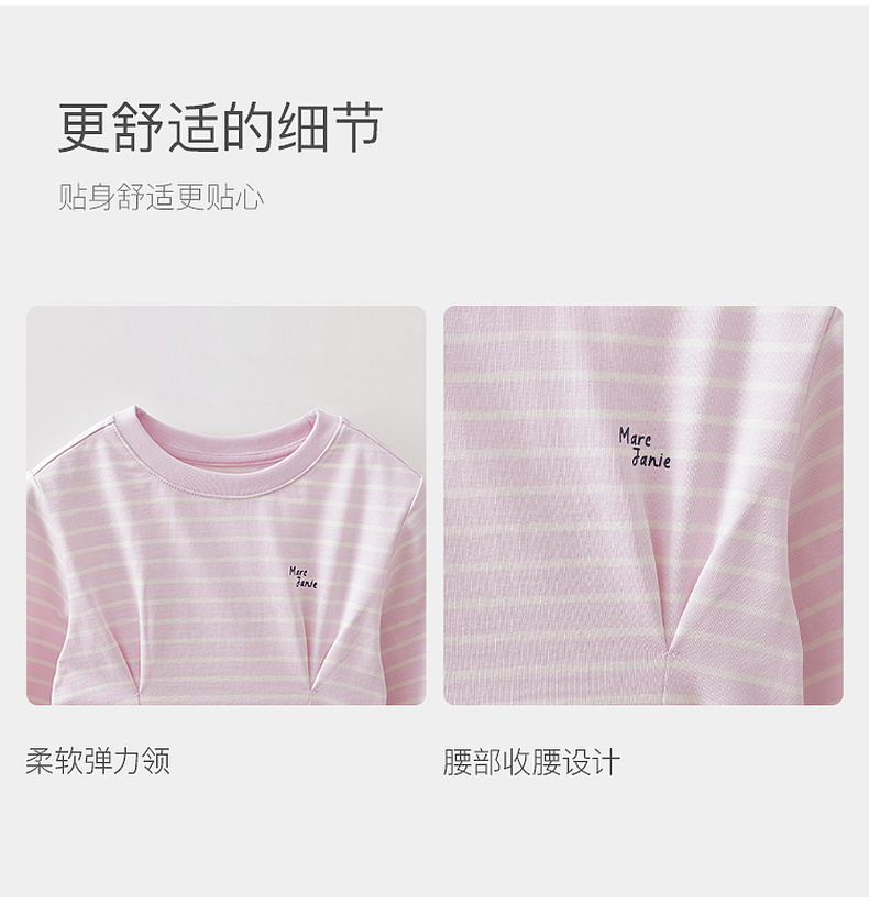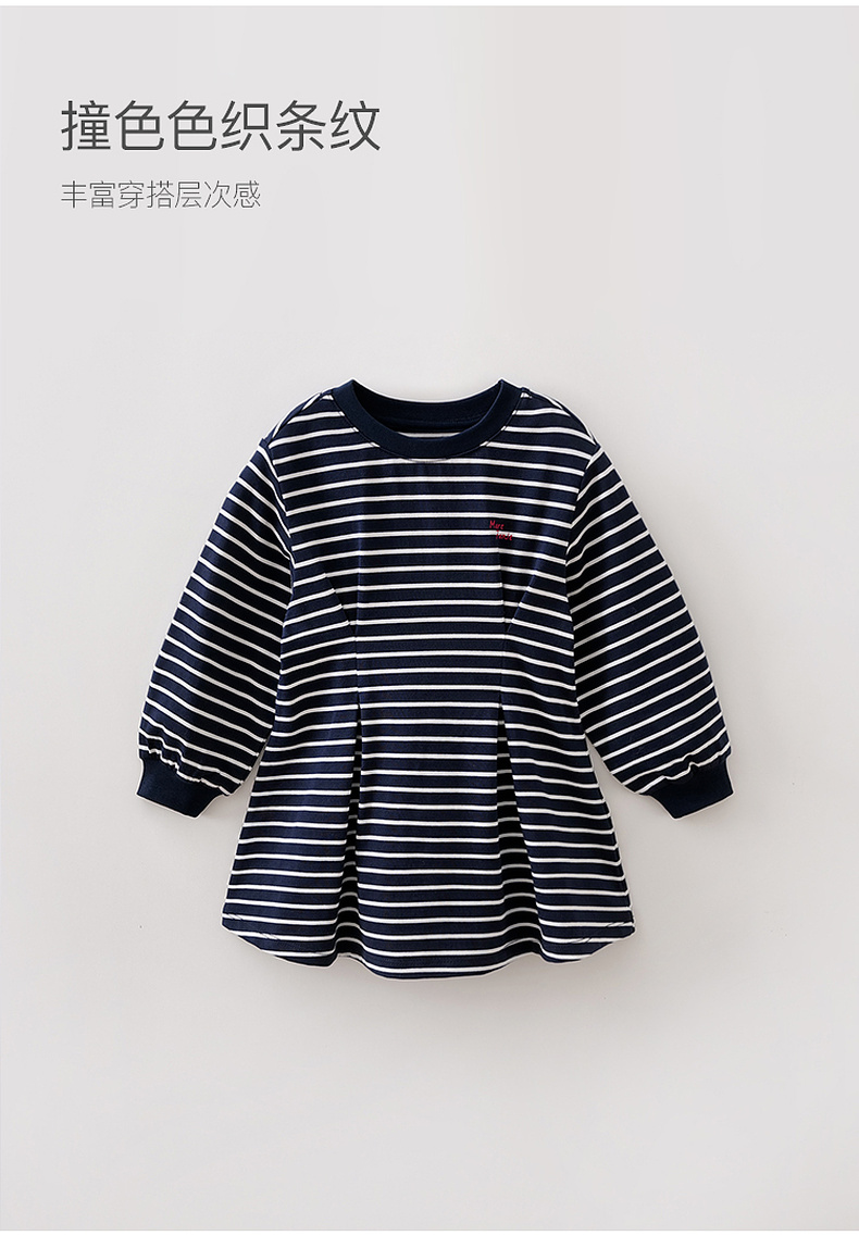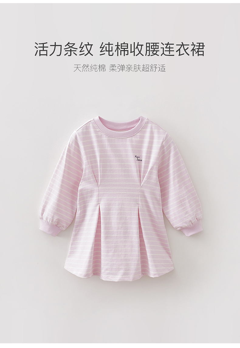马克珍妮活力条纹女童纯棉收腰连衣裙2026年春装新款560126