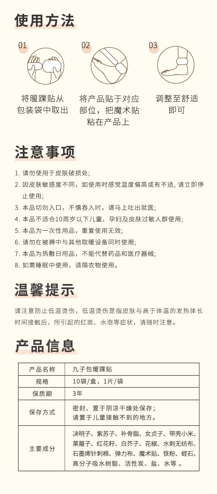 正安 温暖3阴交穴 4小时平均发热保暖防寒呵护腿部 九子包暖踝贴 10袋/盒