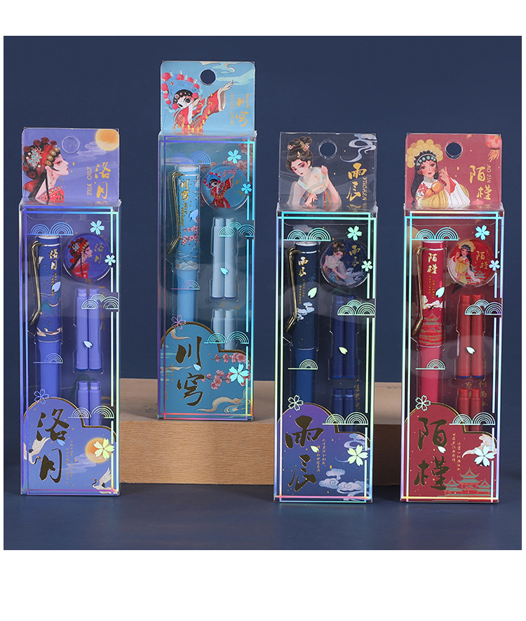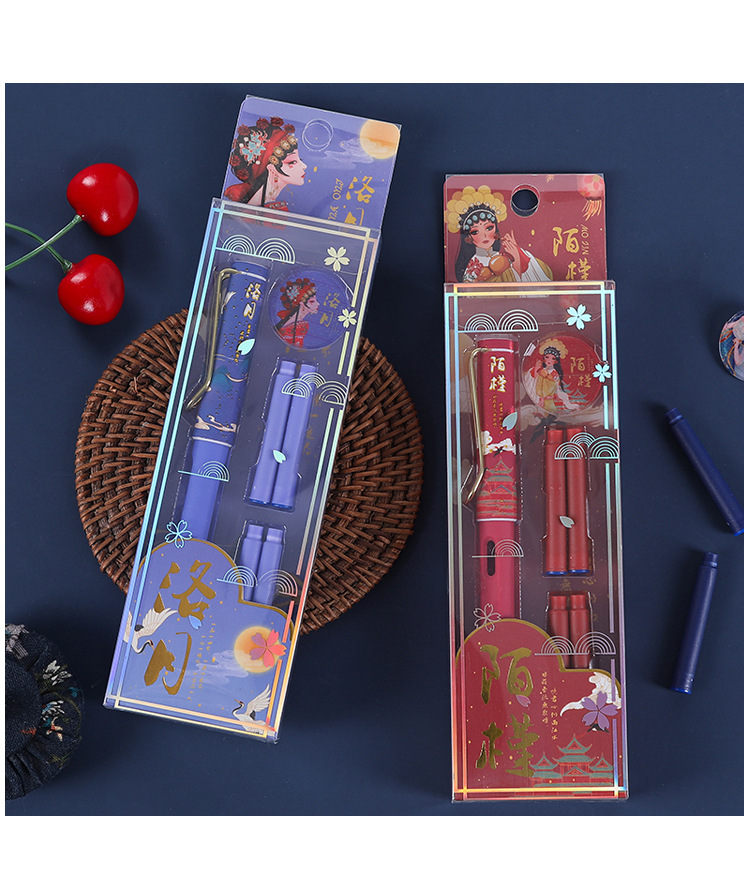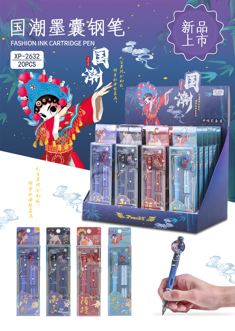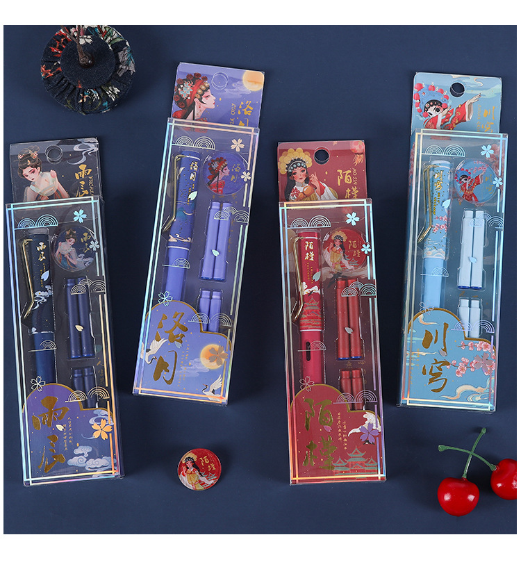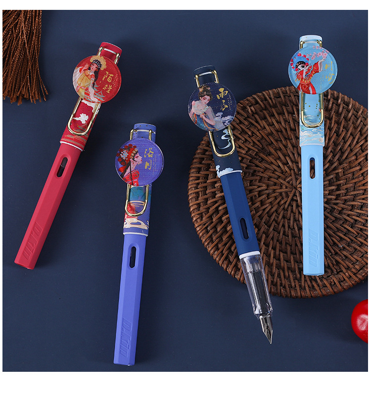 【复古国潮钢笔】古风办公文具国风可换墨囊可替换1-6年级墨胆初学者练字中小学生用儿童晶蓝色墨水EF笔尖3.8mm标准口径通用钢笔替芯