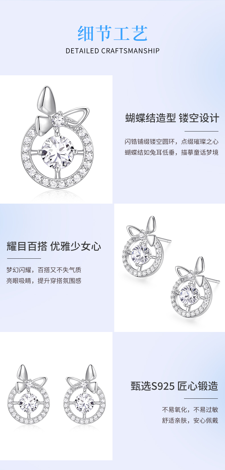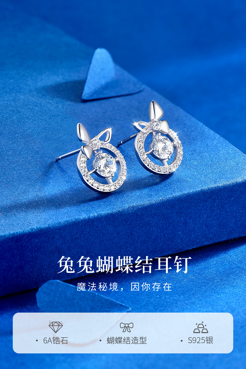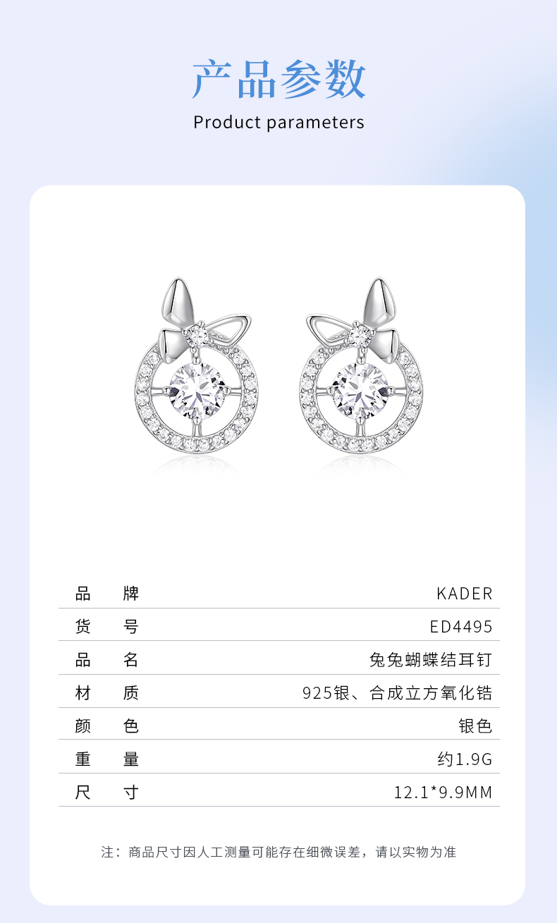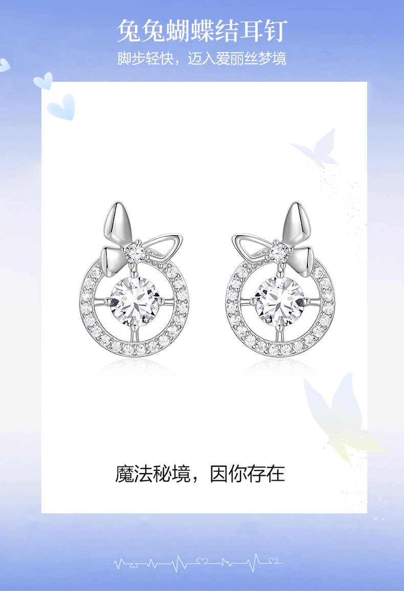 卡蒂罗/KADER 兔兔蝴蝶结耳钉 童话梦境系列 魔法苹果造型萌兔耳朵甜美可爱蝴蝶结设计纯银耳饰 闺蜜款