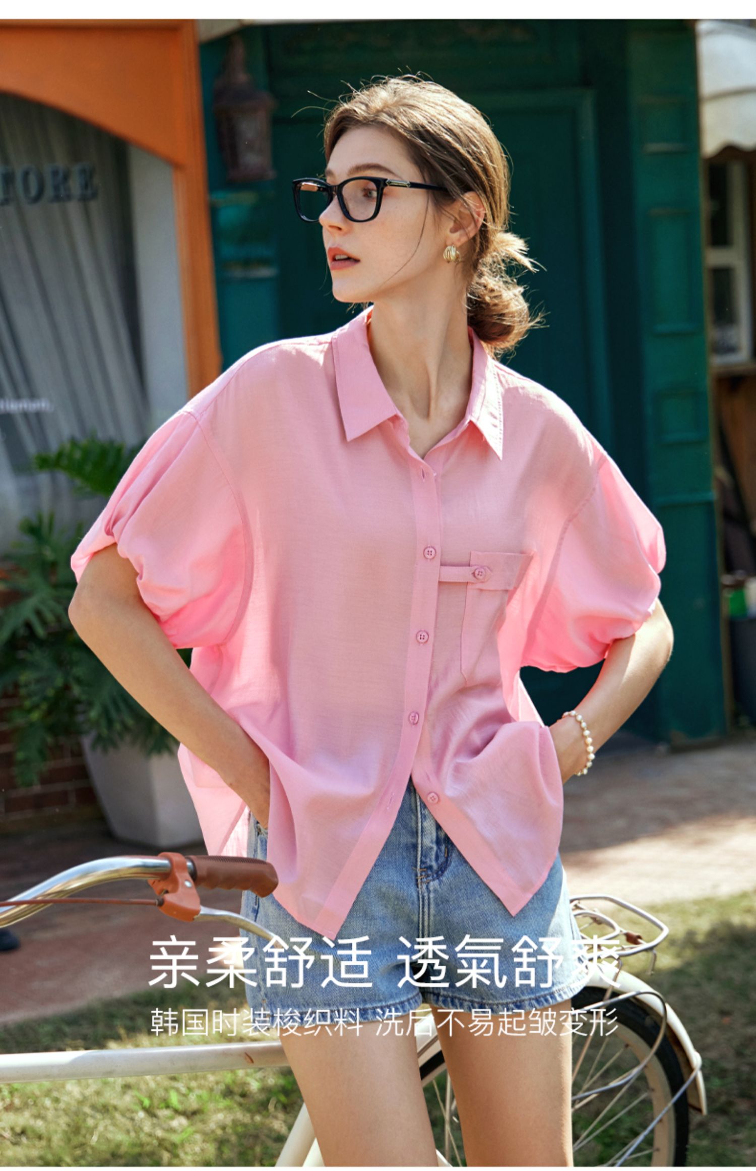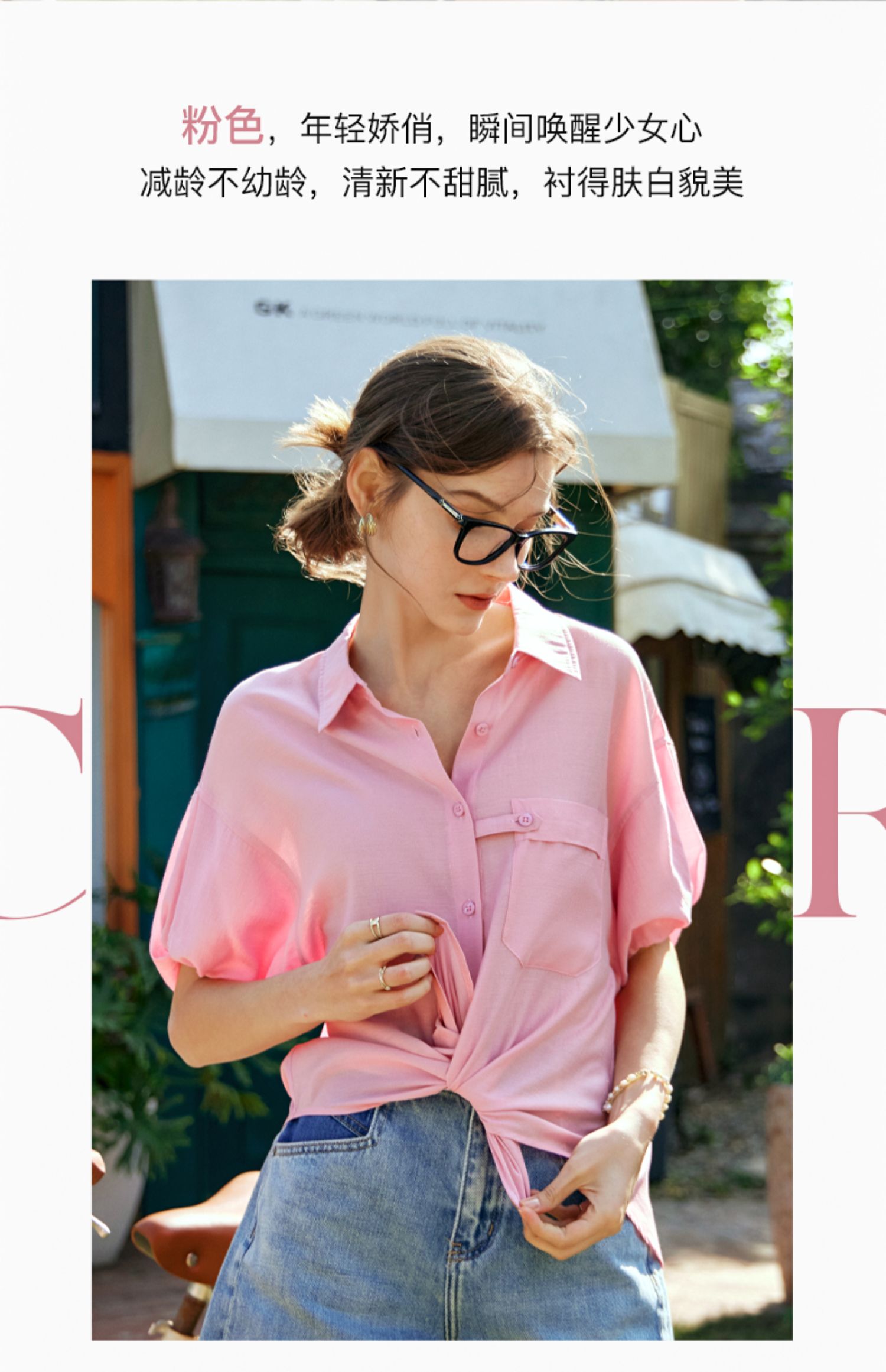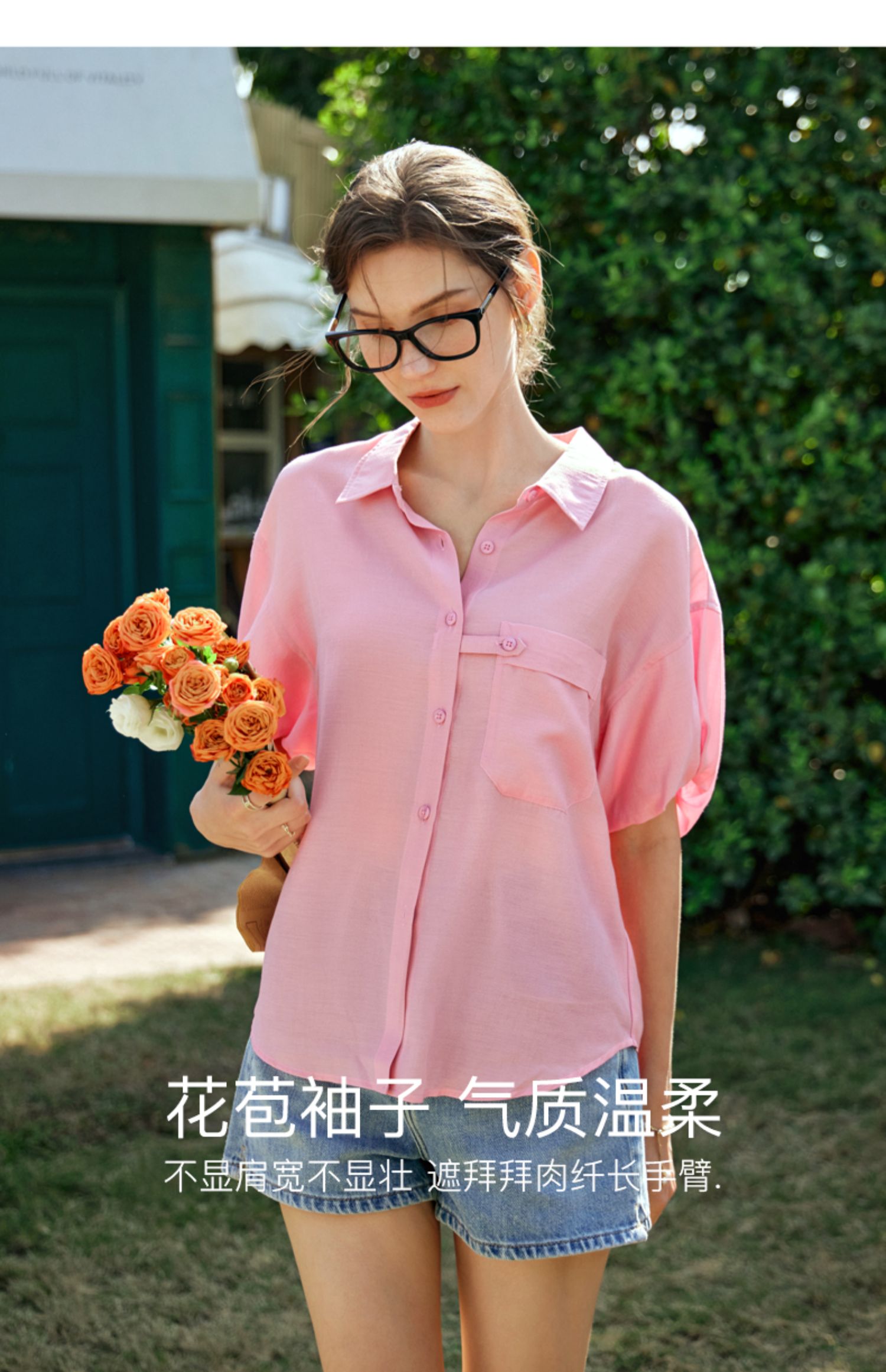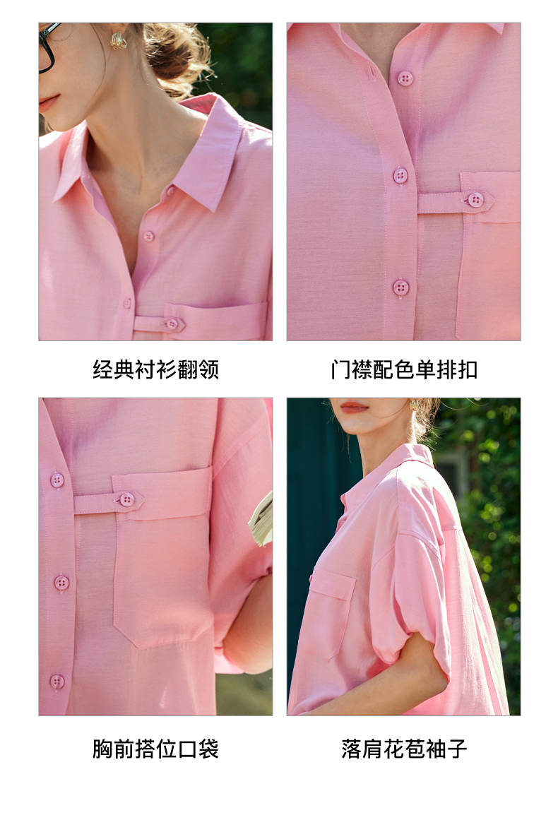 OLrain欧芮儿粉色衬衫女夏季2024年新款通勤百搭小众设计感衬衣