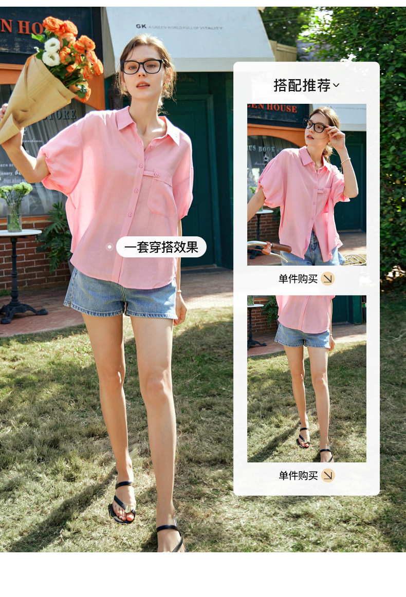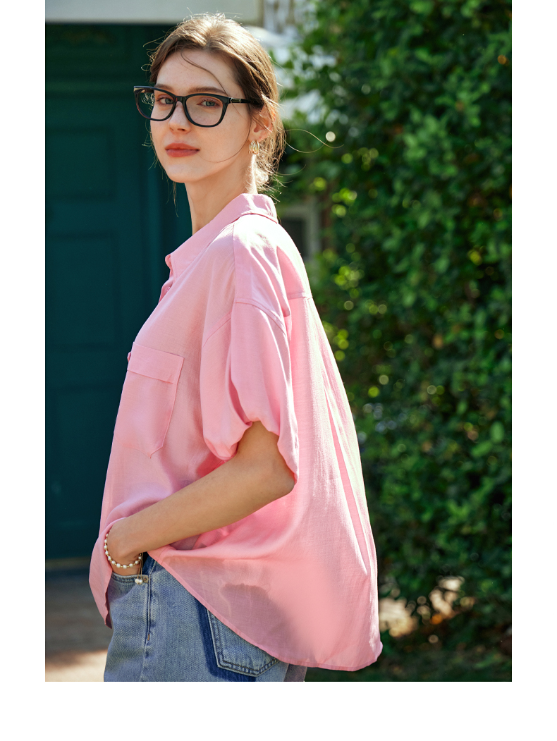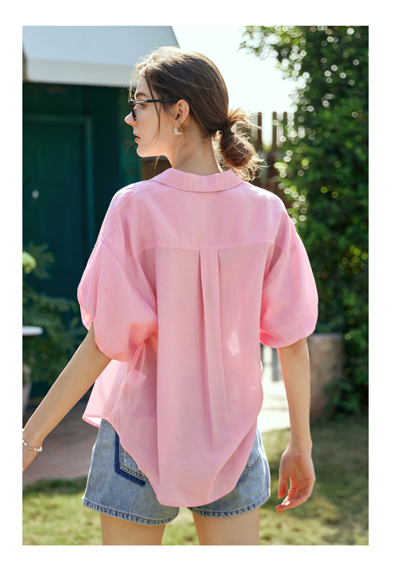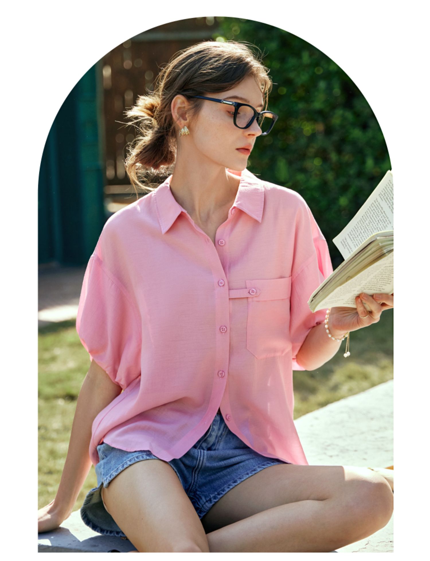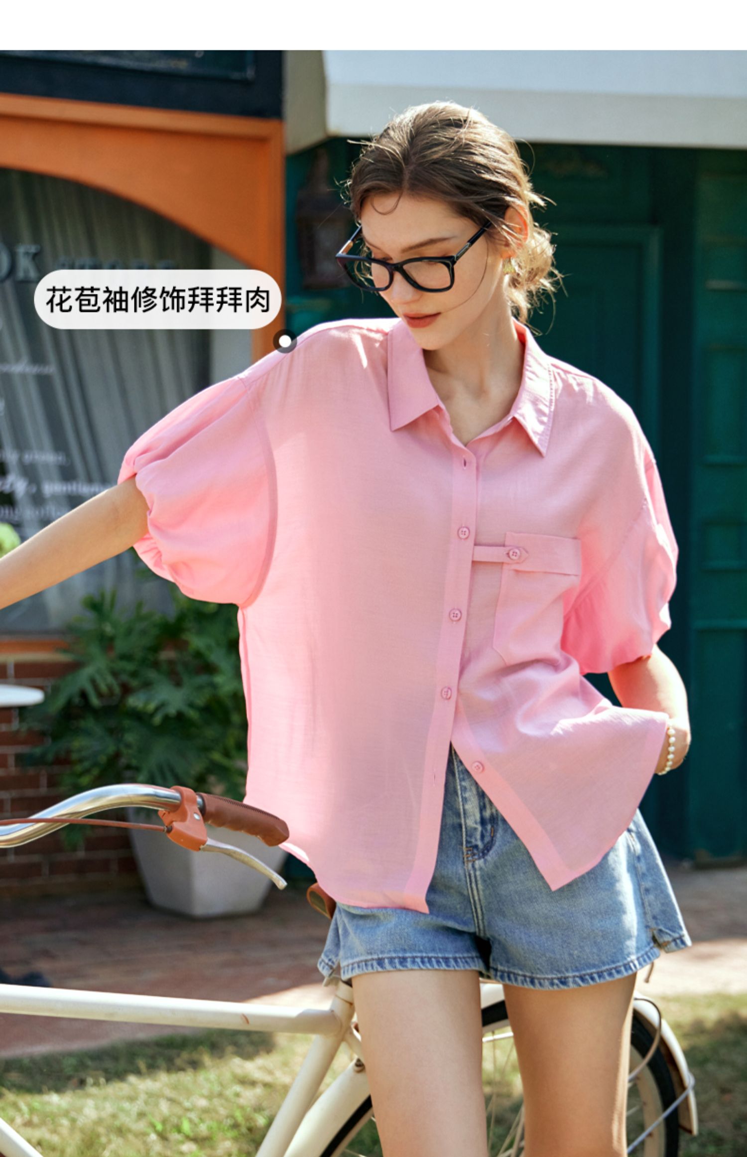 OLrain欧芮儿粉色衬衫女夏季2024年新款通勤百搭小众设计感衬衣