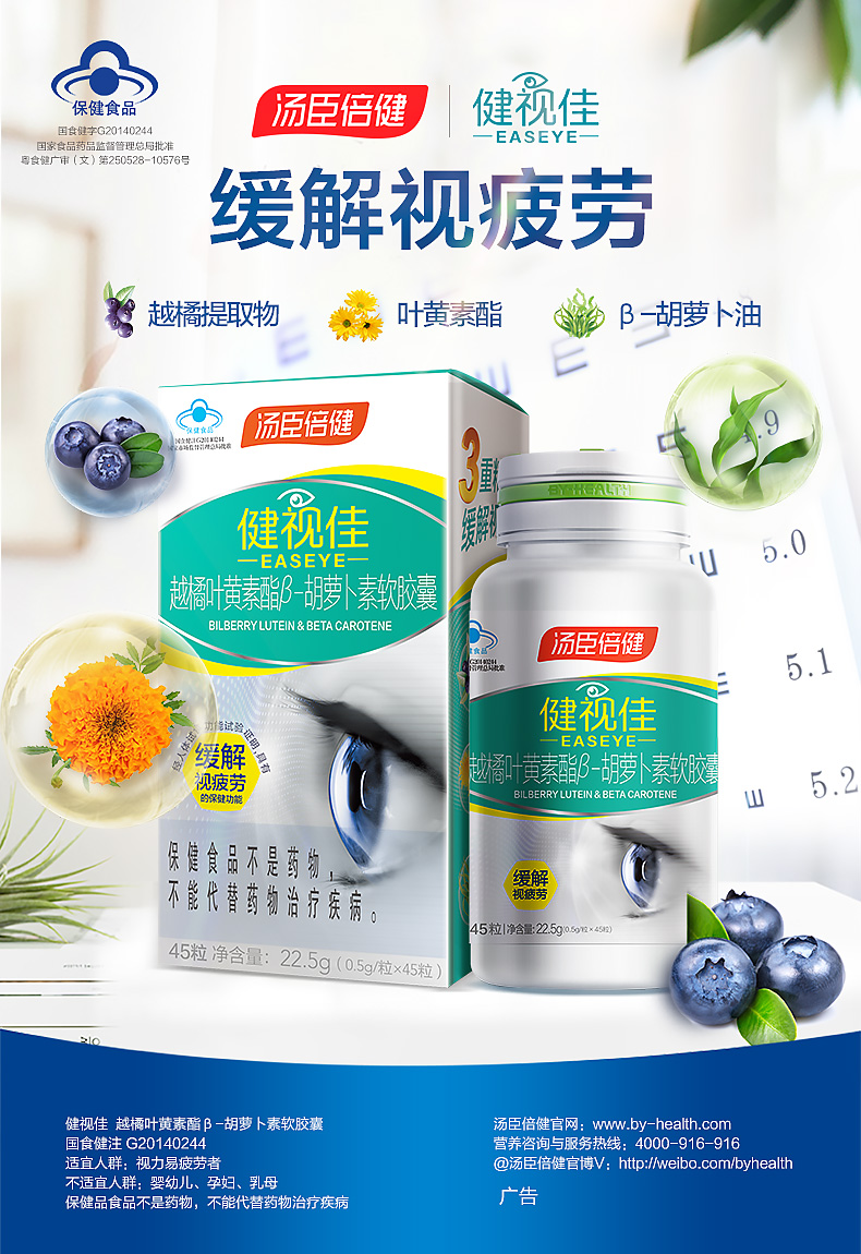 汤臣倍健健视佳越橘叶黄素酯胡萝卜素软胶囊45粒(2024.5.7到期)