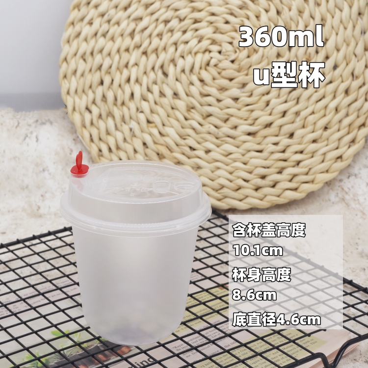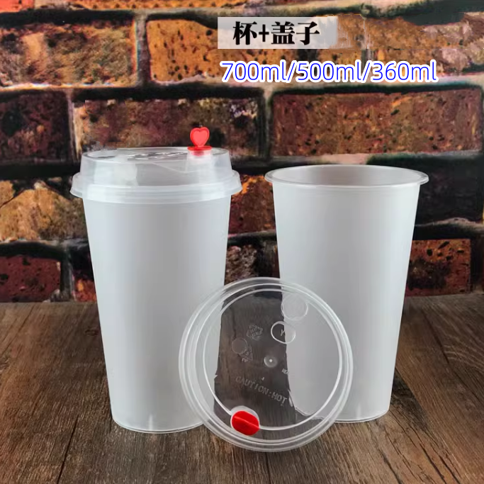 90口径 一次性奶茶杯 打包杯 透明奶茶杯 (带盖) 果汁杯 磨砂款 360ml/500ml/700ml