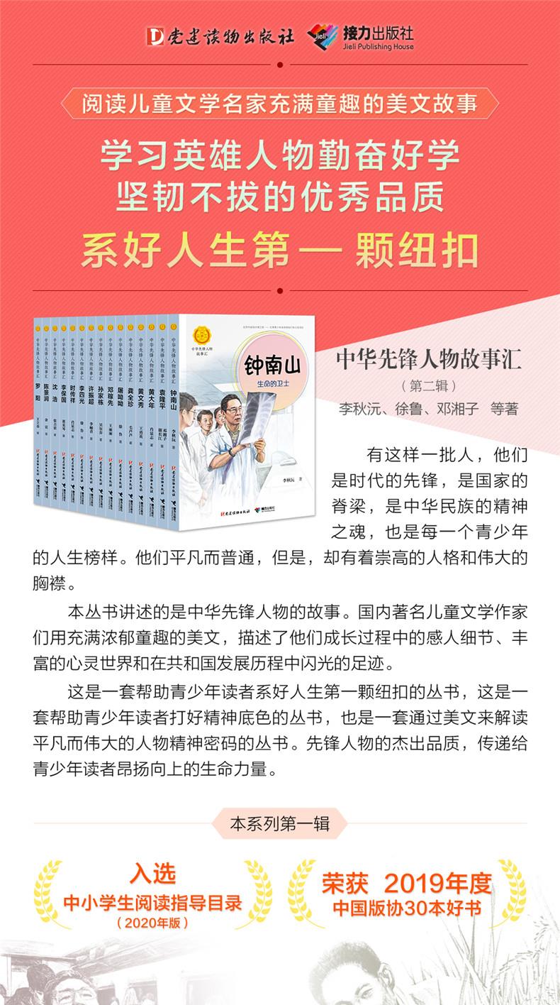 有这样一批人,他们是时代的先锋,是国家的脊梁,是中华民族的精神之魂,也是每一个青少年的人生榜样。他们平凡而普通,但是,却有着崇高的人格和伟大的胸襟。本丛书讲述的是中华先锋人物的故事。国内著名儿童文学作家们用充满浓郁童趣的美文,描述了他们成长过程中的感人细节、丰富的心灵世界和在共和国发展历程中闪光的足迹。这是一套帮助青少年读者系好人生第一颗纽扣的丛书,这是一套帮助青少年读者打好精神底色的丛书,也是一套通过美文来解读平凡而伟大的人物精神密码的丛书。先锋人物的杰出品质,传递给青少年读者昂扬向上的生命力量。