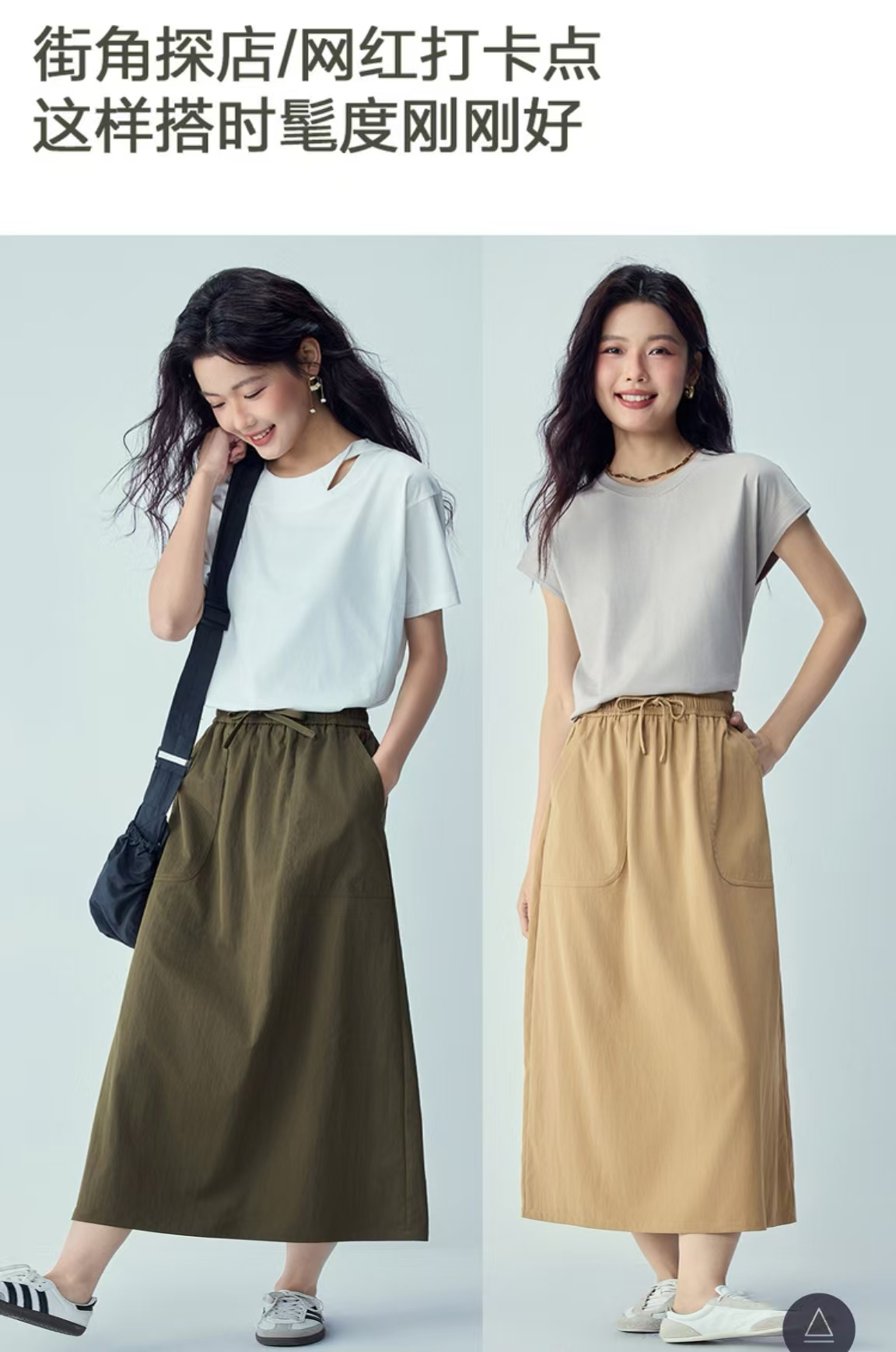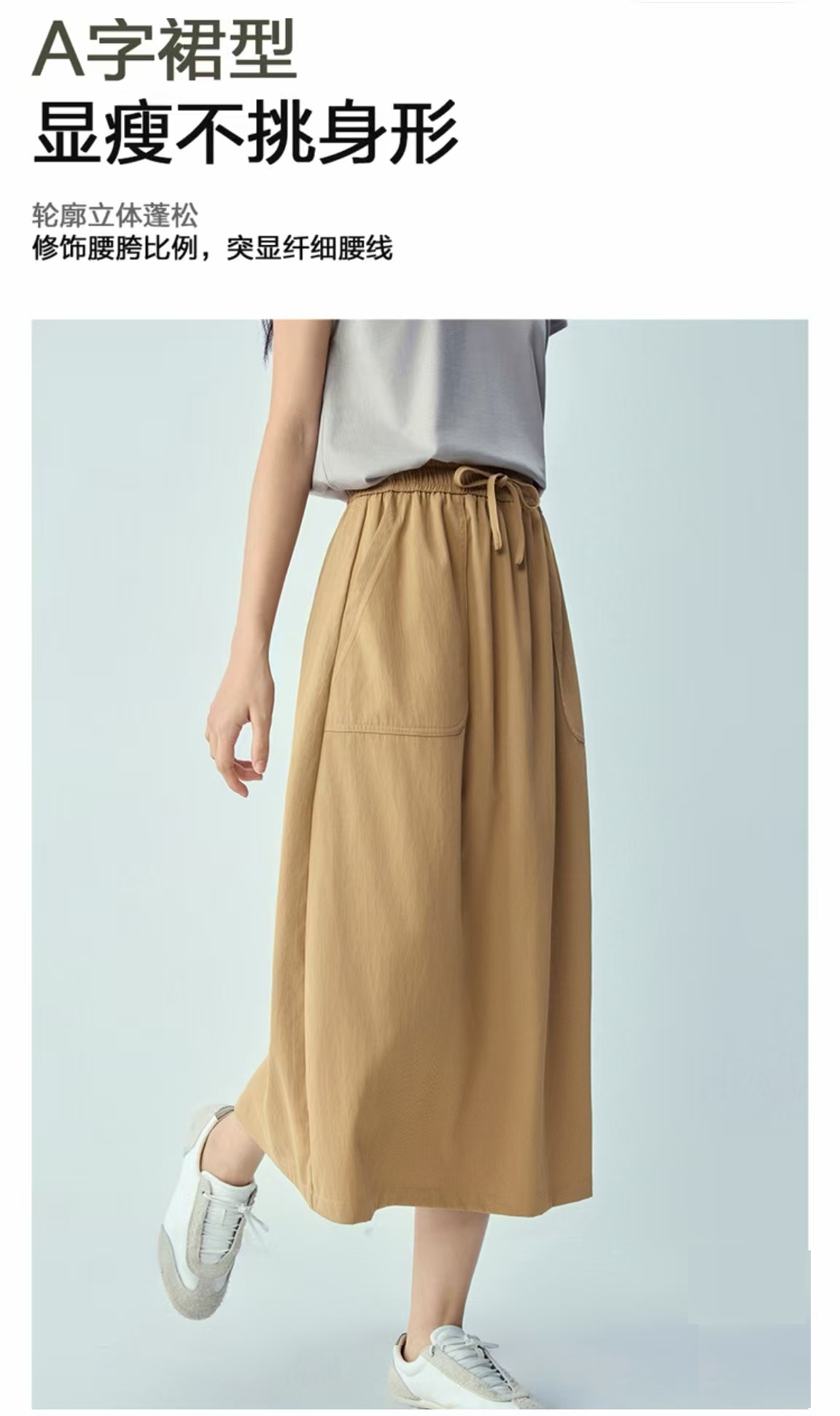 佐丹奴女装26年新款抽绳松紧腰梭织半身裙13466205