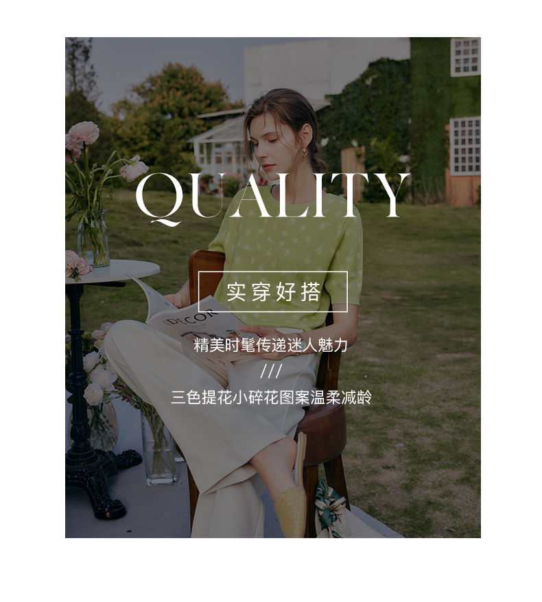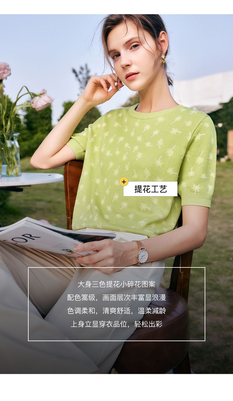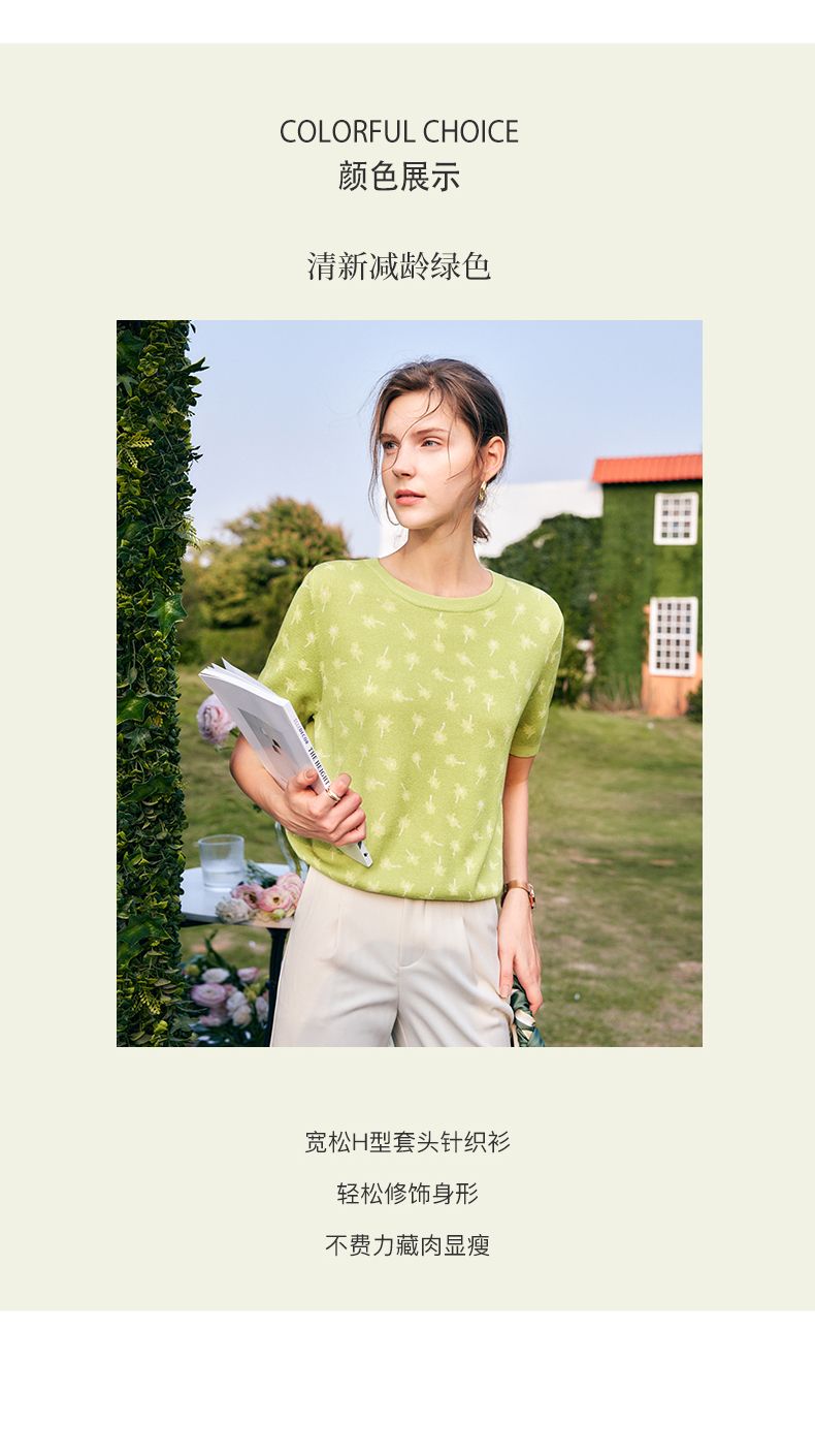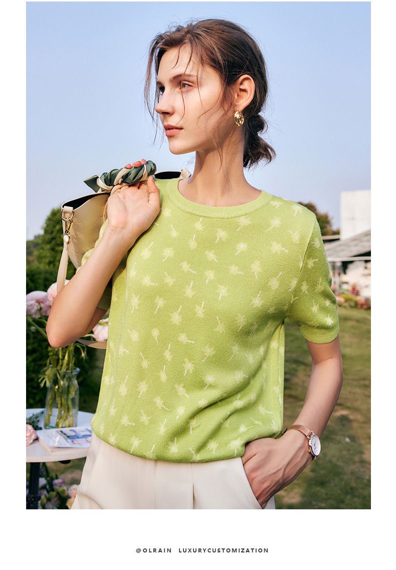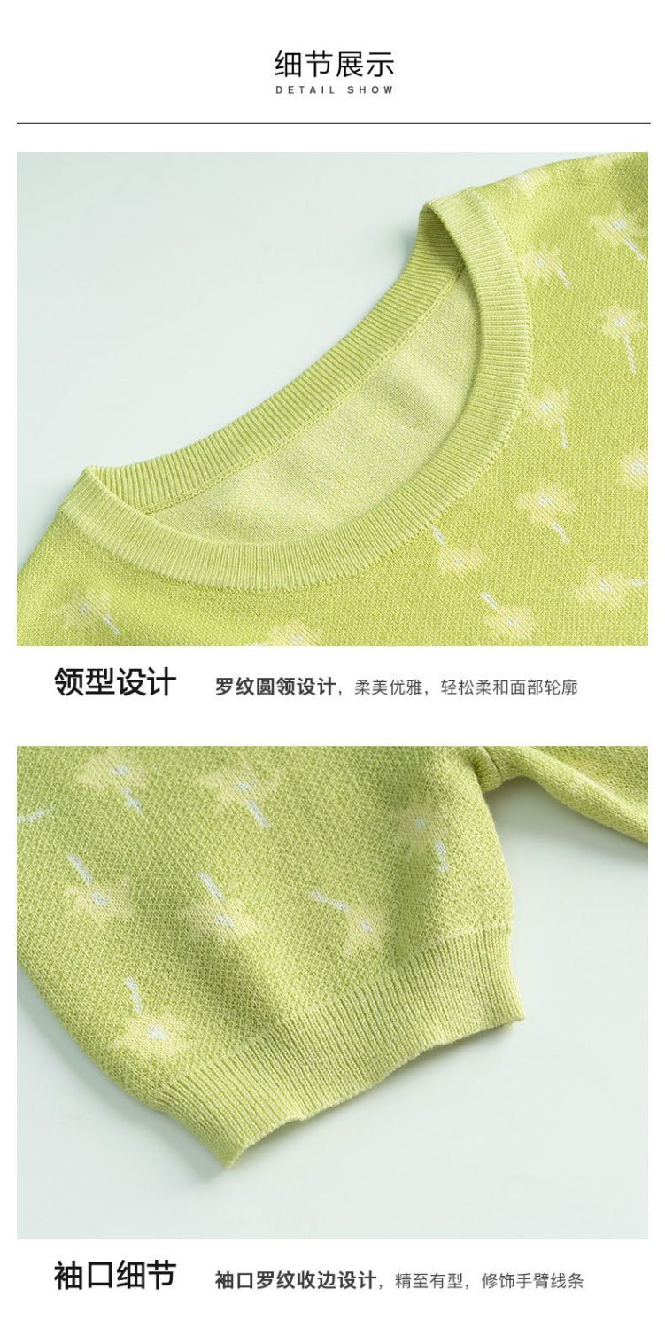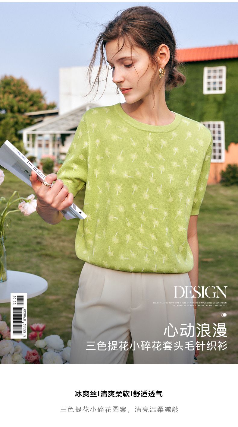 欧芮儿碎花套头针织衫女夏季2022新款时尚气质冰爽薄款五分袖上衣