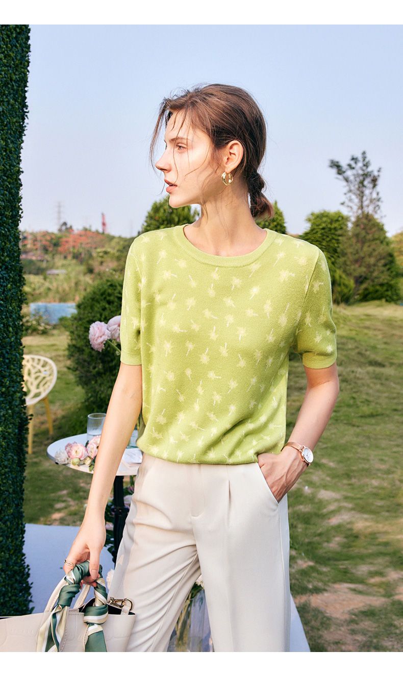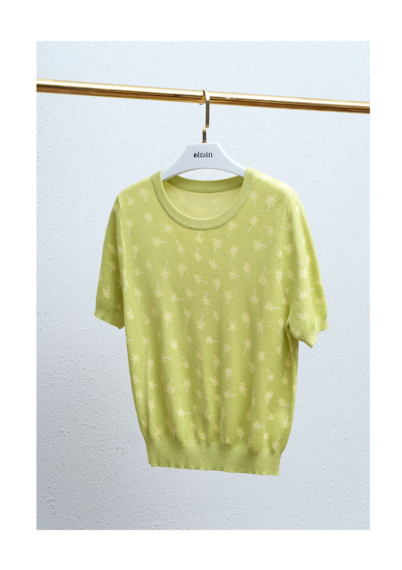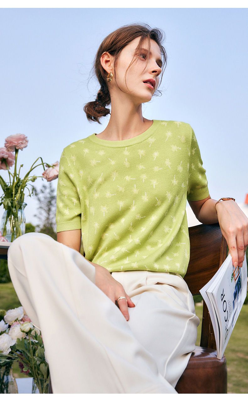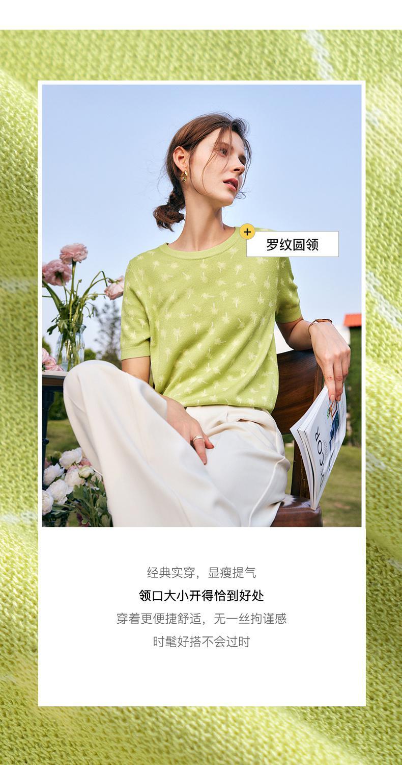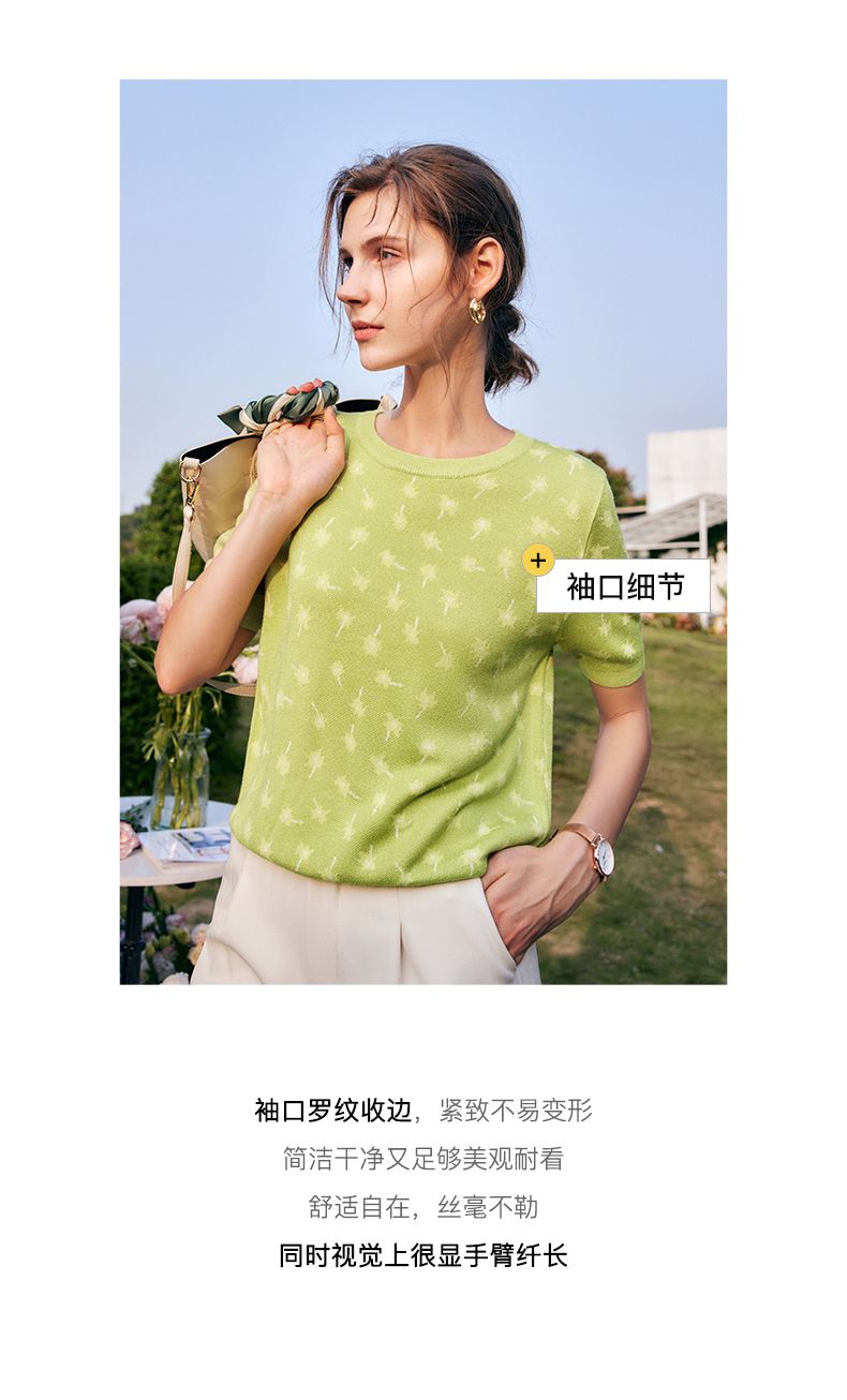 欧芮儿碎花套头针织衫女夏季2022新款时尚气质冰爽薄款五分袖上衣