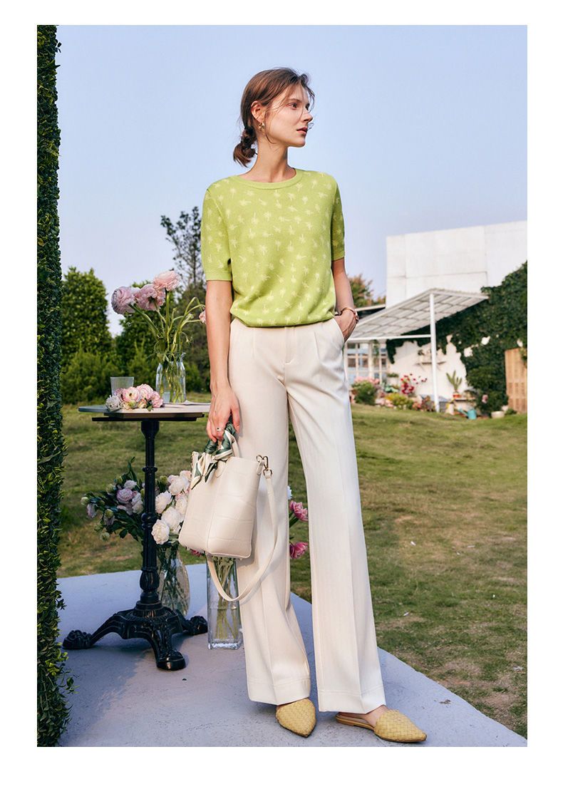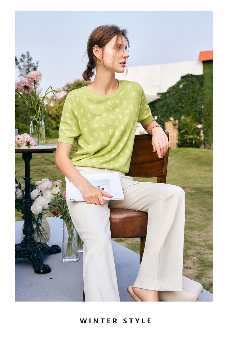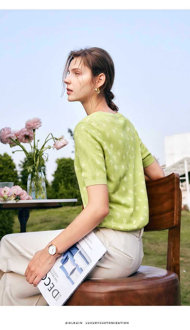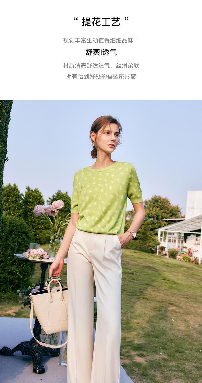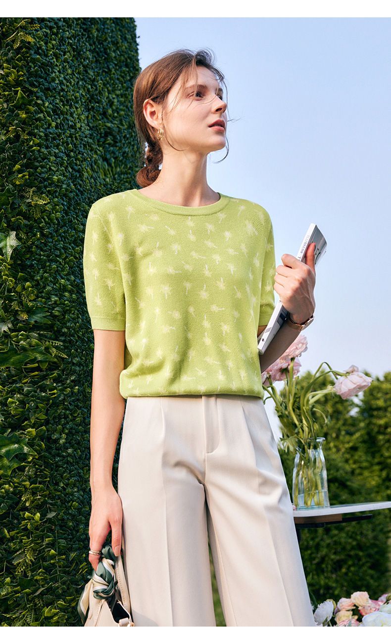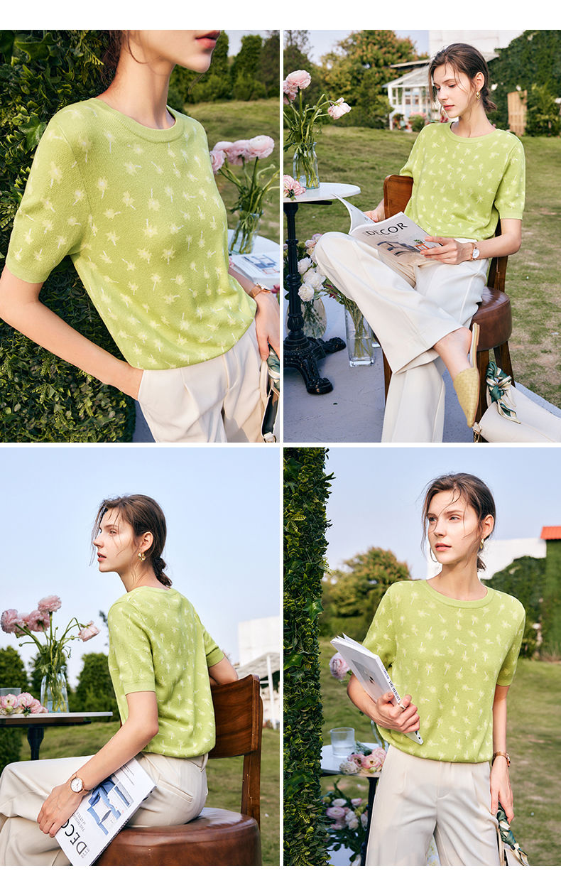 欧芮儿碎花套头针织衫女夏季2022新款时尚气质冰爽薄款五分袖上衣