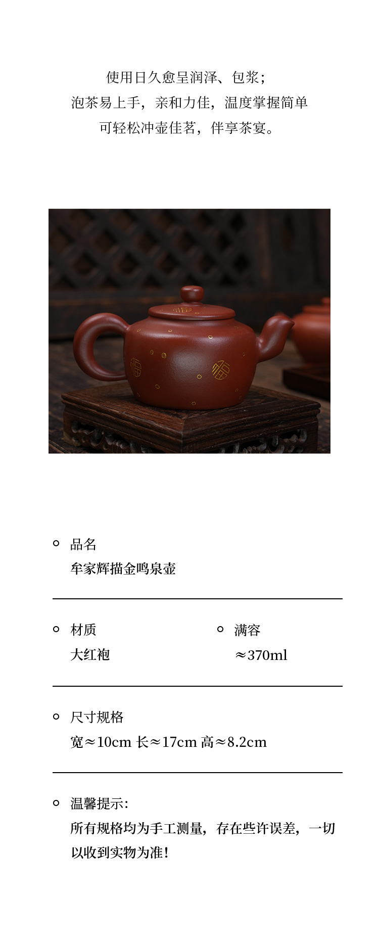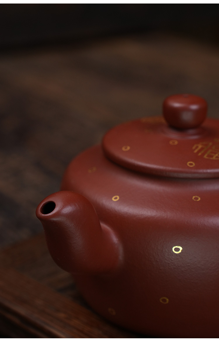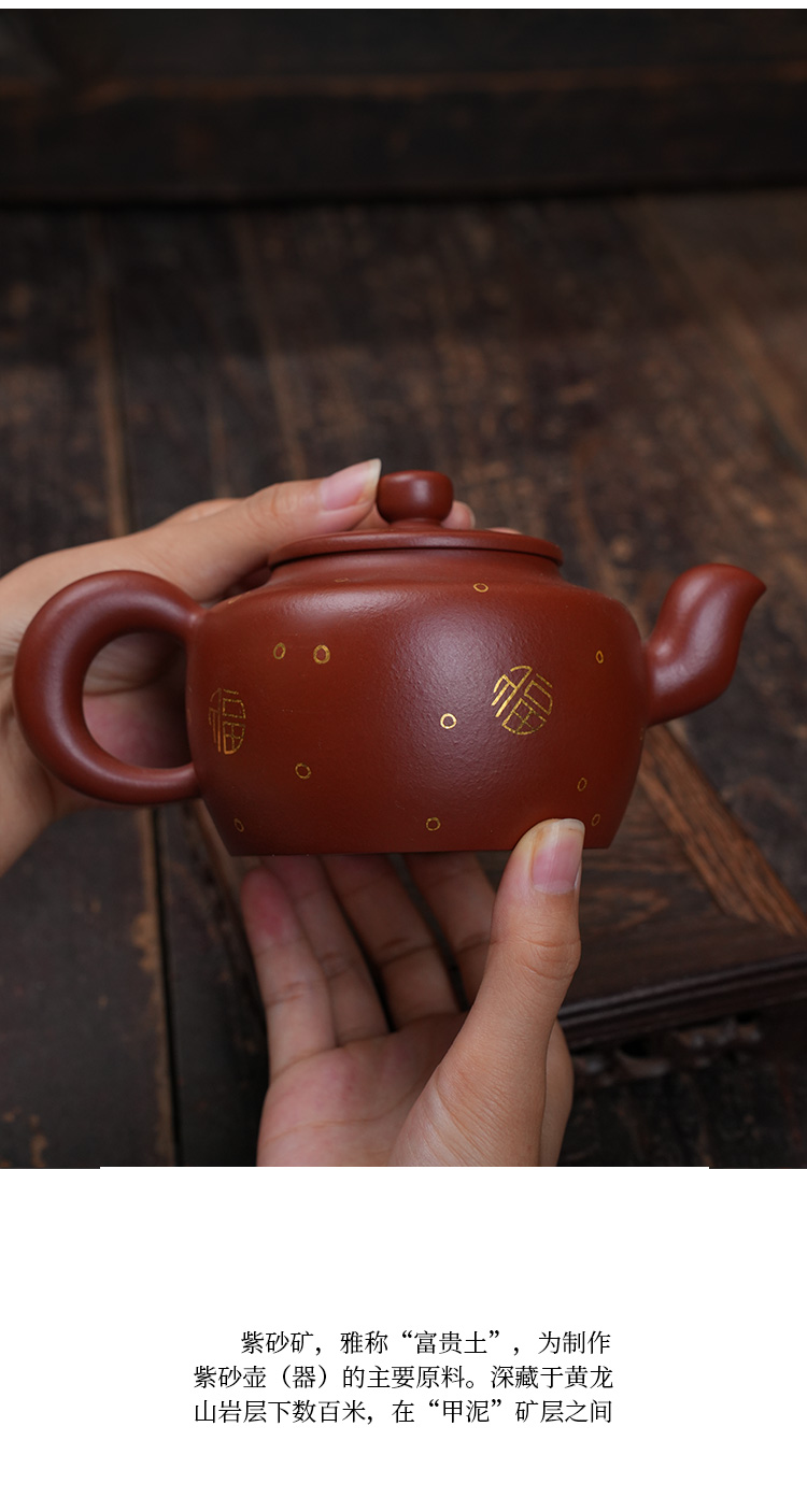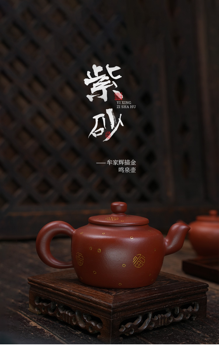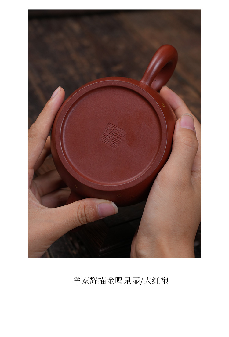 牟家辉 描金鸣泉壶 大红袍 宜兴紫砂原矿茶壶紫砂壶功夫茶泡茶壶茶具仿古
