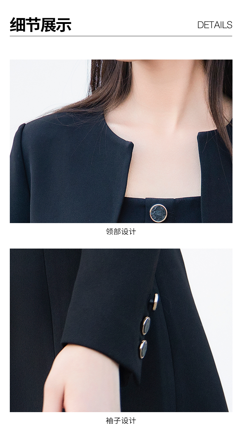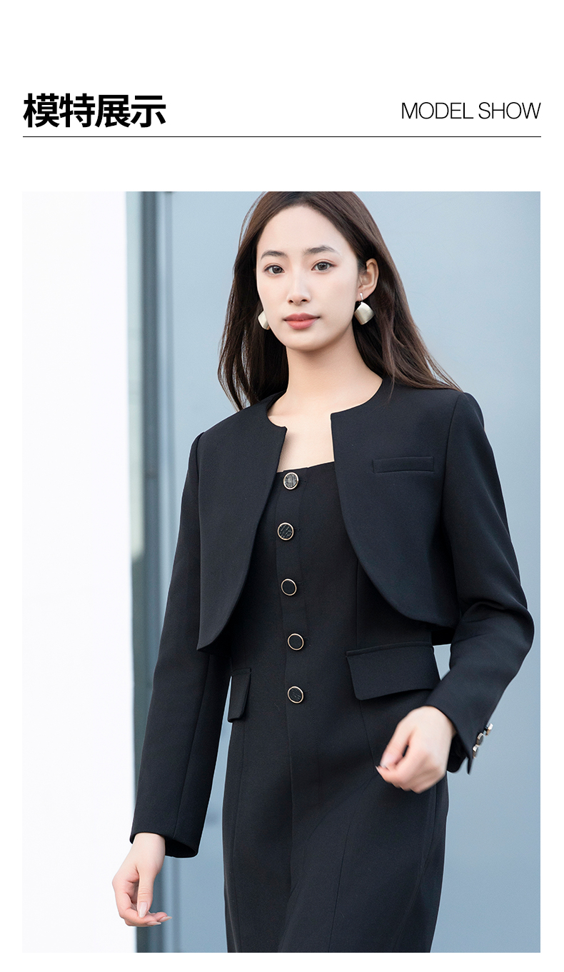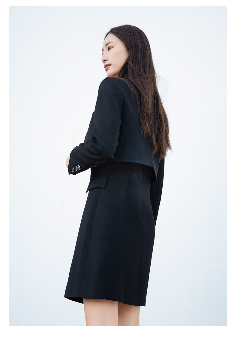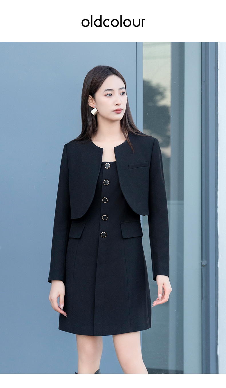 oldcolour春季新品时尚黑色修身显瘦圆领气质套装女Q121012A1