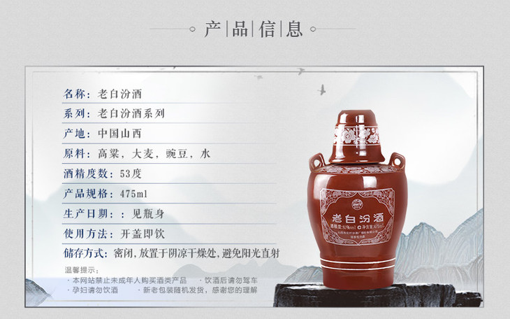 汾酒老白汾10清香型53度475ml【本商城规格1件即为1瓶】