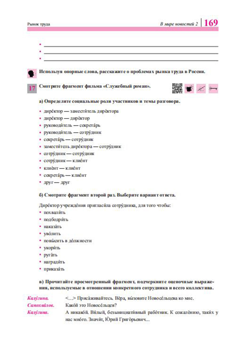《俄语新闻世界》既可用于教师课堂教学,也可用于学生自学。大部分练习都配有习题答案。本书所配音视频文件,请扫描封底二维码下载外研随身学 APP,在外研随身学 APP 上扫描本书中二维码学习。为教学而需求外研随身学 APP 上音视频的老师,可以在 Ucreate 一起备课(http:// ucreate.unipus.cn / public / detail.php?BookwareID=73864402)下 载《俄语新闻世界》音视频。 《俄语新闻世界 2》是这套教材的第二本,内容分为七大专题,分别是国家经济形势、 经济改革、政府与商业活动、大型商业、小商业、价格政策和劳动市场。每个专题的教 学时数为 8~10 学时。