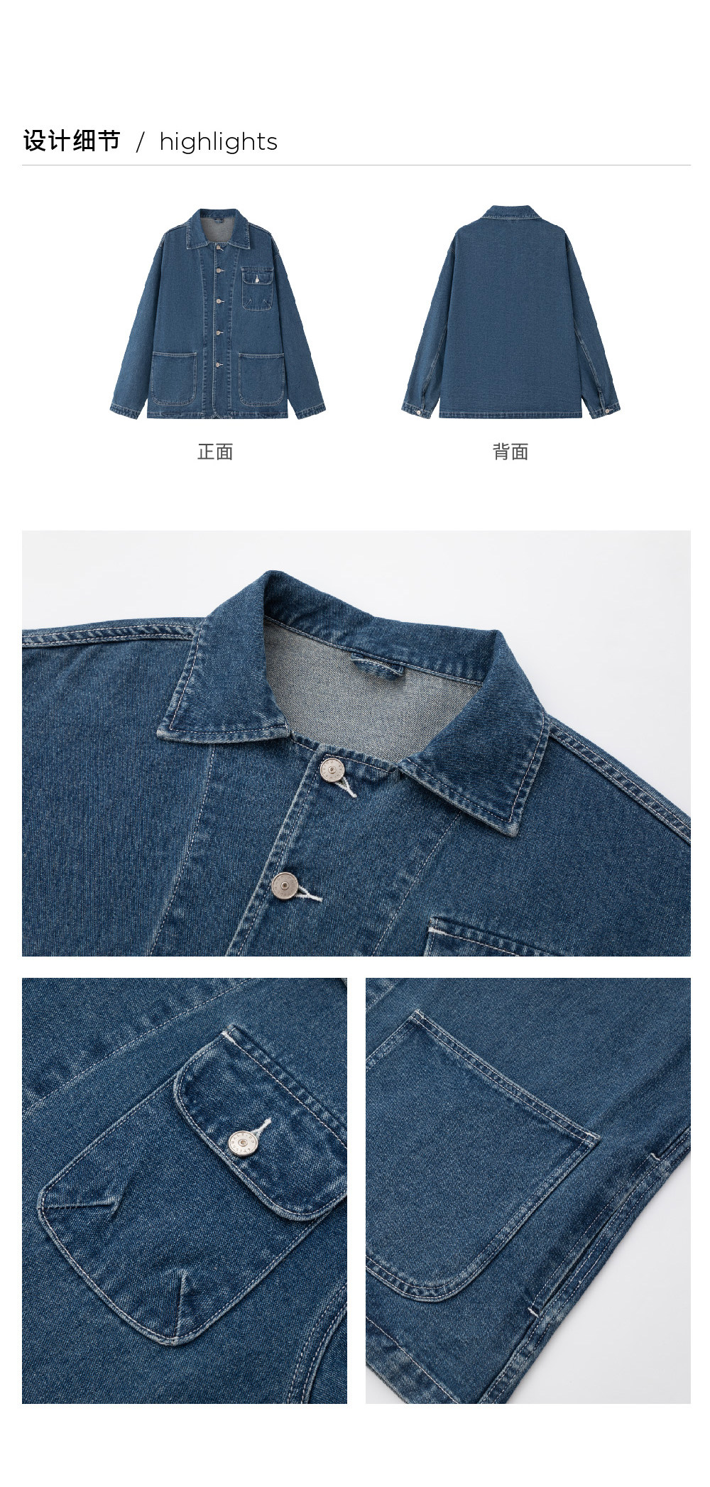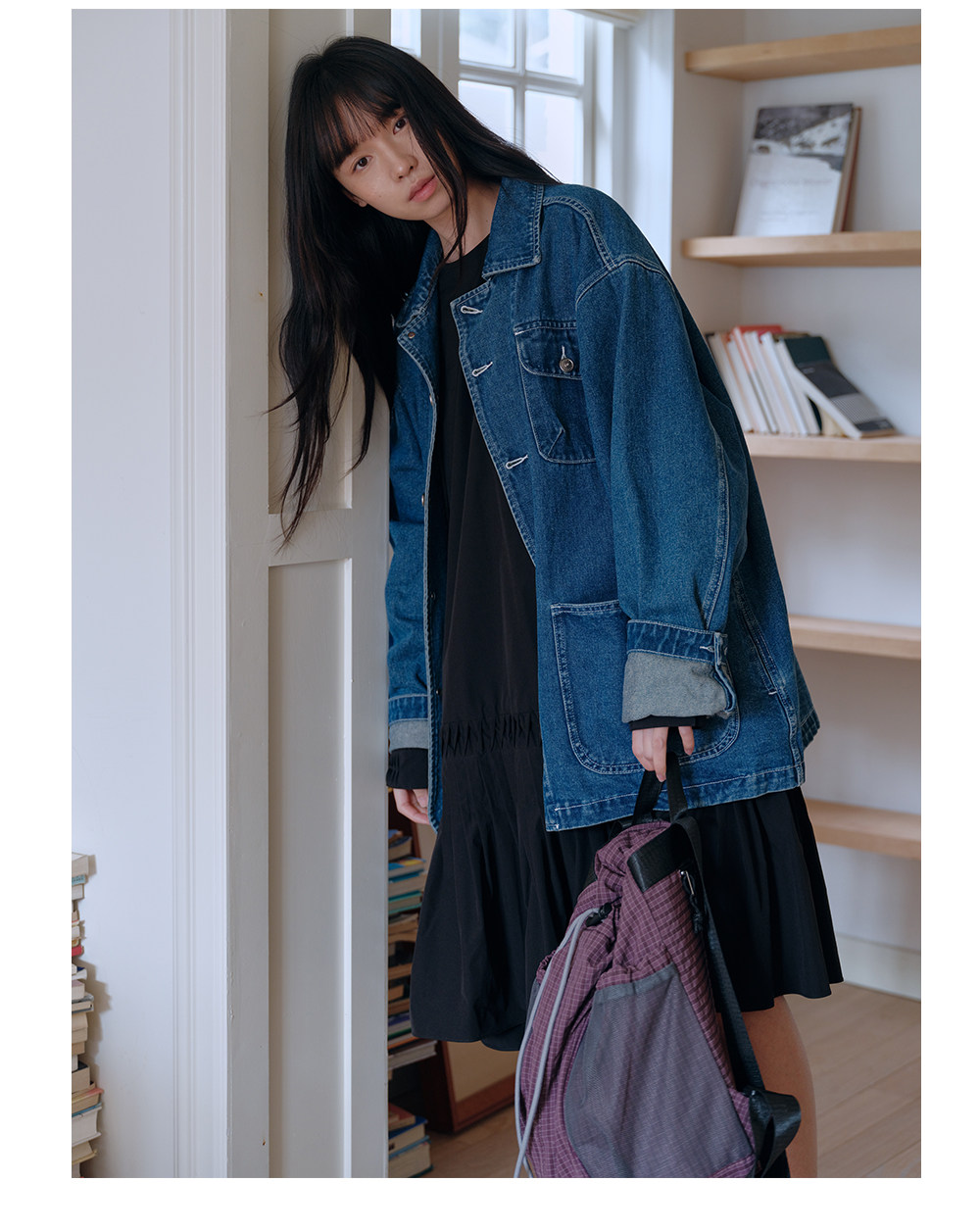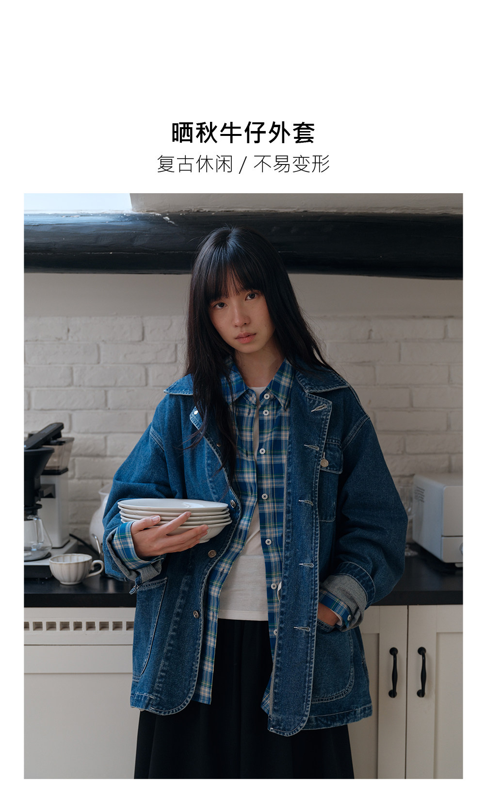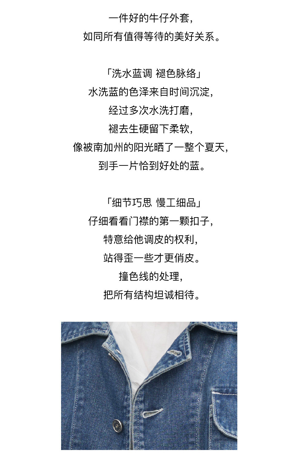 步履不停/5C20024C/长翻领工装水洗蓝牛仔外套